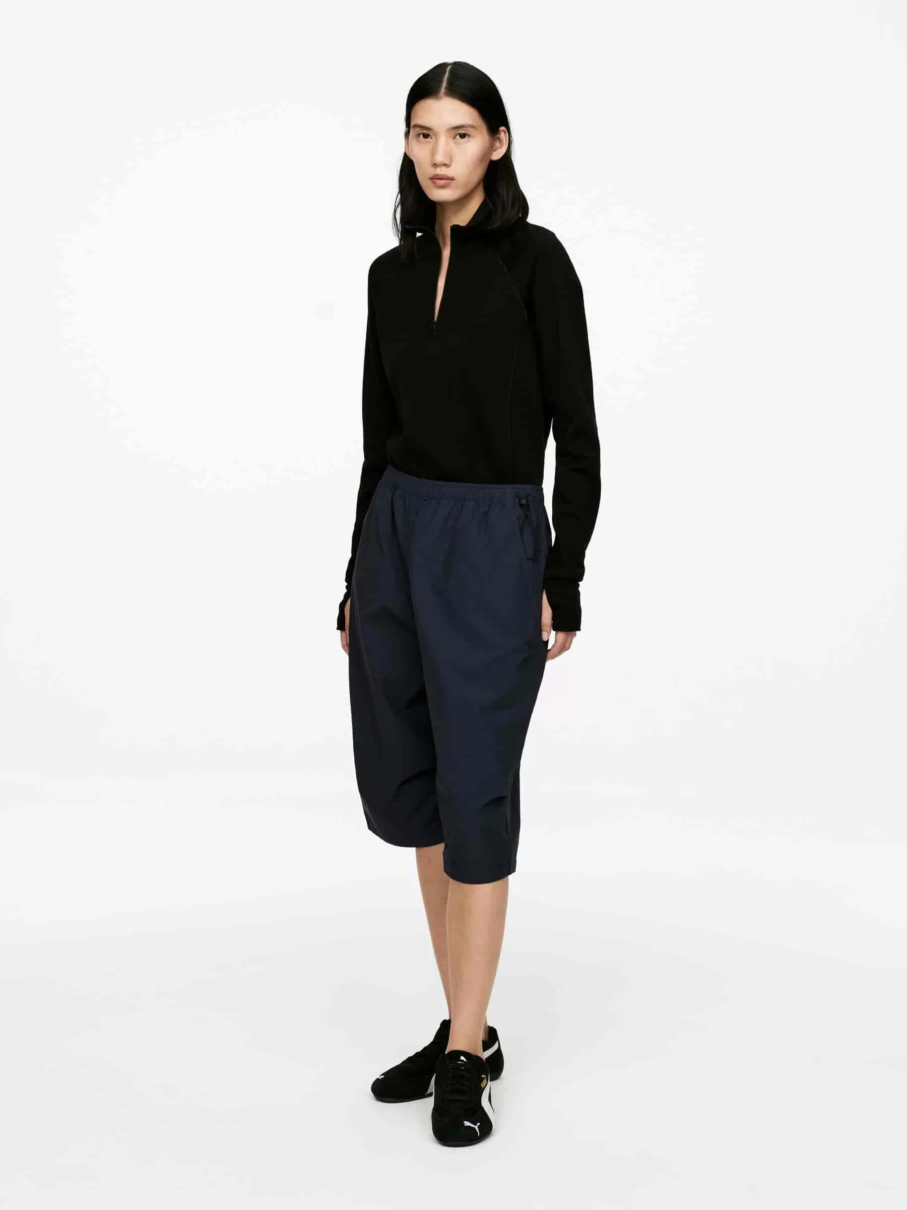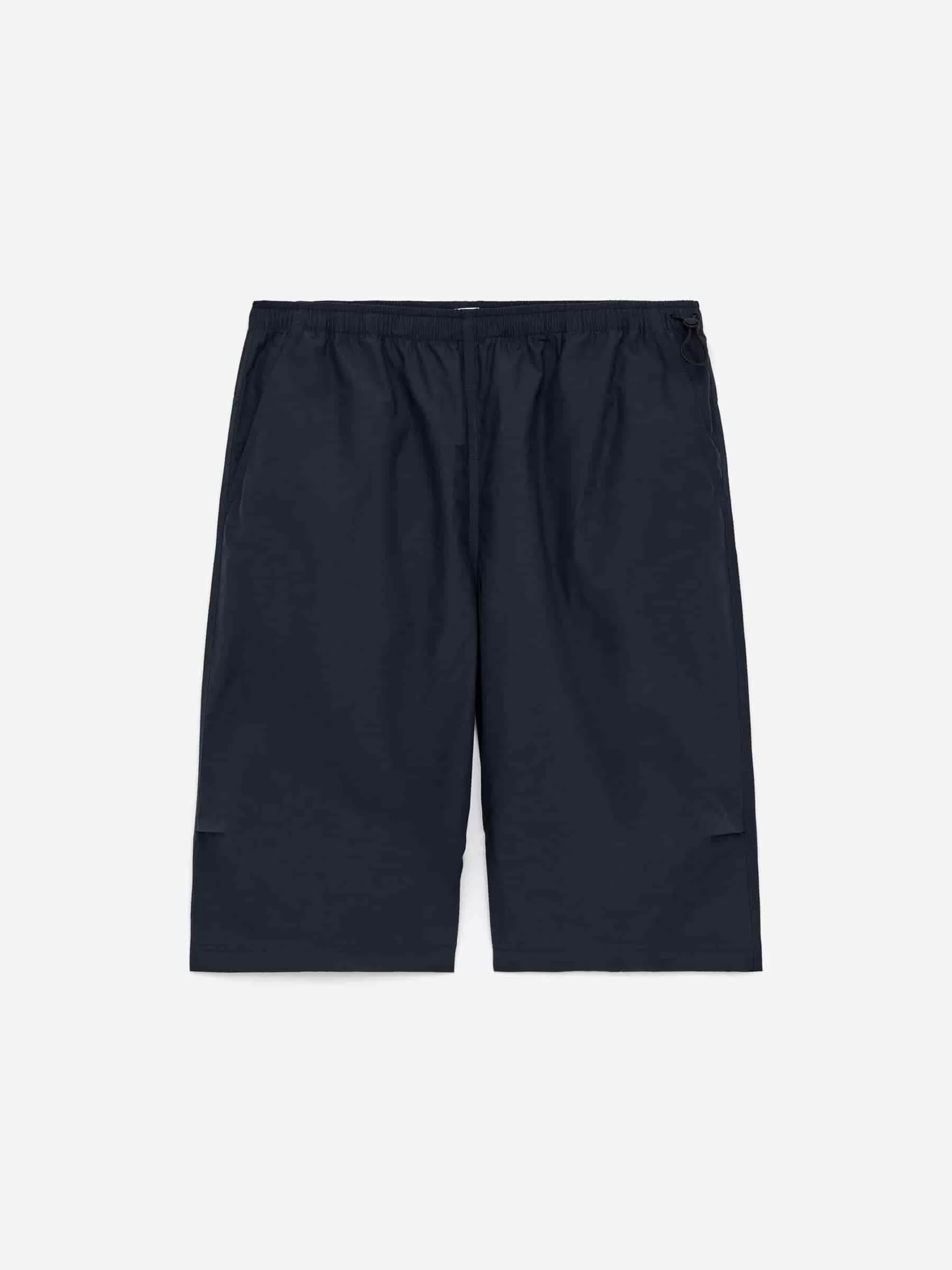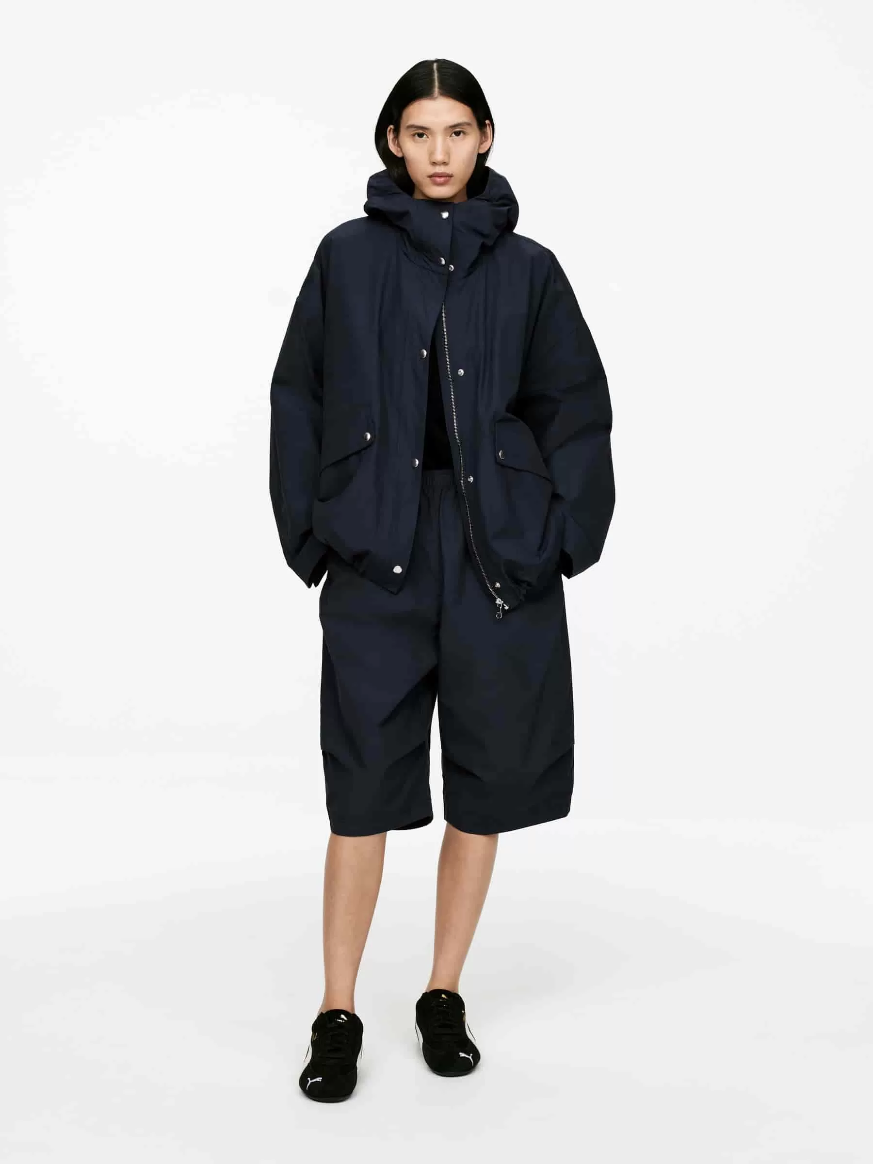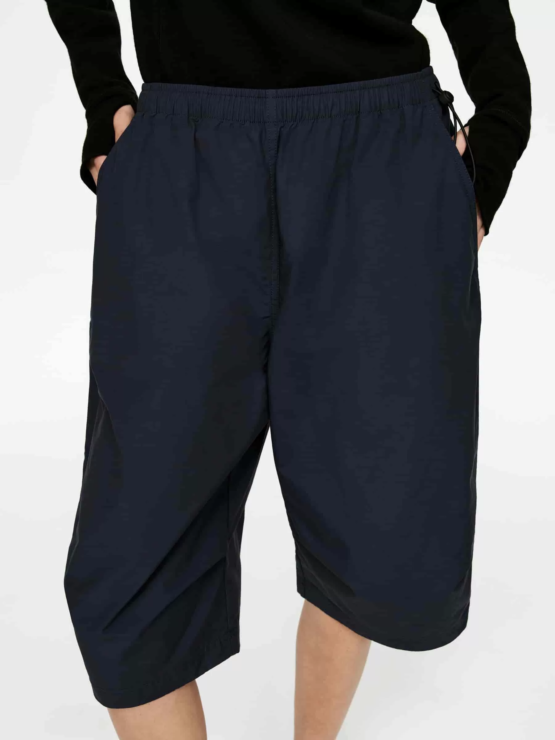 Locker sitzende Shorts aus Baumwollmischgewebe. Detailliert mit Gummizug in der Taille, Knebelverschluss an der Seite und Seitentaschen.