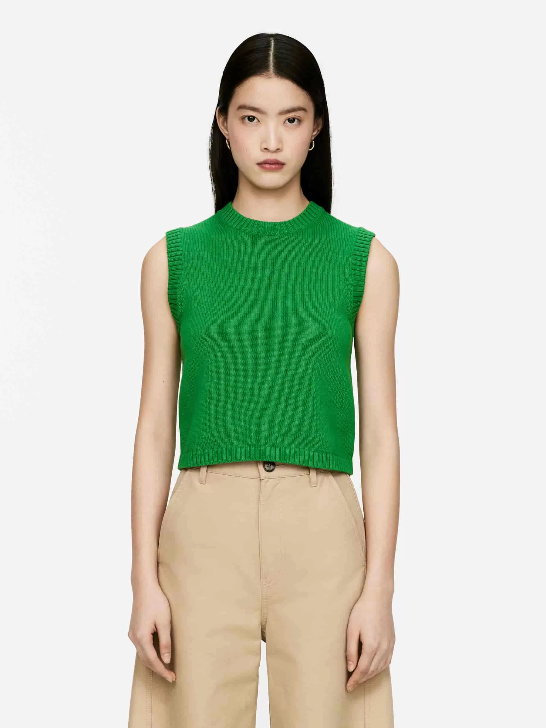 Strickweste aus Baumwolle mit geschrumpfter Passform und gerippten Abschlüssen.