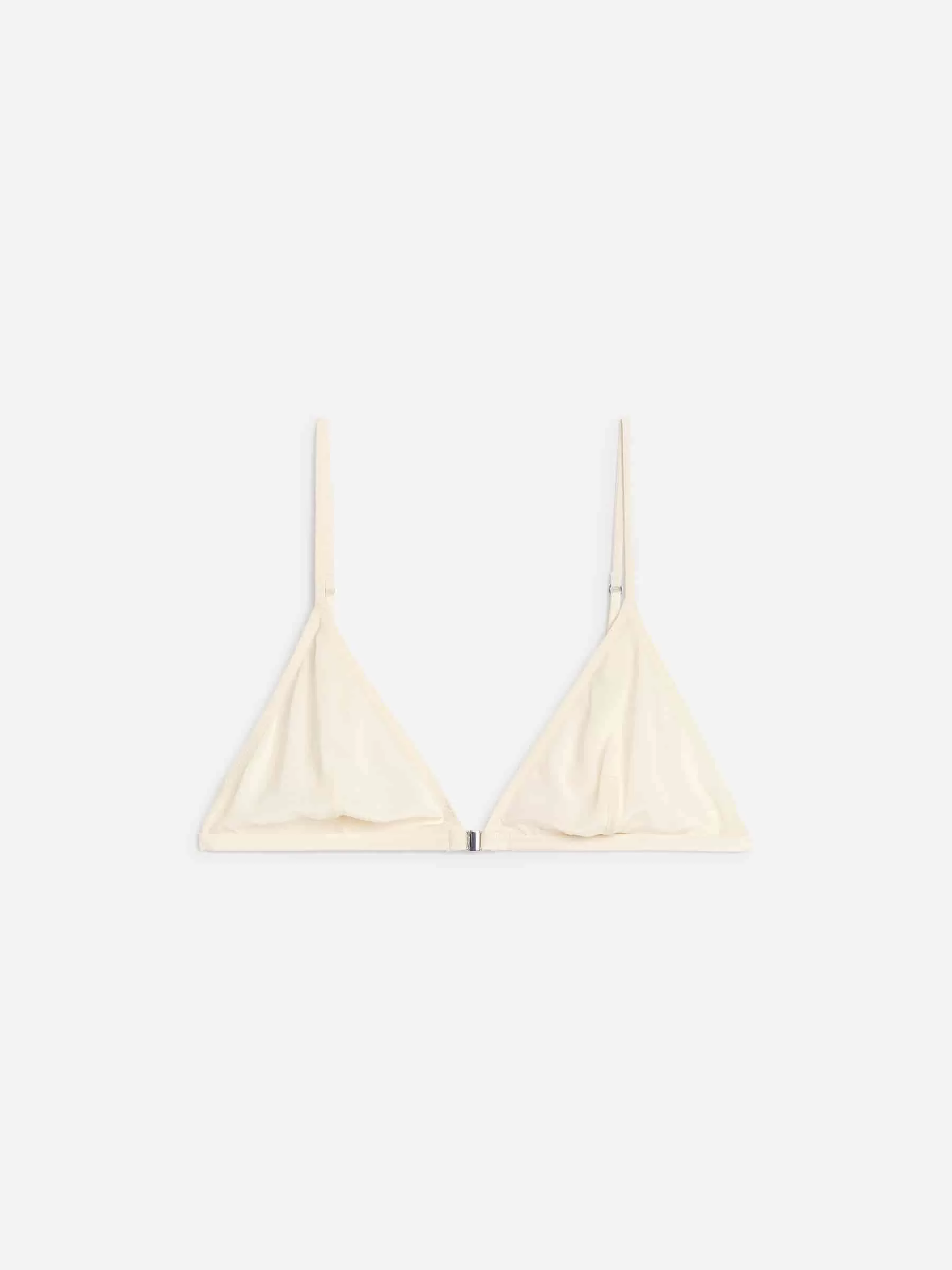 Weicher BH aus Seiden-Crêpe-Stoff mit einem Hauch Stretch für mehr Komfort. Ausgestattet mit dreieckigen Körbchen, verstellbaren Schulterträgern, einer Schnalle vorne und einem gerafften Rückenträger für eine flexiblere Anpassung.