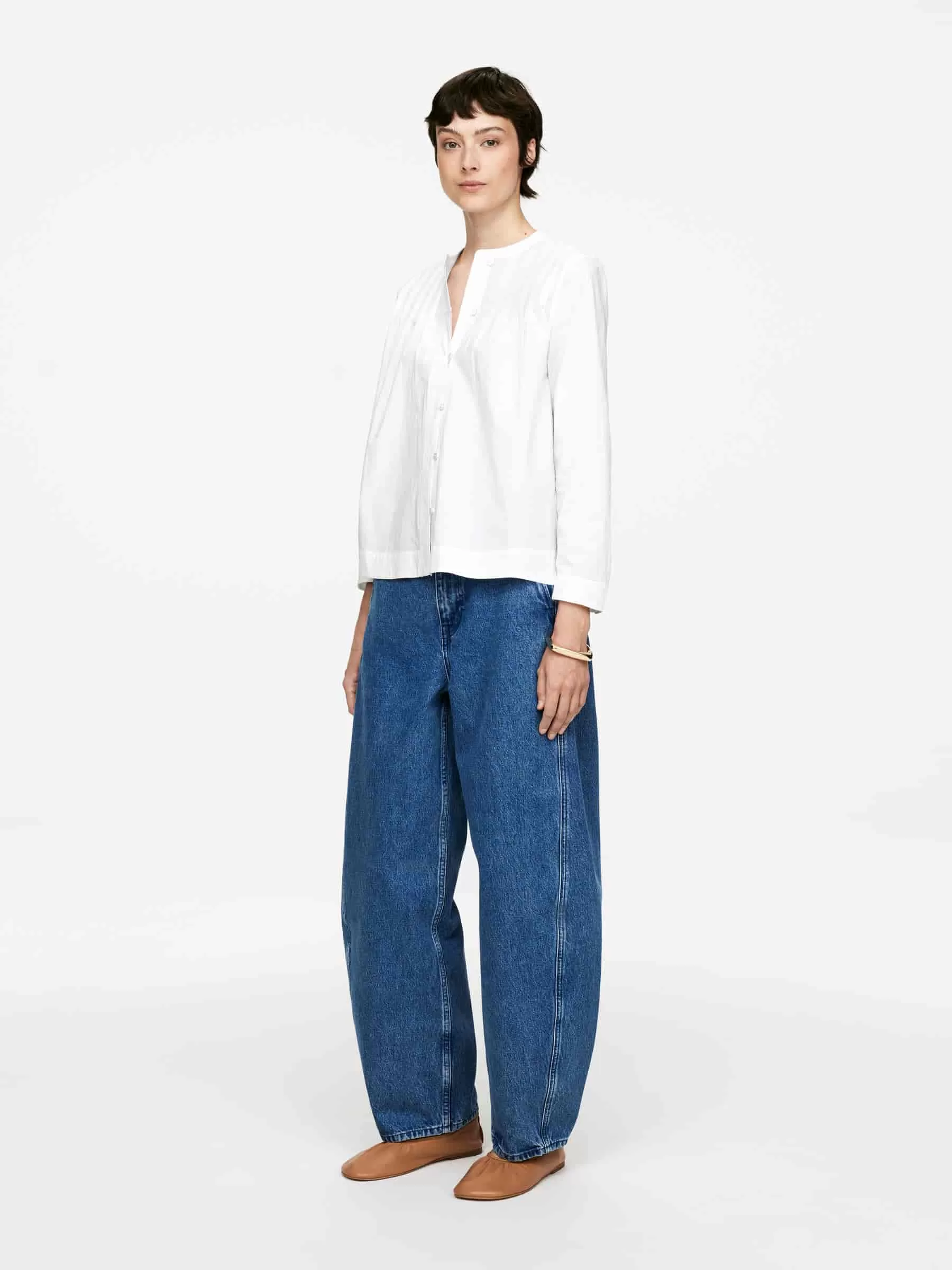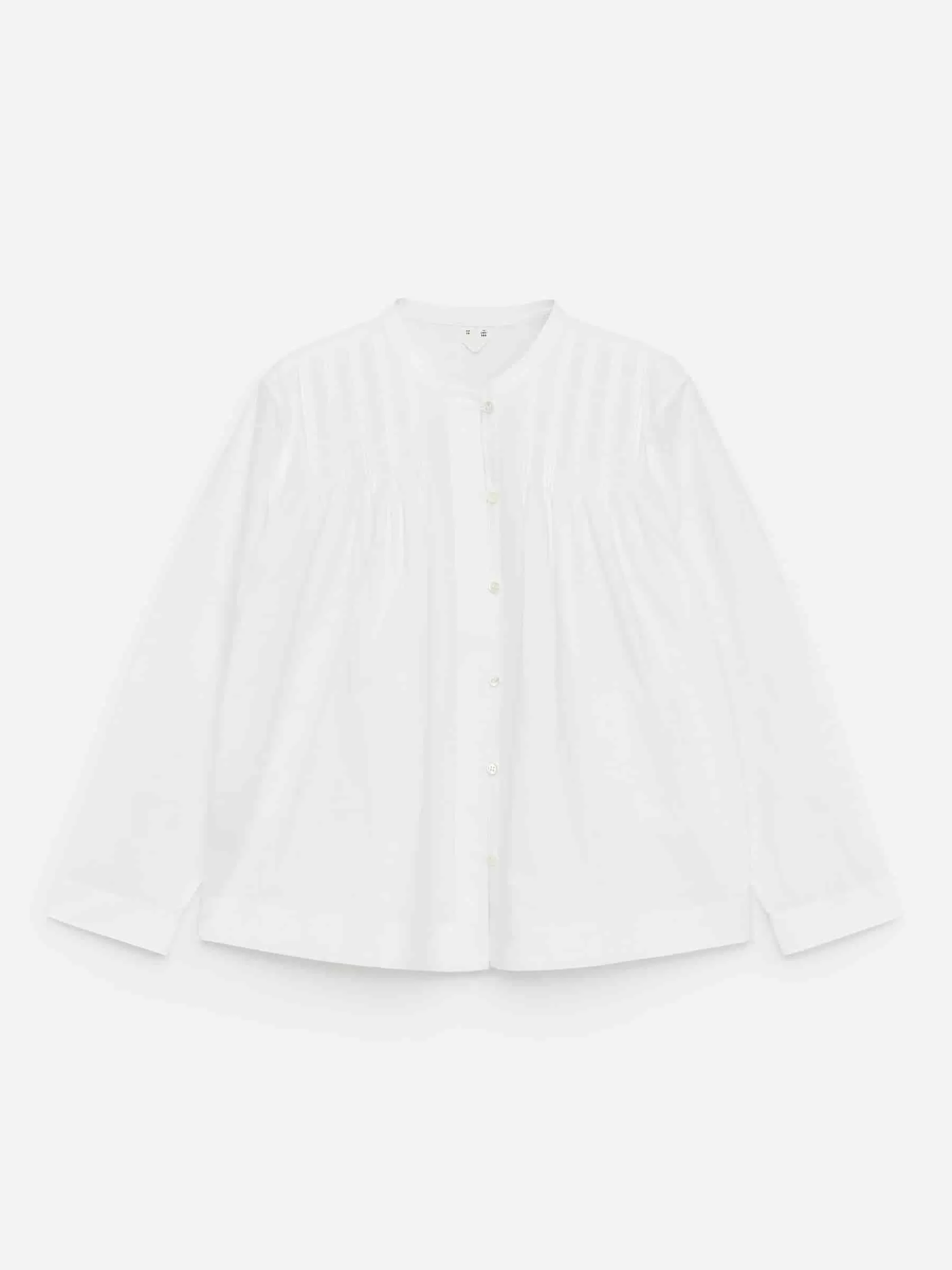 Bluse aus gewebtem Baumwollstoff mit Biesendetails auf der Brust. Rundhalsausschnitt und geknöpfte Vorderseite.