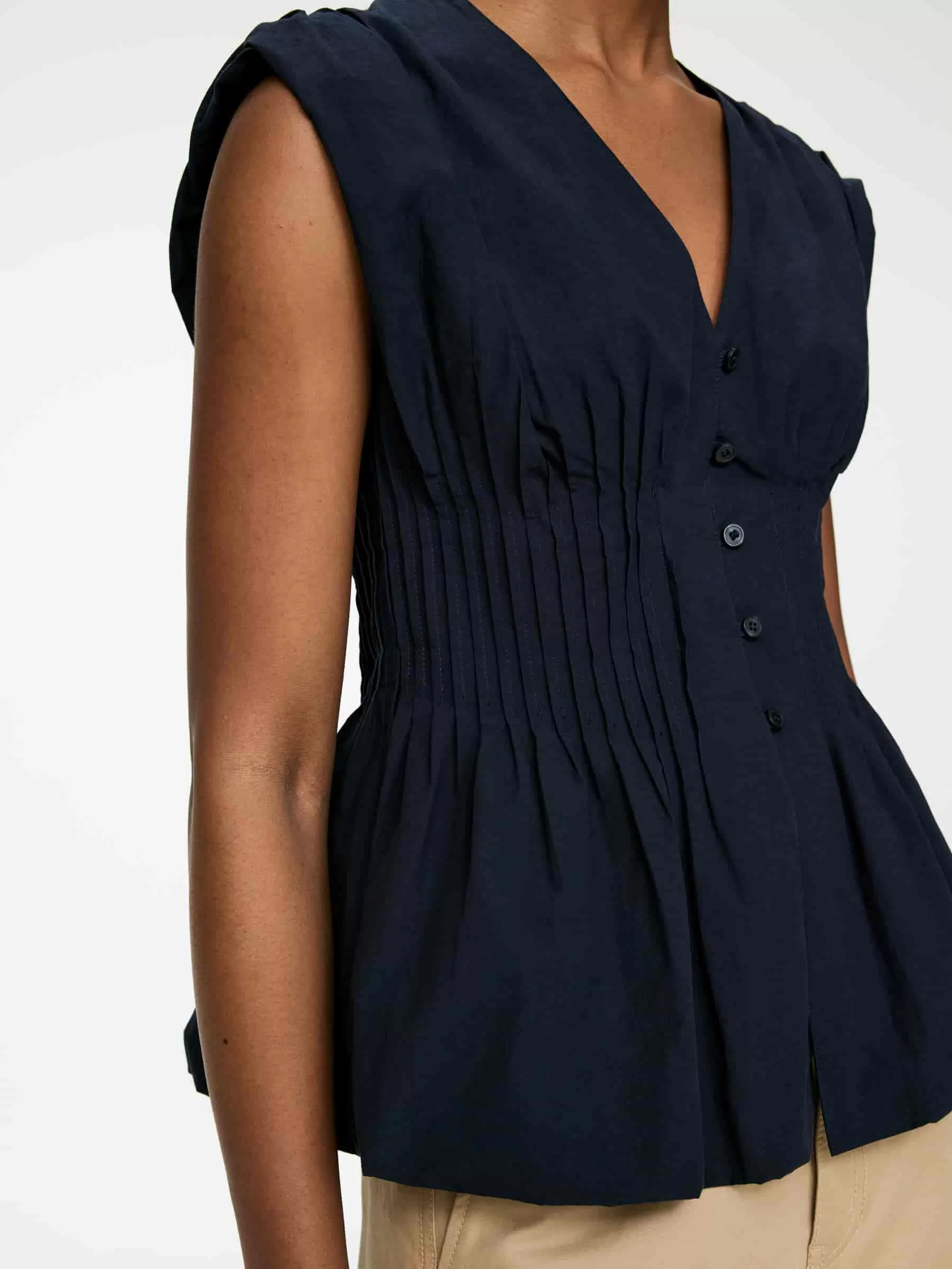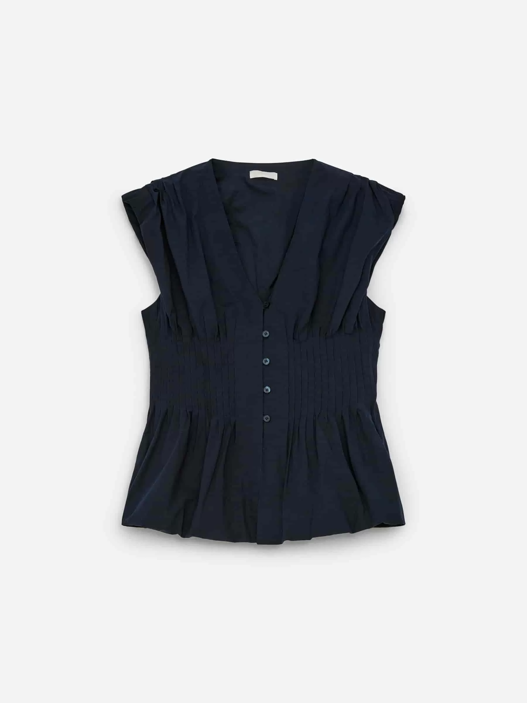 ARKE Damen Biesenoberteil mit Blasensaum Dunkelblau