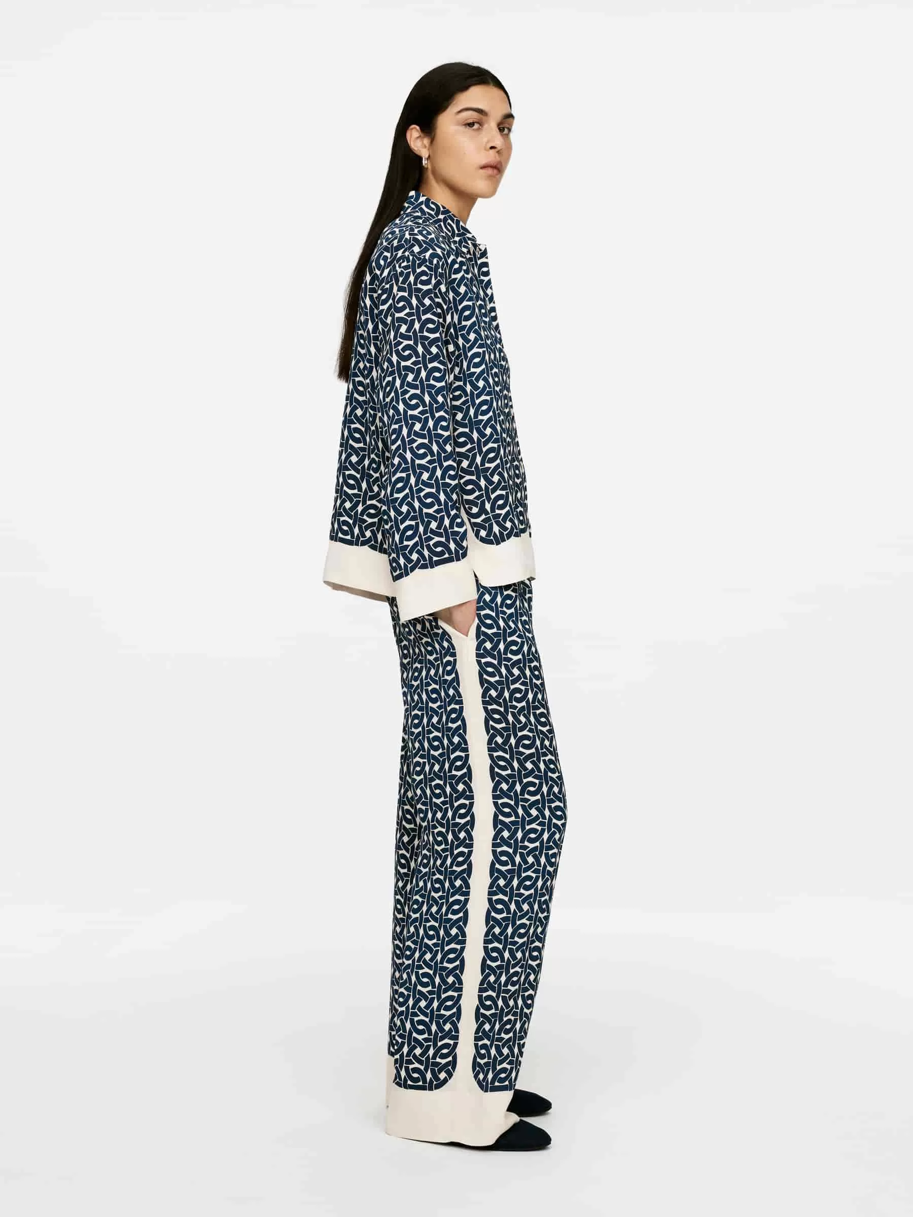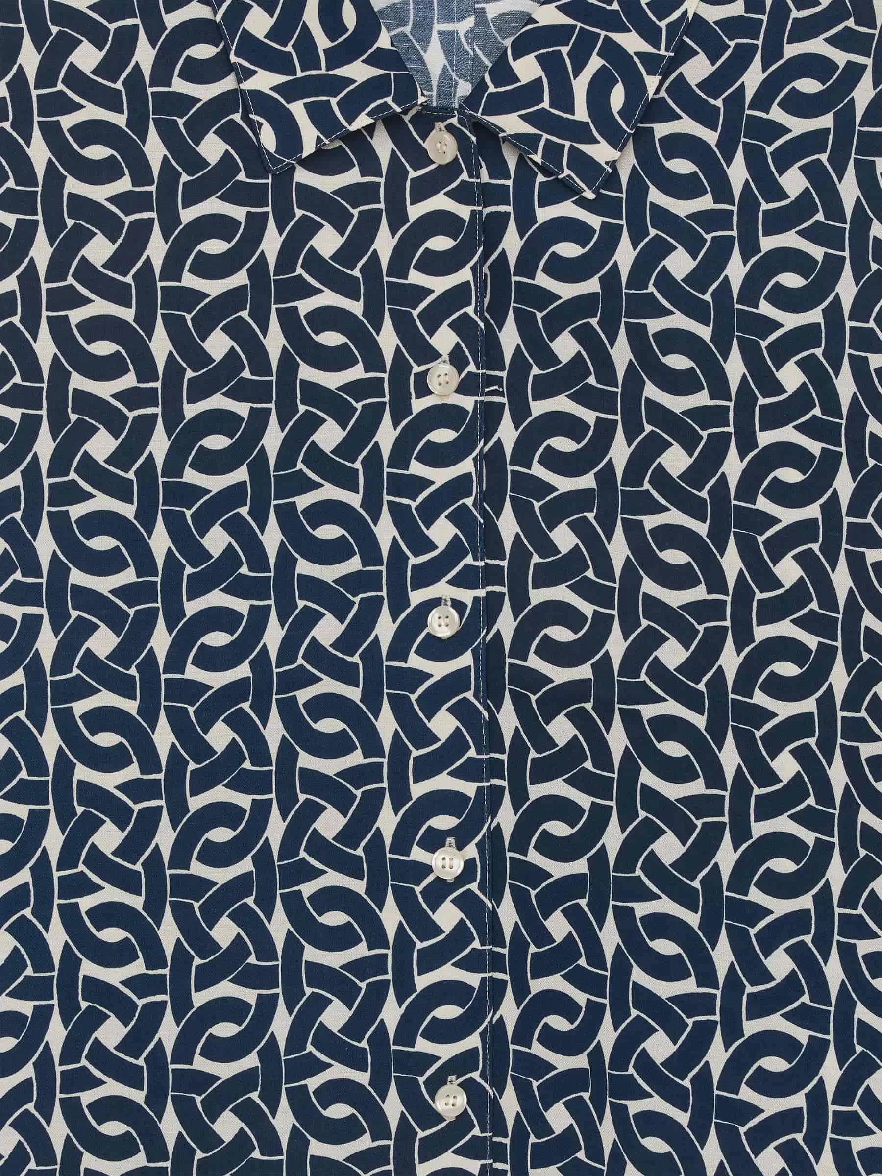 Bedruckte Bluse mit Knopfverschluss und Hemdkragen. Lockere Passform.