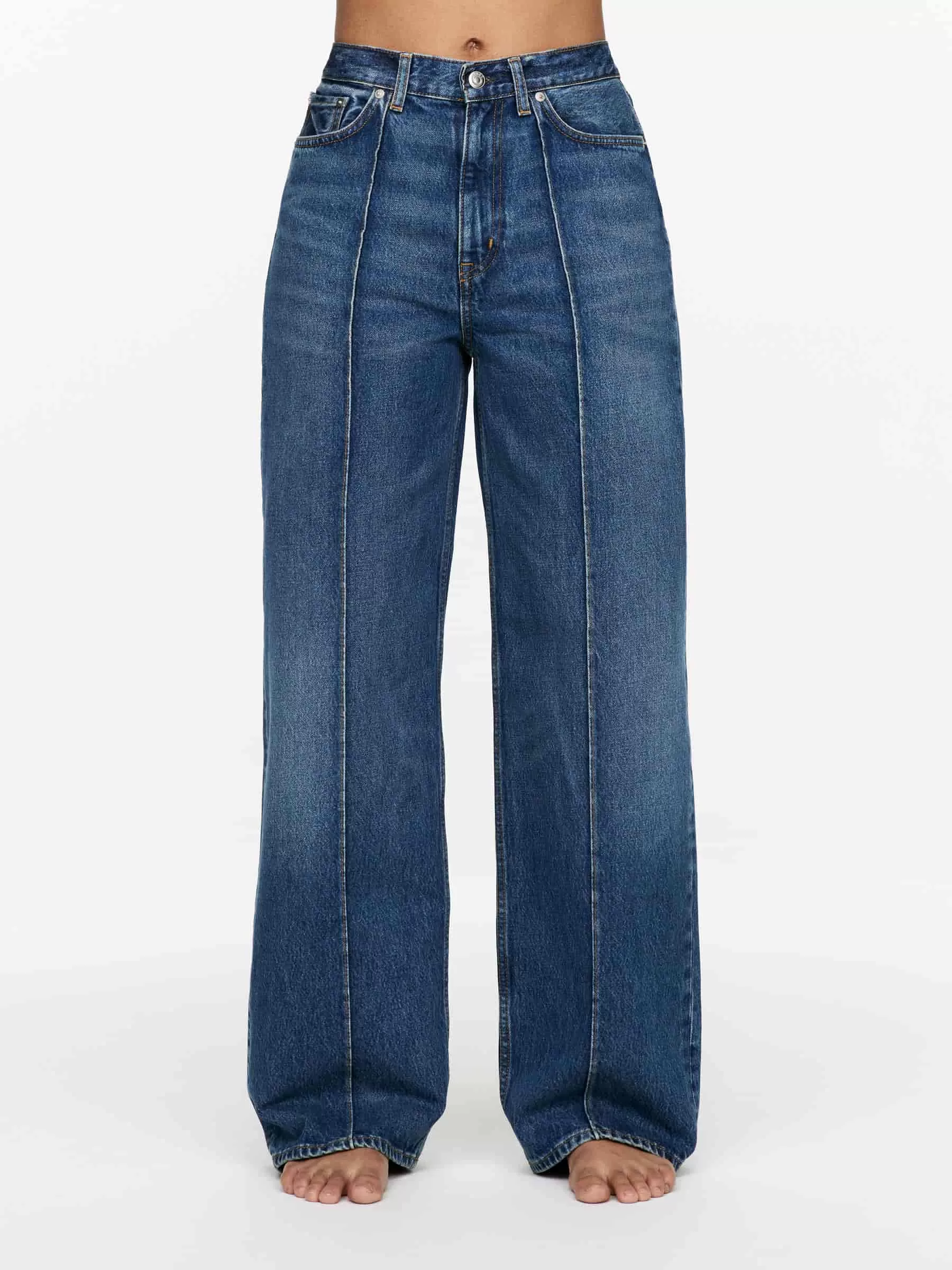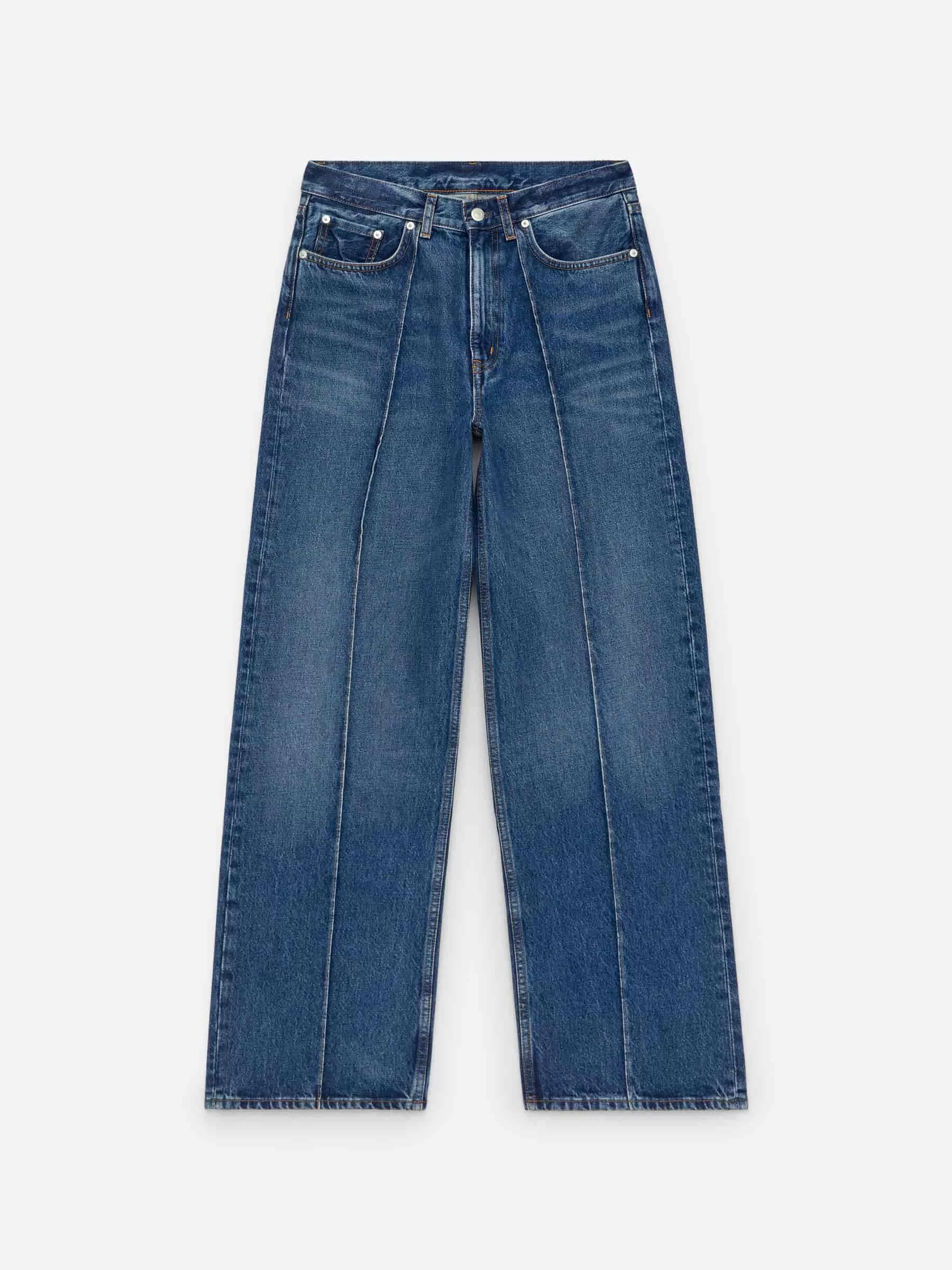 CORAL Pintuck ist aus nicht dehnbarem Denim gefertigt und verfügt über Biesenfalten vorne und hinten, eine hohe Taille, eine entspannte Passform und weite Beine.