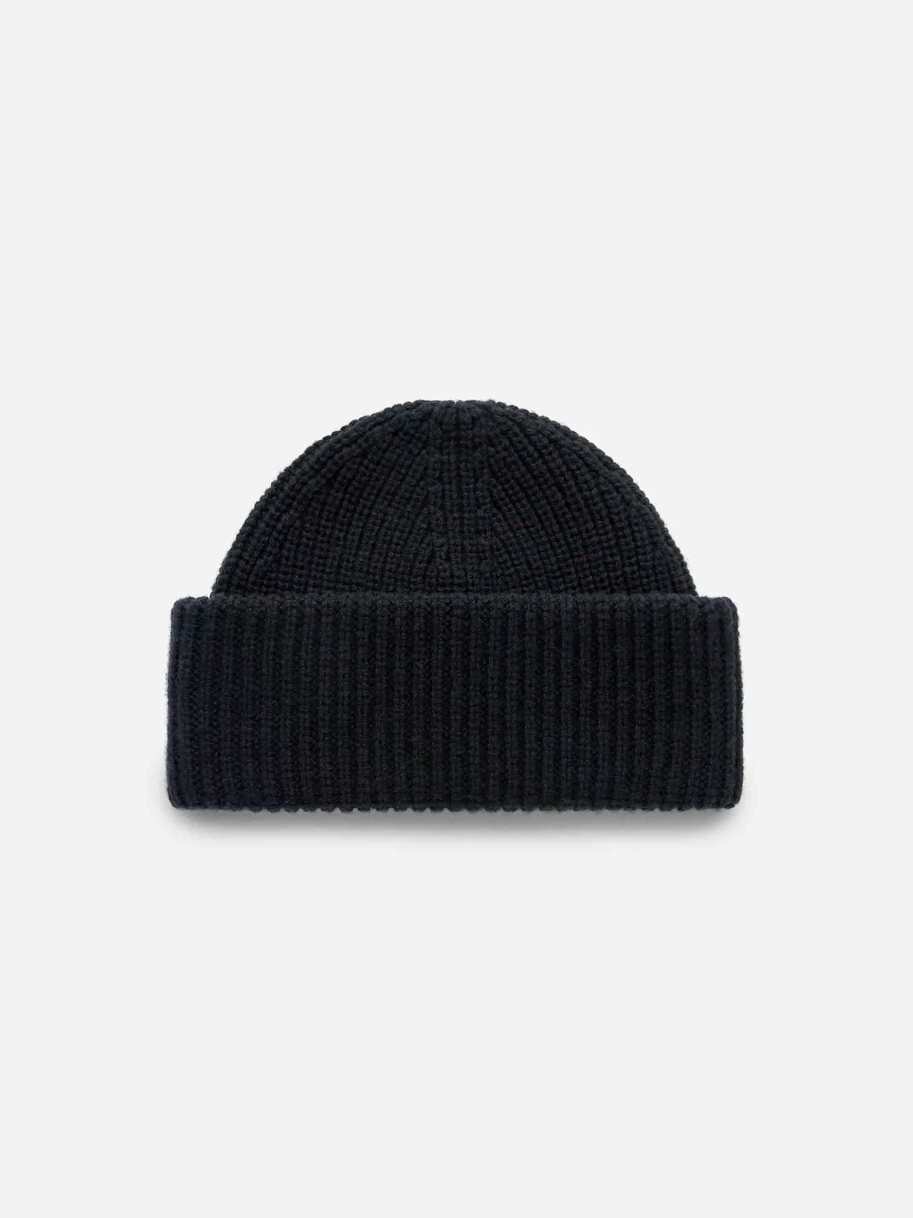 Doppelt gefaltete Wollmütze, gestrickt im Halbstrickmuster. Diese Mütze besteht aus 100 % RWS-Wolle (TE-00047206). Produkte, die nach dem Responsible Wool Standard (RWS) zertifiziert sind, enthalten Wollfasern von Farmen, die unabhängig nach Tierschutz- und Landbewirtschaftungsanforderungen zertifiziert sind.