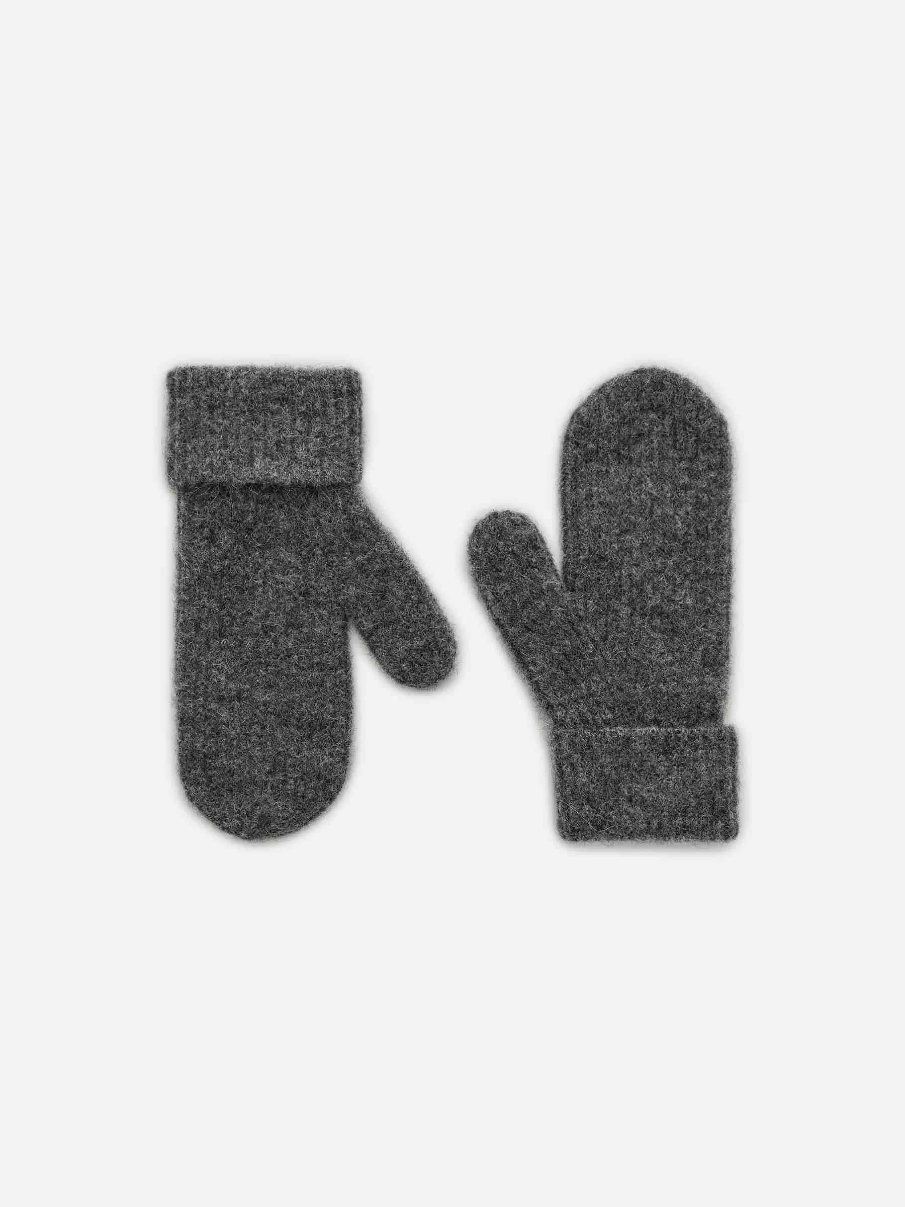 Fäustlinge in haariger Qualität, gestrickt aus einer Mischung aus Alpaka und Wolle. Gefaltete Manschetten. Dieser Stil enthält 28 % RAS-Alpaka und 30 % RWS-Wolle (TE-00047206). Produkte, die nach dem Responsible Wool Standard (RWS) und dem Responsible Alpaca Standard (RAS) zertifiziert sind, enthalten Wolle und Alpakafasern von Farmen, die unabhängig nach Tierschutz- und Landmanagementanforderungen zertifiziert sind.