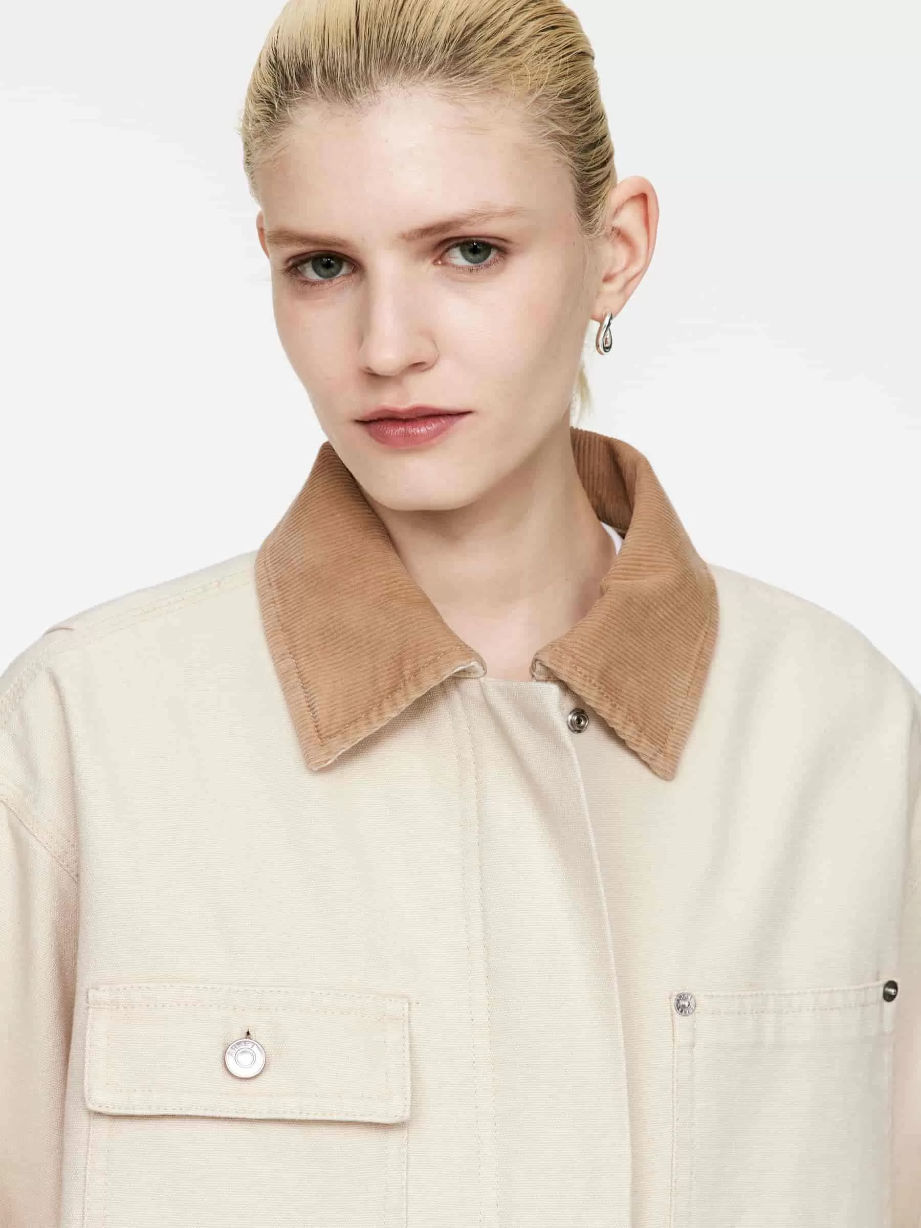 ARKE Damen Gefütterte Canvas-Jacke Hellbeige