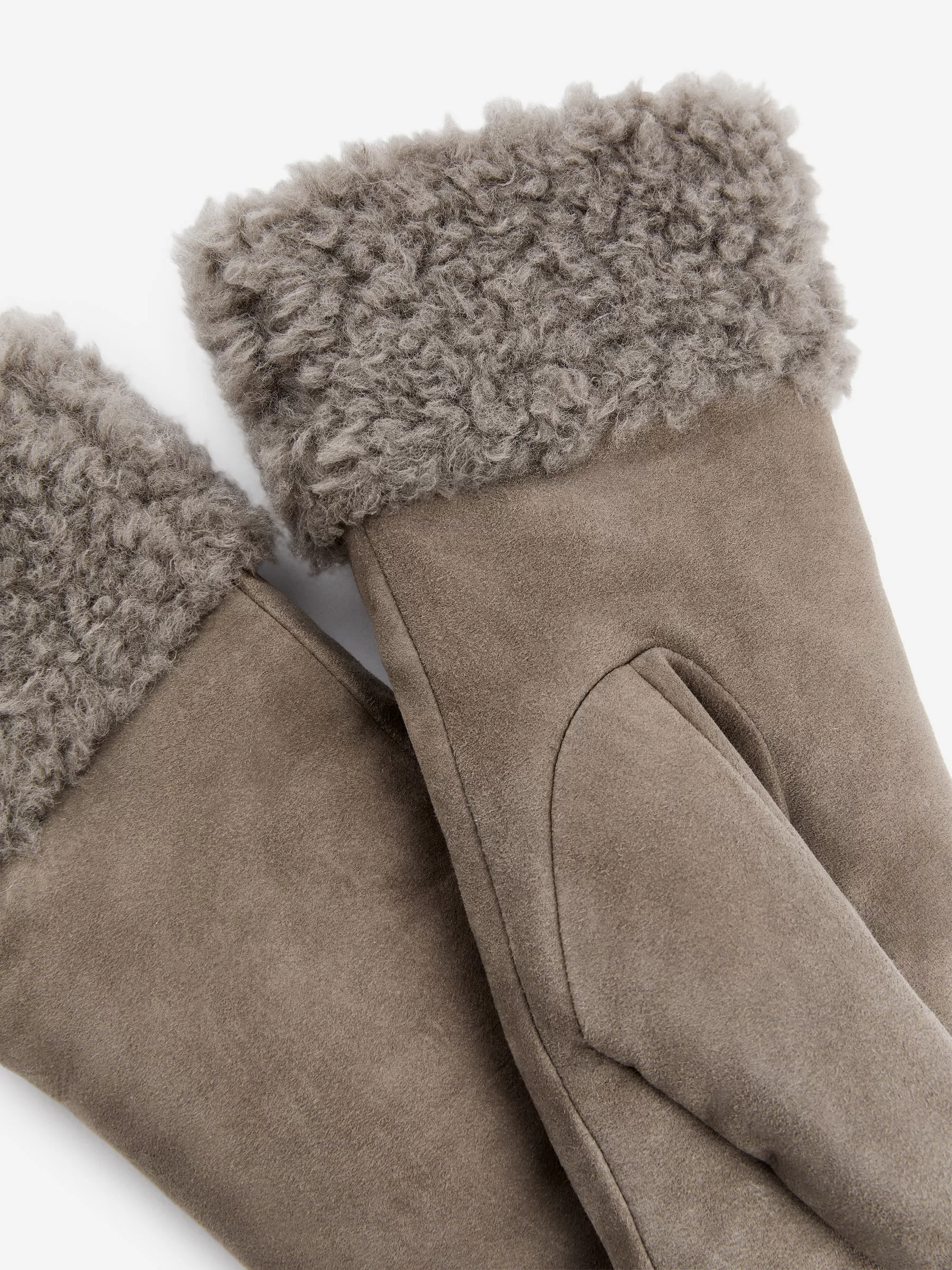 Fäustlinge aus weichem Wildleder mit Florfutter.