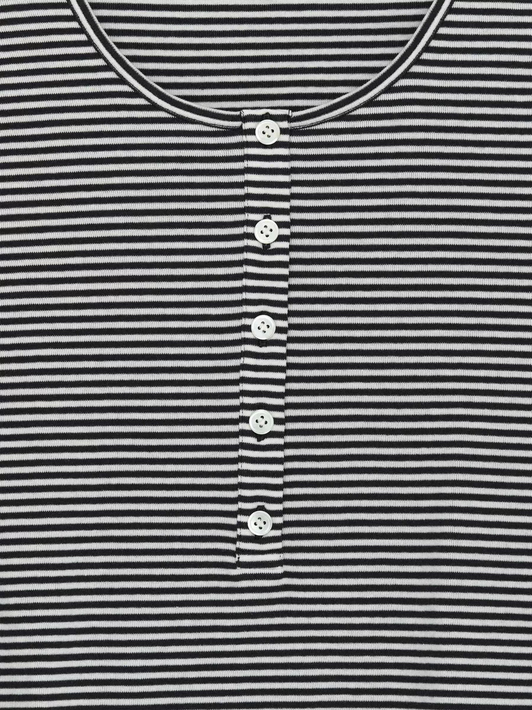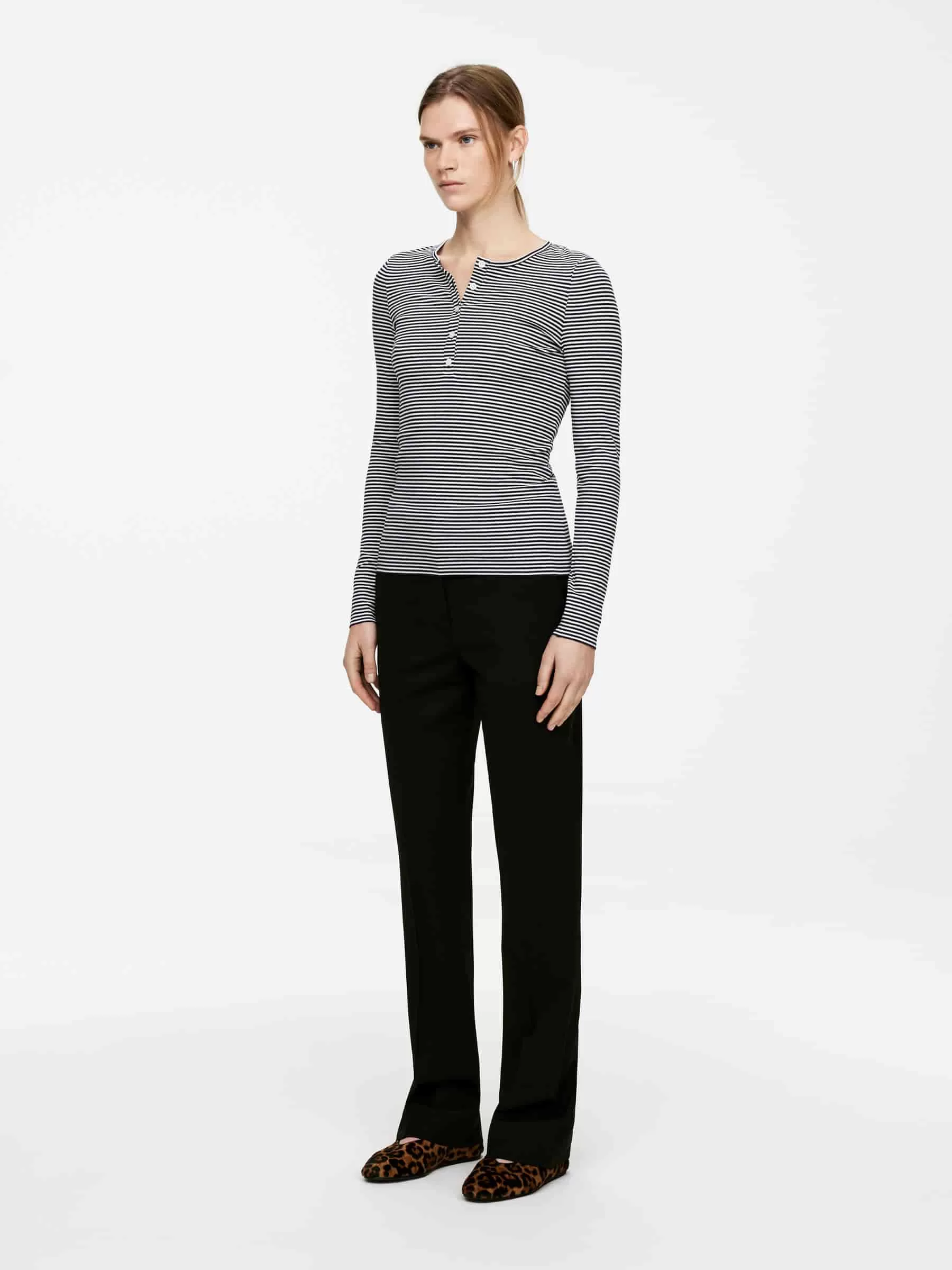 Langärmliges Oberteil aus halbtransparentem Jersey mit Rippstruktur. Ein schmal geschnittener Henley-Stil mit U-Ausschnitt und zarten Knöpfen.