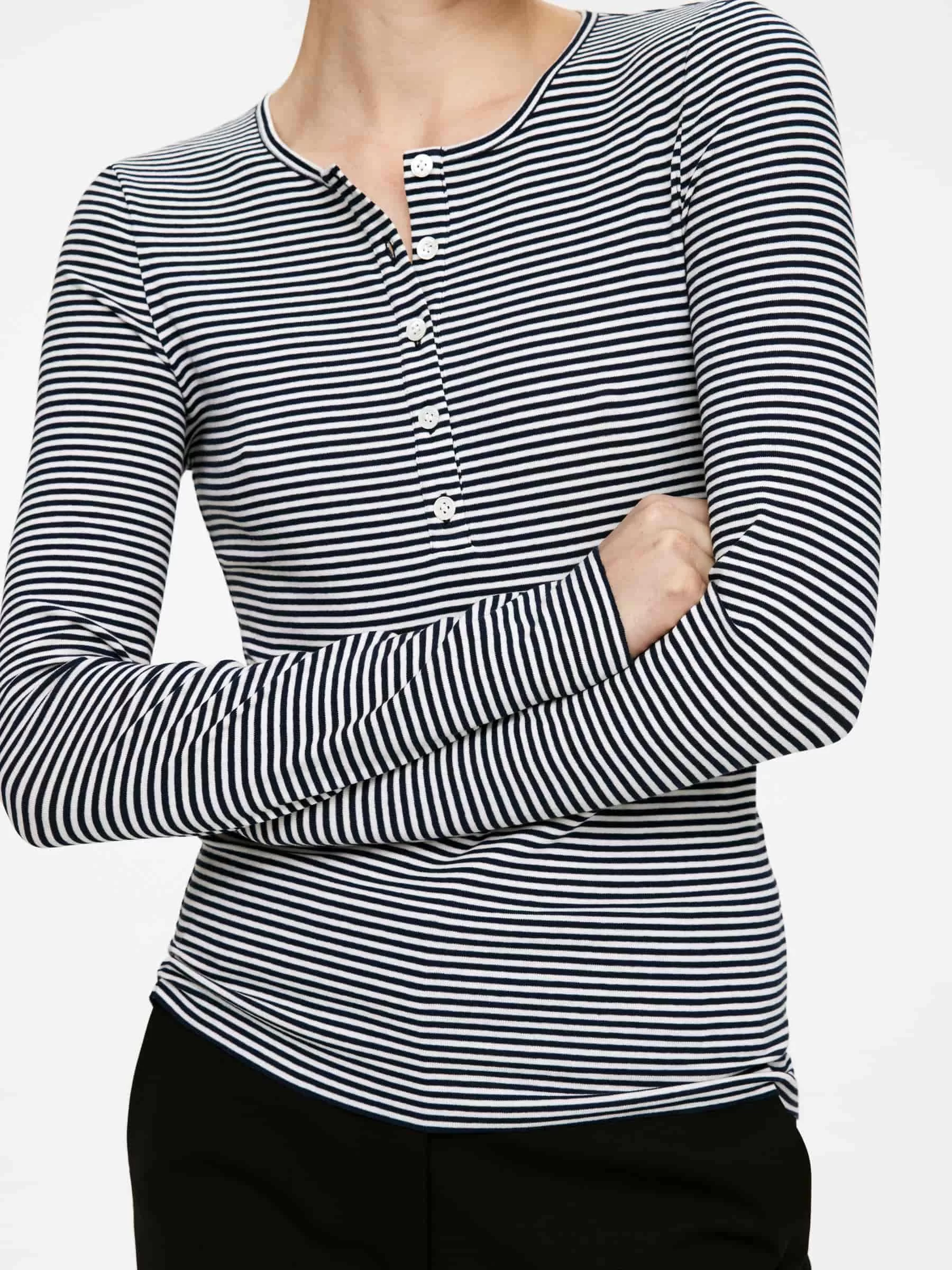 ARKE Damen Geripptes Henley-Top Dunkelblau/Weiß