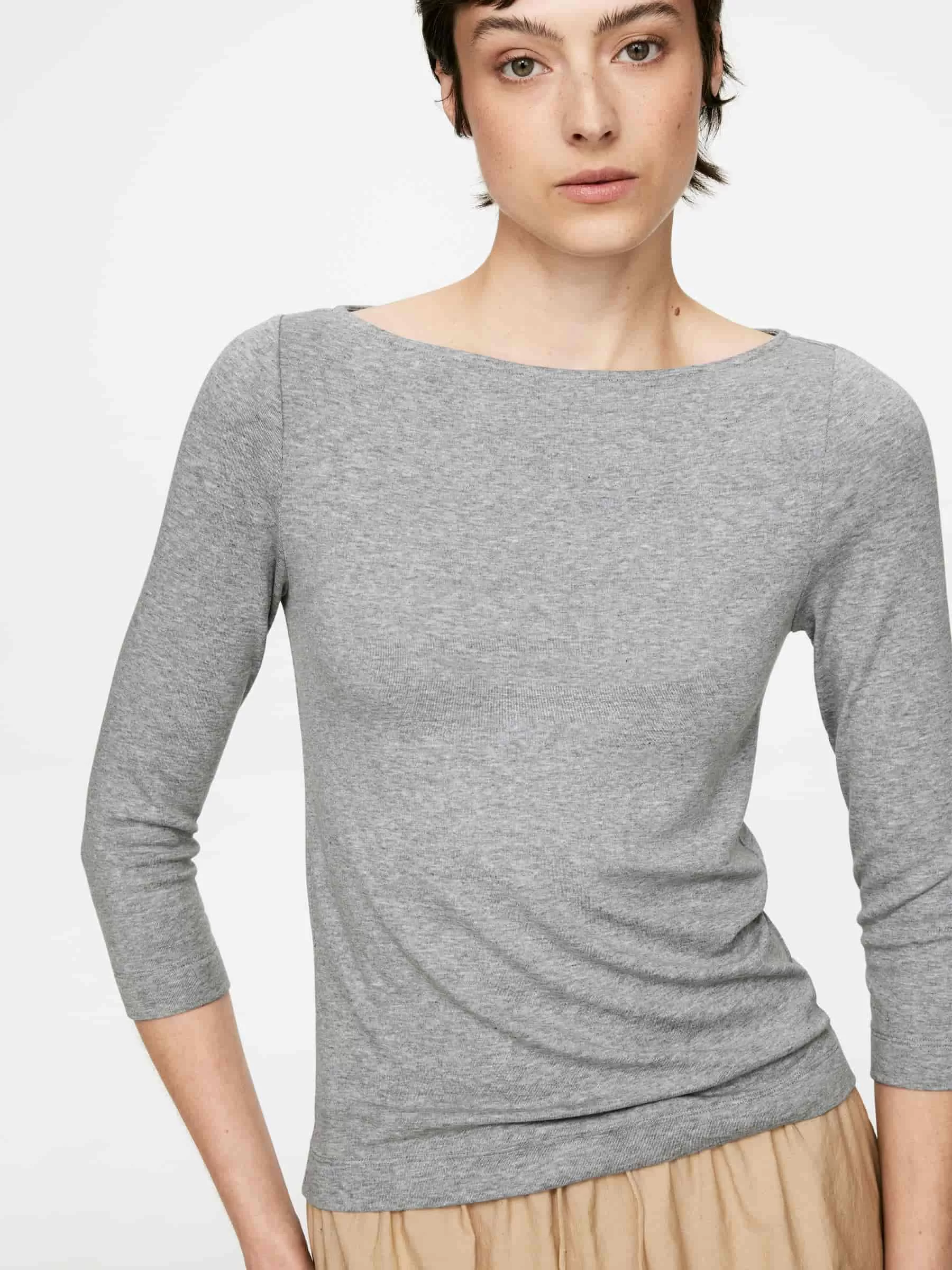 Rippstrickoberteil aus Lyocell. Ein schmal geschnittener Stil mit 3/4-Ärmeln.