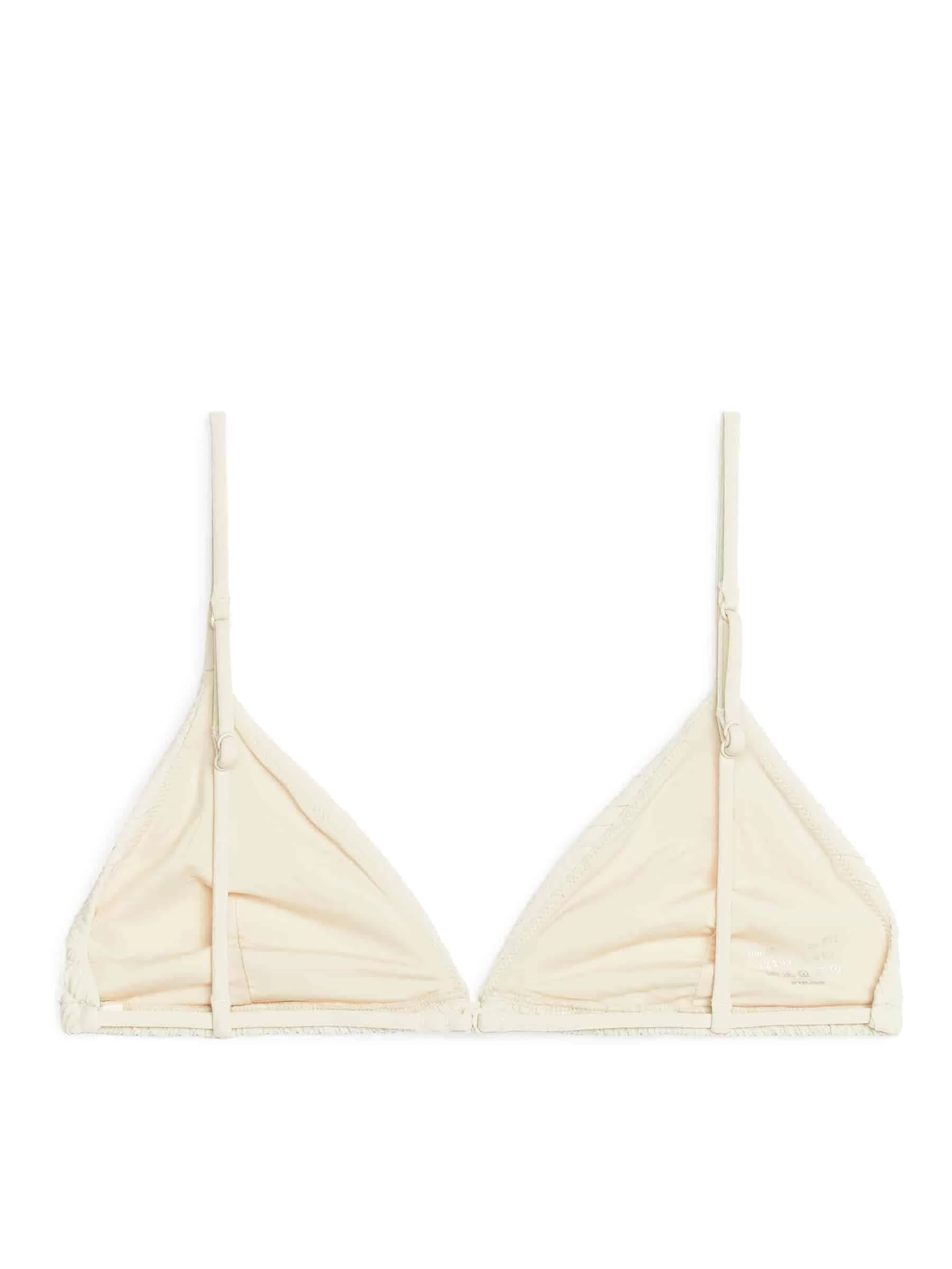 Triangel-Bikinioberteil aus dehnbarem Stoff mit gesmokten Details. Ein vollständig gefütterter Stil mit schmalen, verstellbaren Trägern. Geringe Unterstützung.