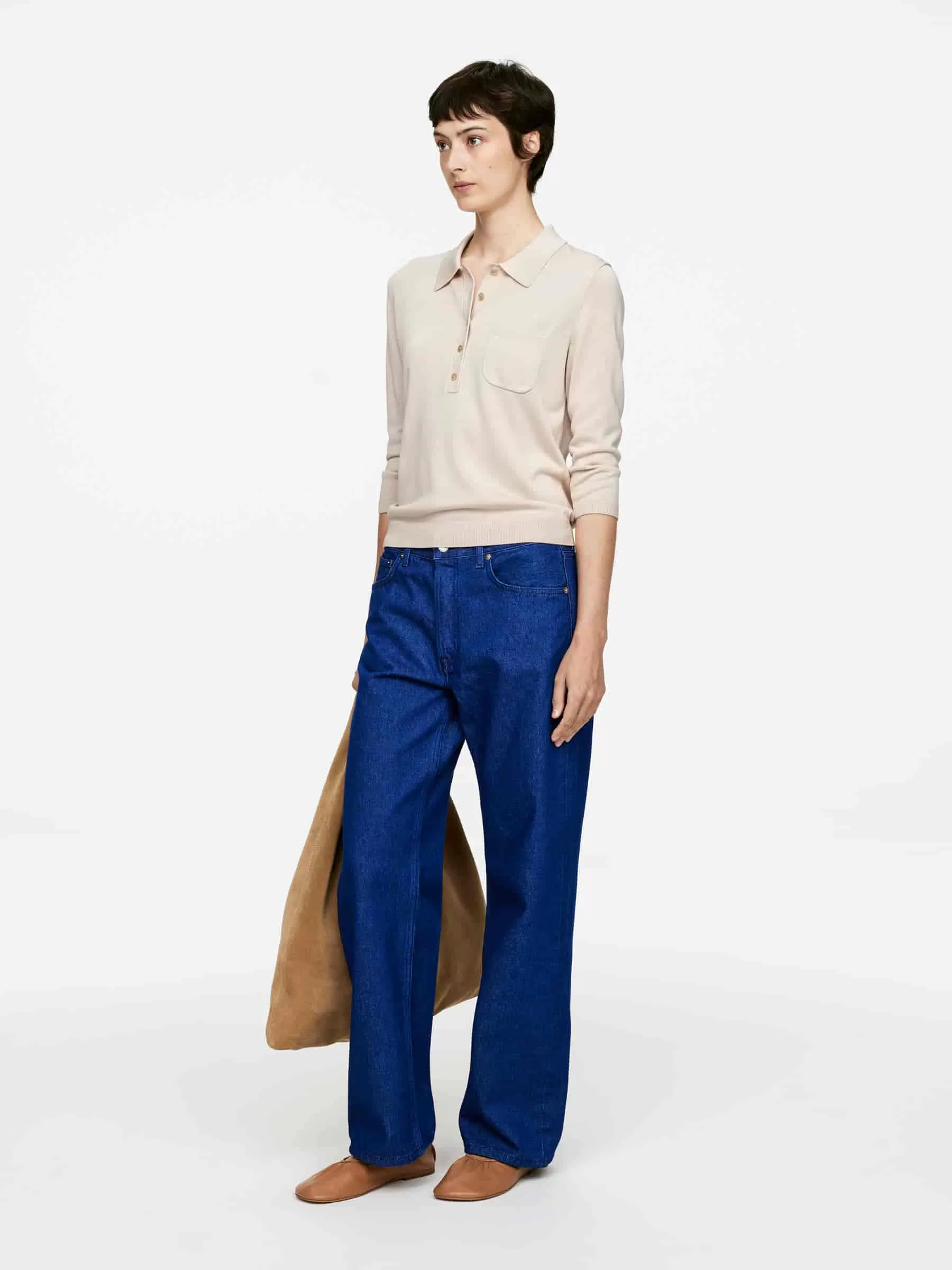 ARKE Damen Gestricktes Poloshirt Cremefarben