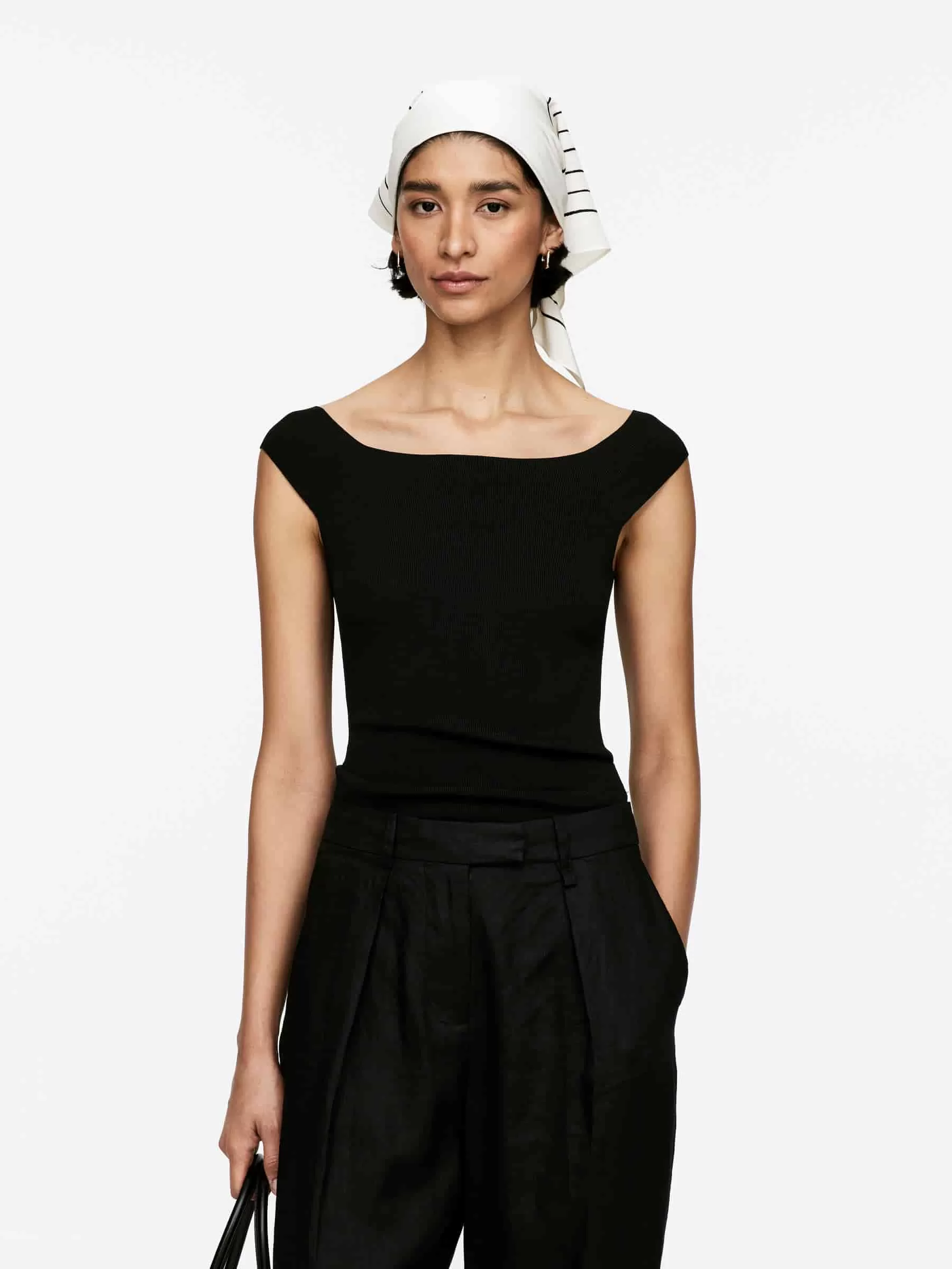 Schulterfreies Oberteil aus Viskosemischung gestrickt. Schlanke Passform.