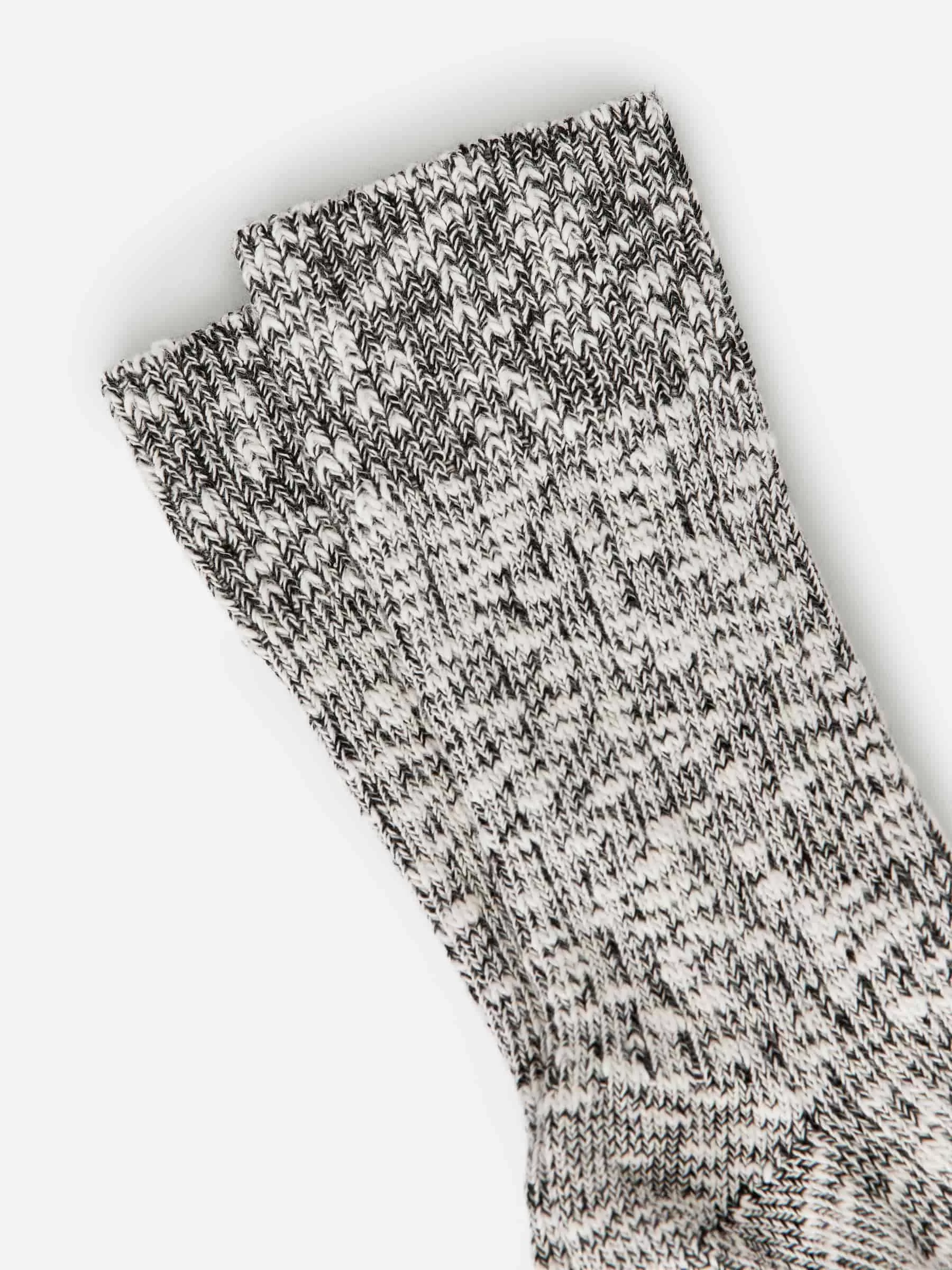 Klobige Socken im Rippenstrick aus einem unregelmäßigen Baumwollmischgarn.