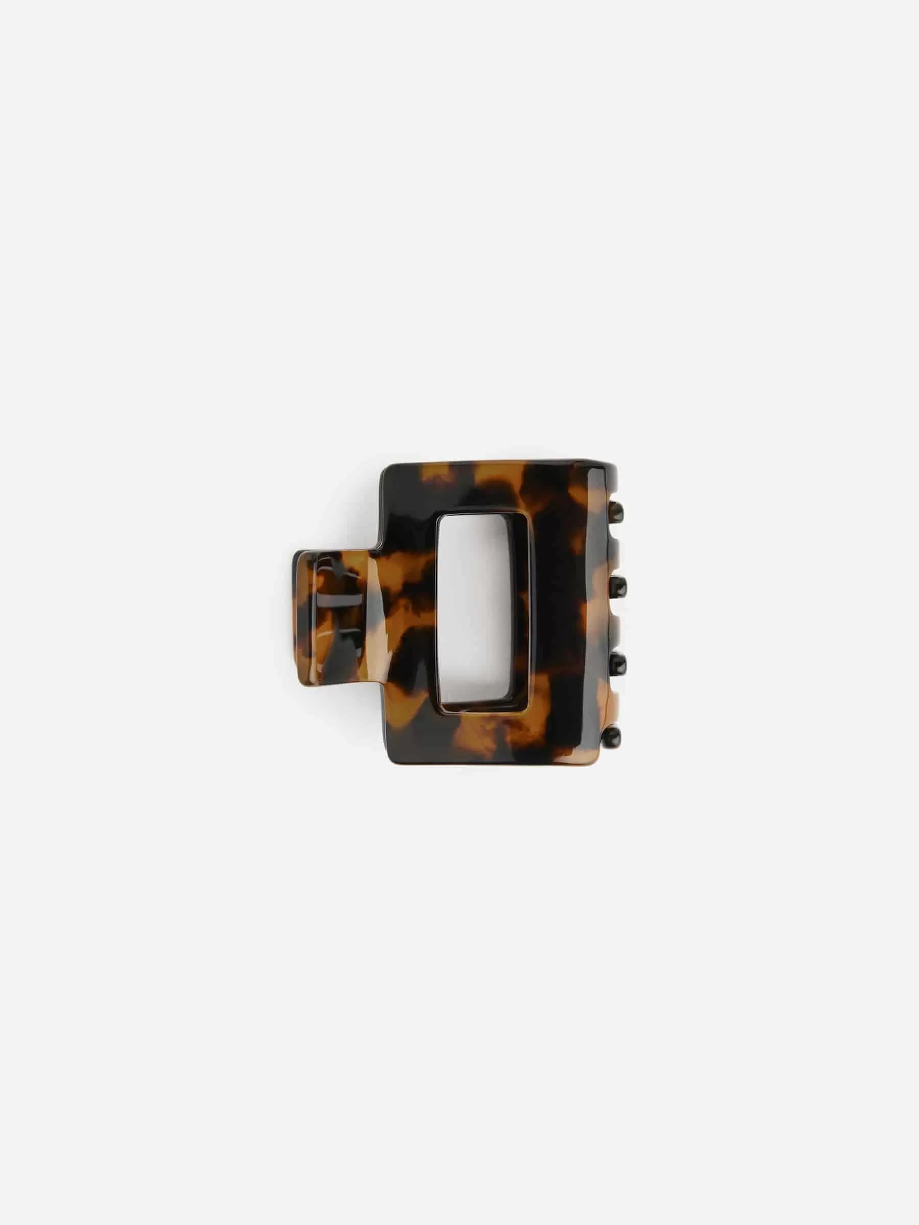 Quadratische Haarspange aus recyceltem Acetat. Maße: 4,5 cm x 4,6 cm.