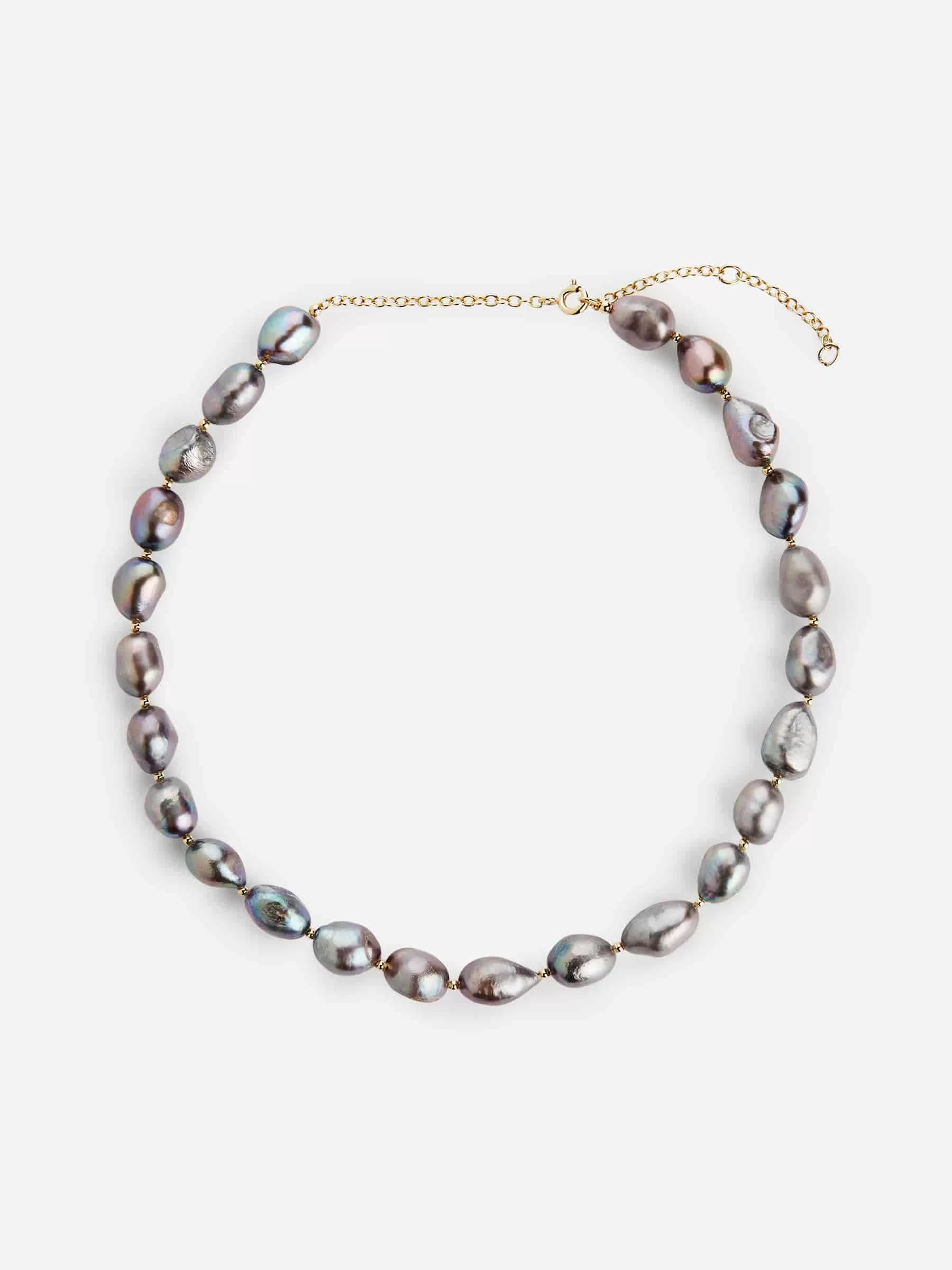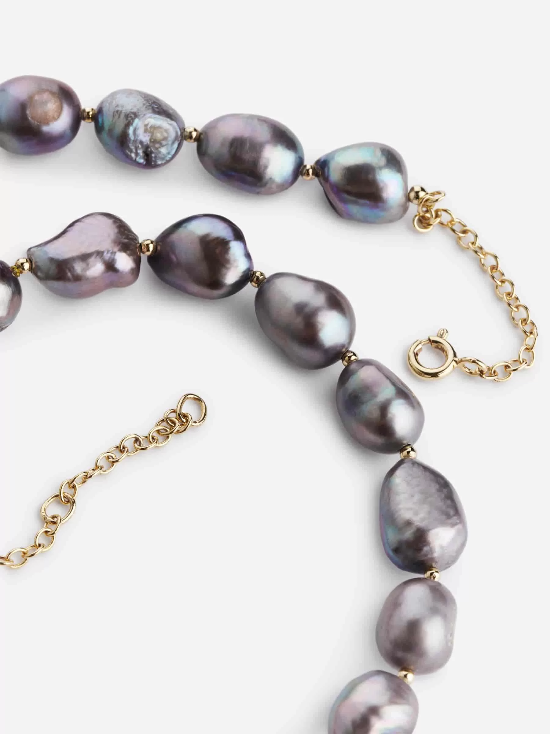 ARKE Damen Halskette mit Süßwasserperlen Dunkelgrau/Gold