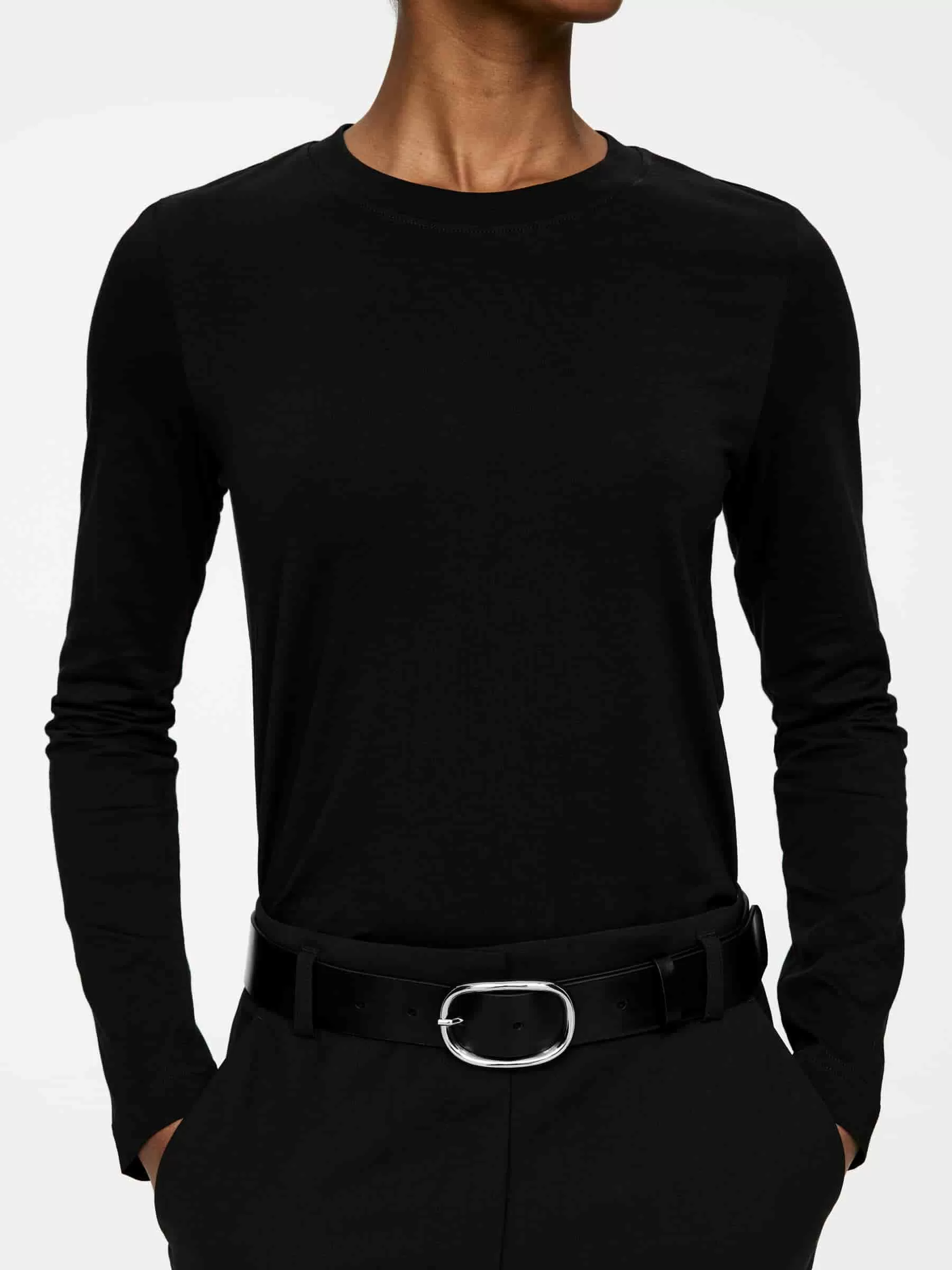 Langärmliges T-Shirt aus leichtem Baumwolljersey. Mit Rundhalsausschnitt und normaler Passform.