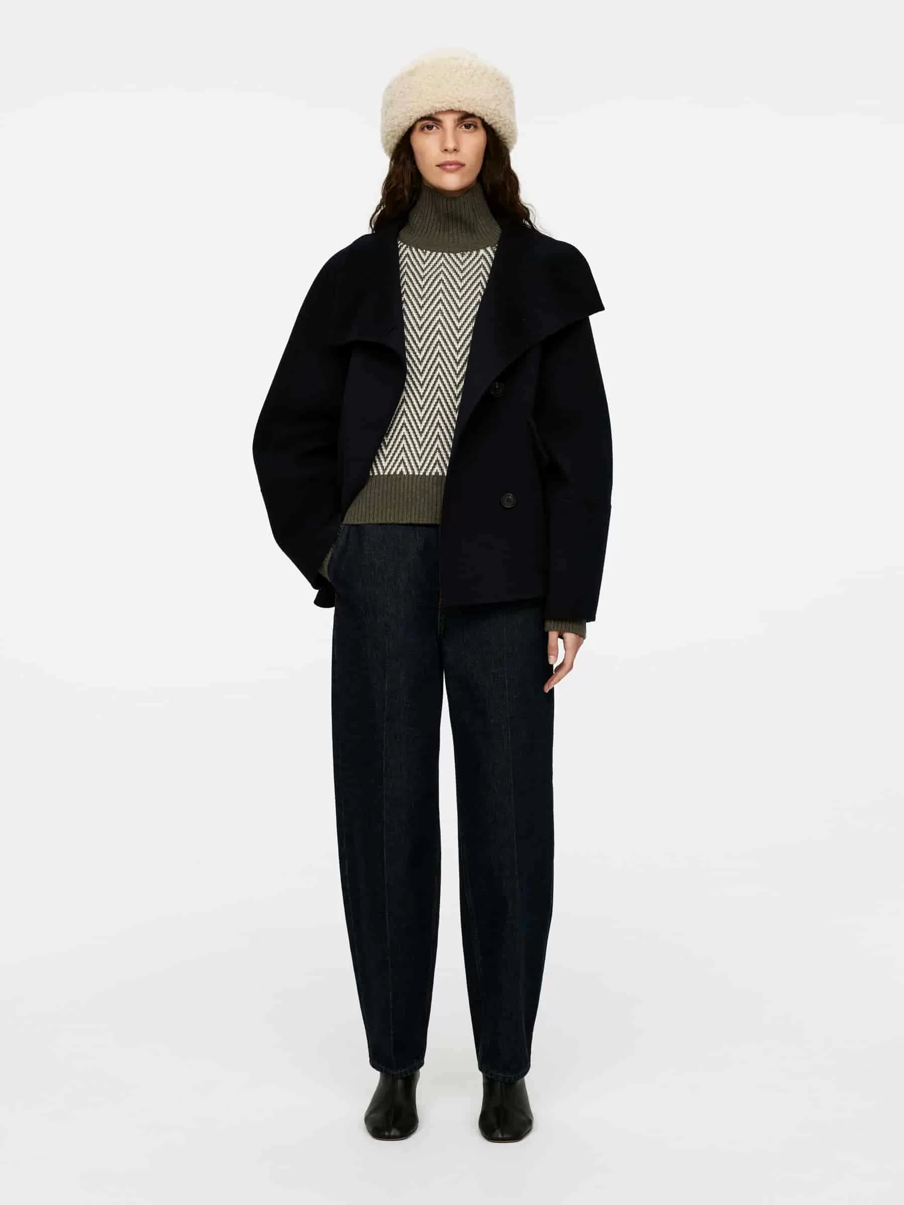 Jacquard-Strickpullover aus hochwertiger Wolle. Mit Stehkragen, gerippten Abschlüssen und normaler Passform. Der Pullover besteht aus 100 % RWS-Wolle (TE-00047206). Produkte, die nach dem Responsible Wool Standard (RWS) zertifiziert sind, enthalten Wollfasern von Farmen, die unabhängig nach Tierschutz- und Landbewirtschaftungsanforderungen zertifiziert sind.