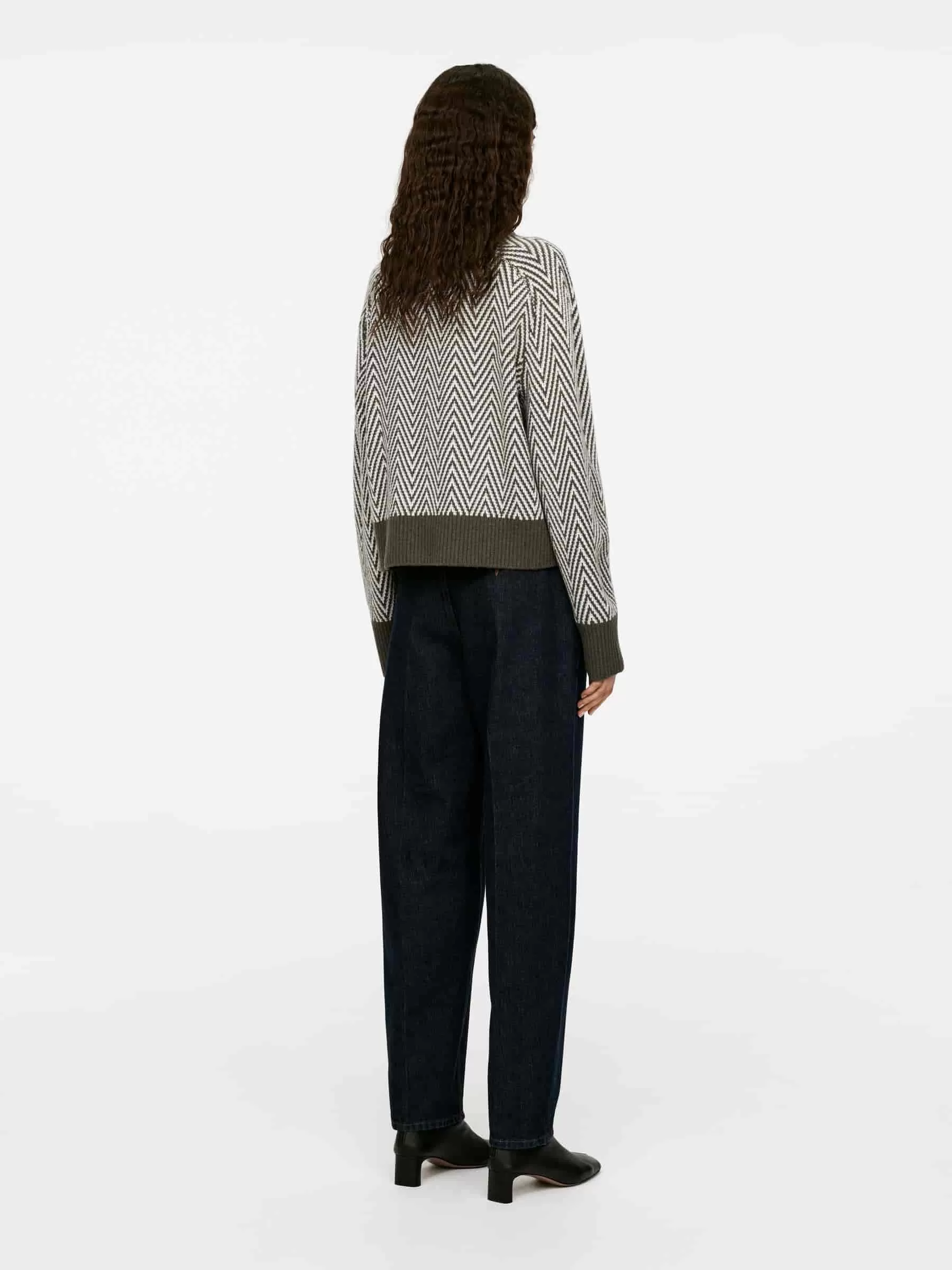 ARKE Damen Jacquard-Strickpullover aus Wolle Khakigrün