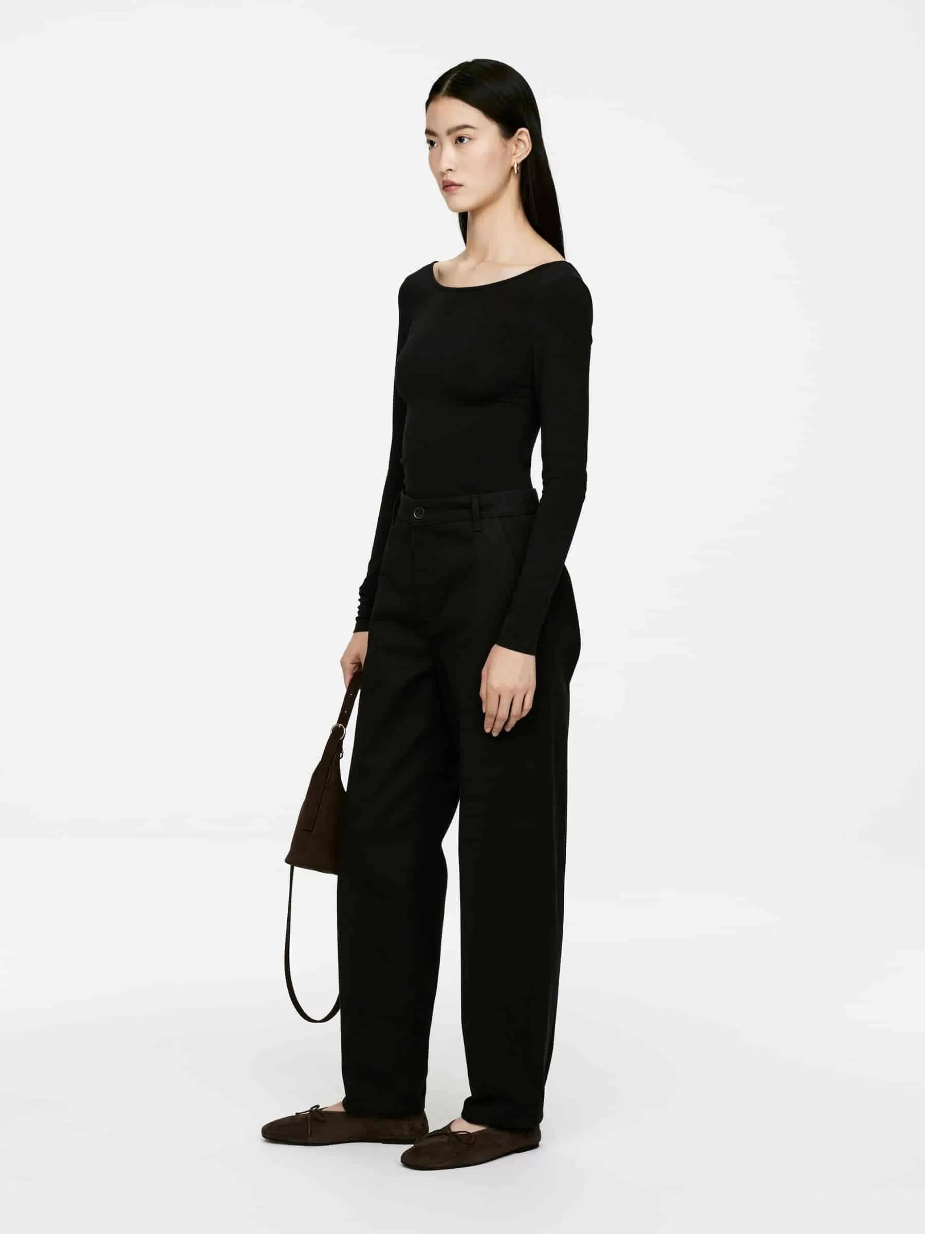 Langärmliges Oberteil mit schmaler Passform und tiefem U-Ausschnitt hinten. Aus dehnbarem Single-Jersey geschnitten.
