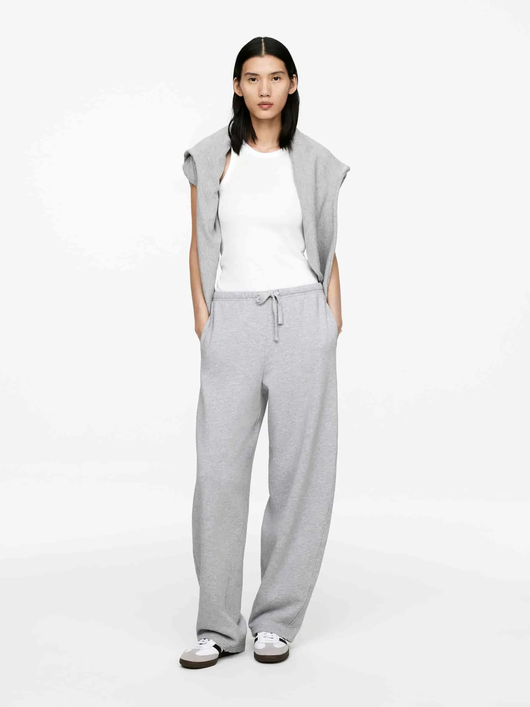 Jogginghose mit Laufbeinen, Kordelzug, weichem Gummizug in der Taille und Taschen in den Seitennähten.