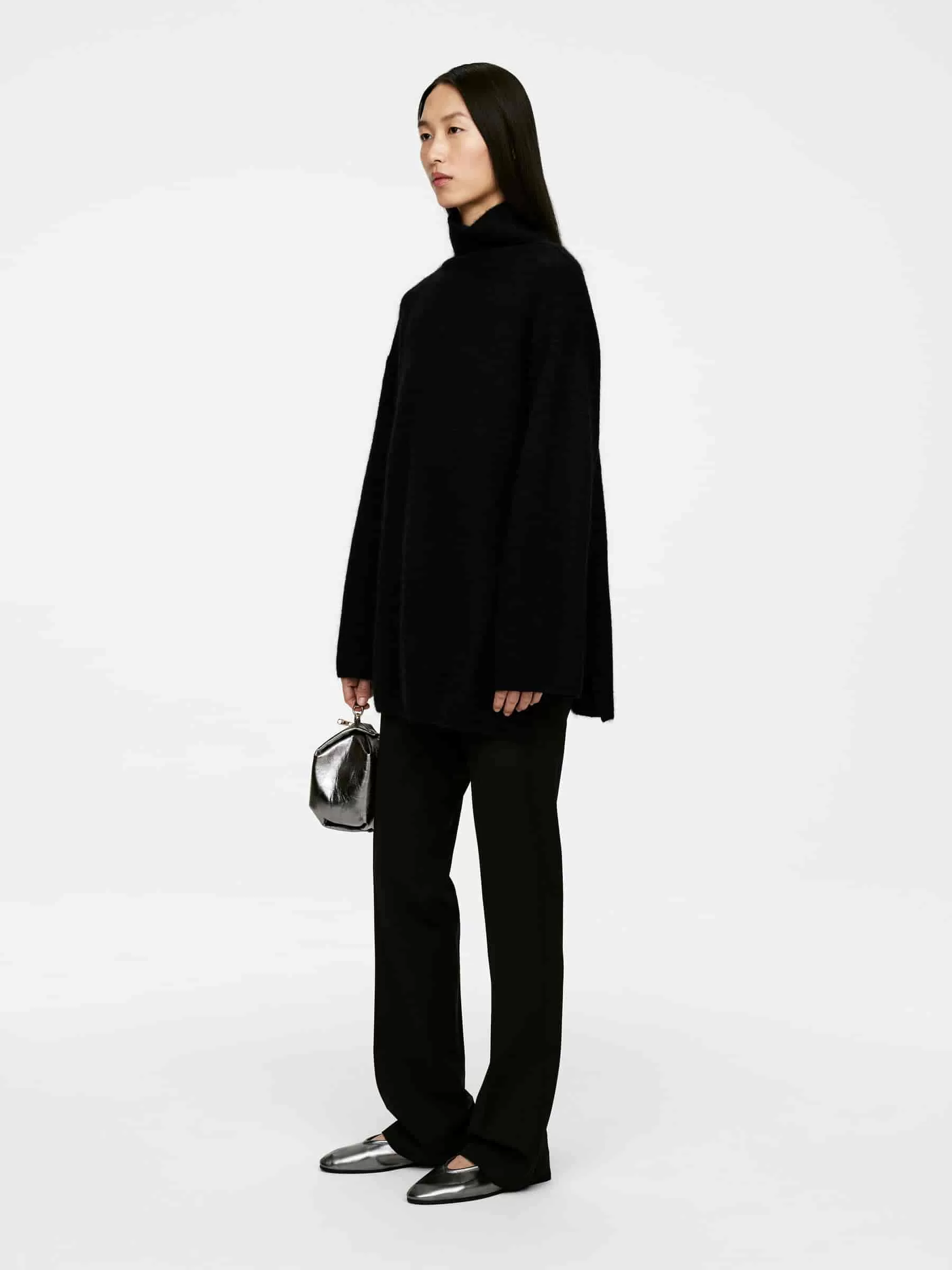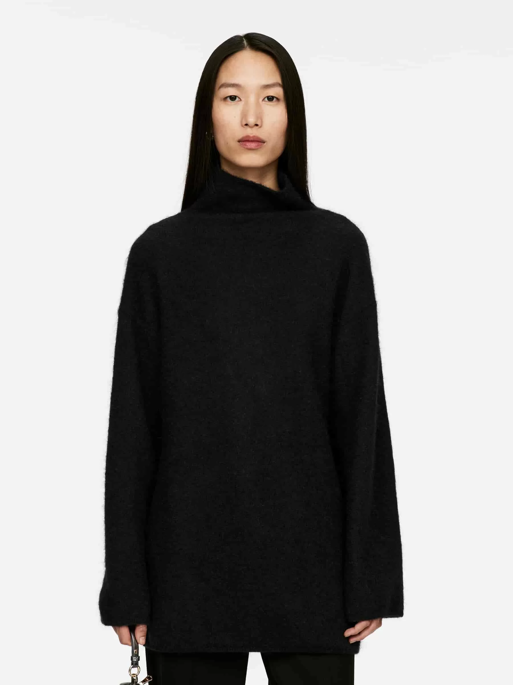 Pullover mit Stehkragen aus einer Alpaka-Wollmischung. Ein langer Stil mit Schlitz auf beiden Seiten. Entspannte Passform. Dieser Stil enthält 28 % RAS-Alpaka und 32 % RWS-Wolle (TE-00047206). Produkte, die nach dem Responsible Wool Standard (RWS) und dem Responsible Alpaca Standard (RAS) zertifiziert sind, enthalten Wolle und Alpakafasern von Farmen, die unabhängig nach Tierschutz- und Landmanagementanforderungen zertifiziert sind.