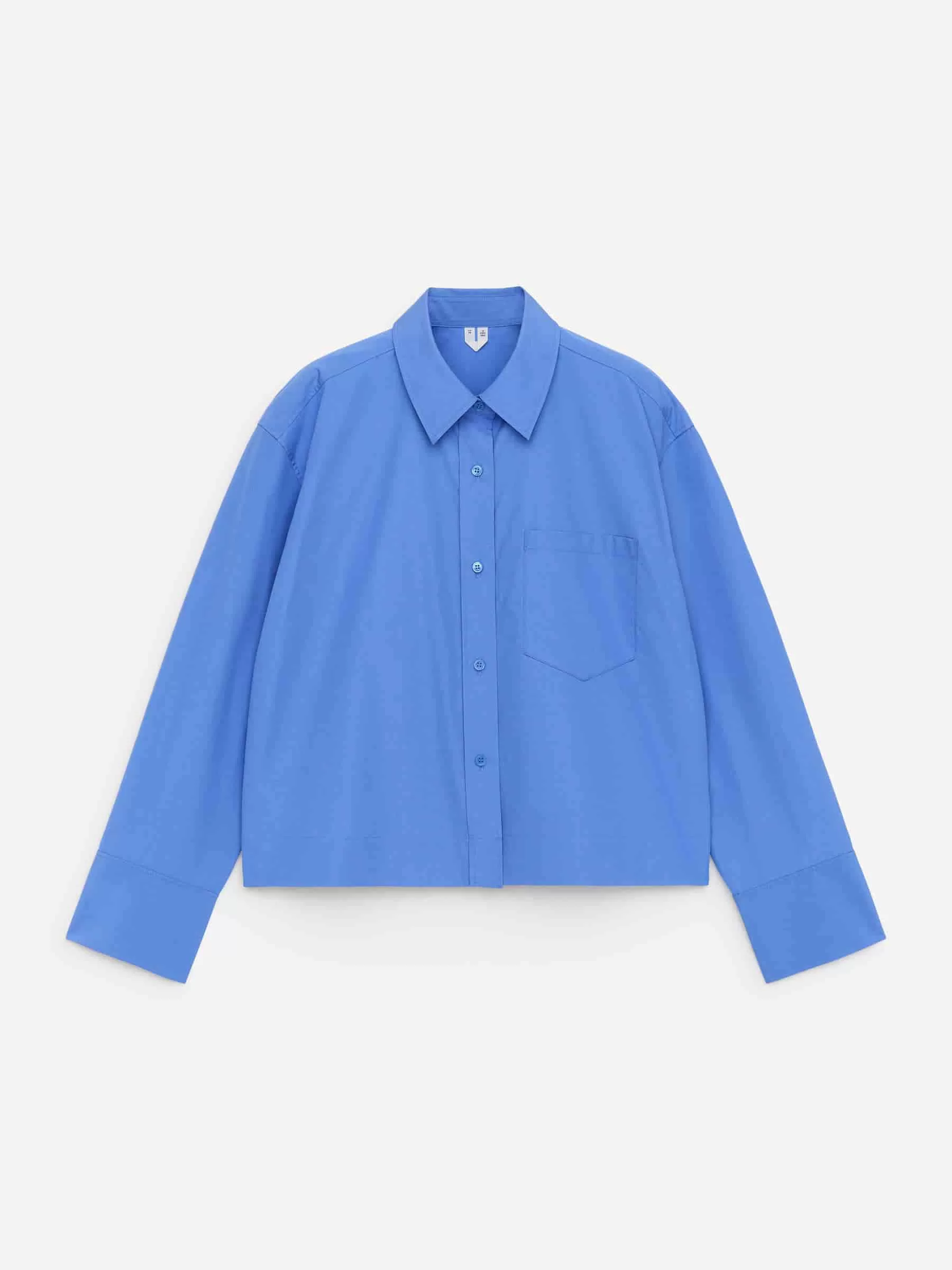 ARKE Damen Kurz geschnittenes Baumwollhemd Blau