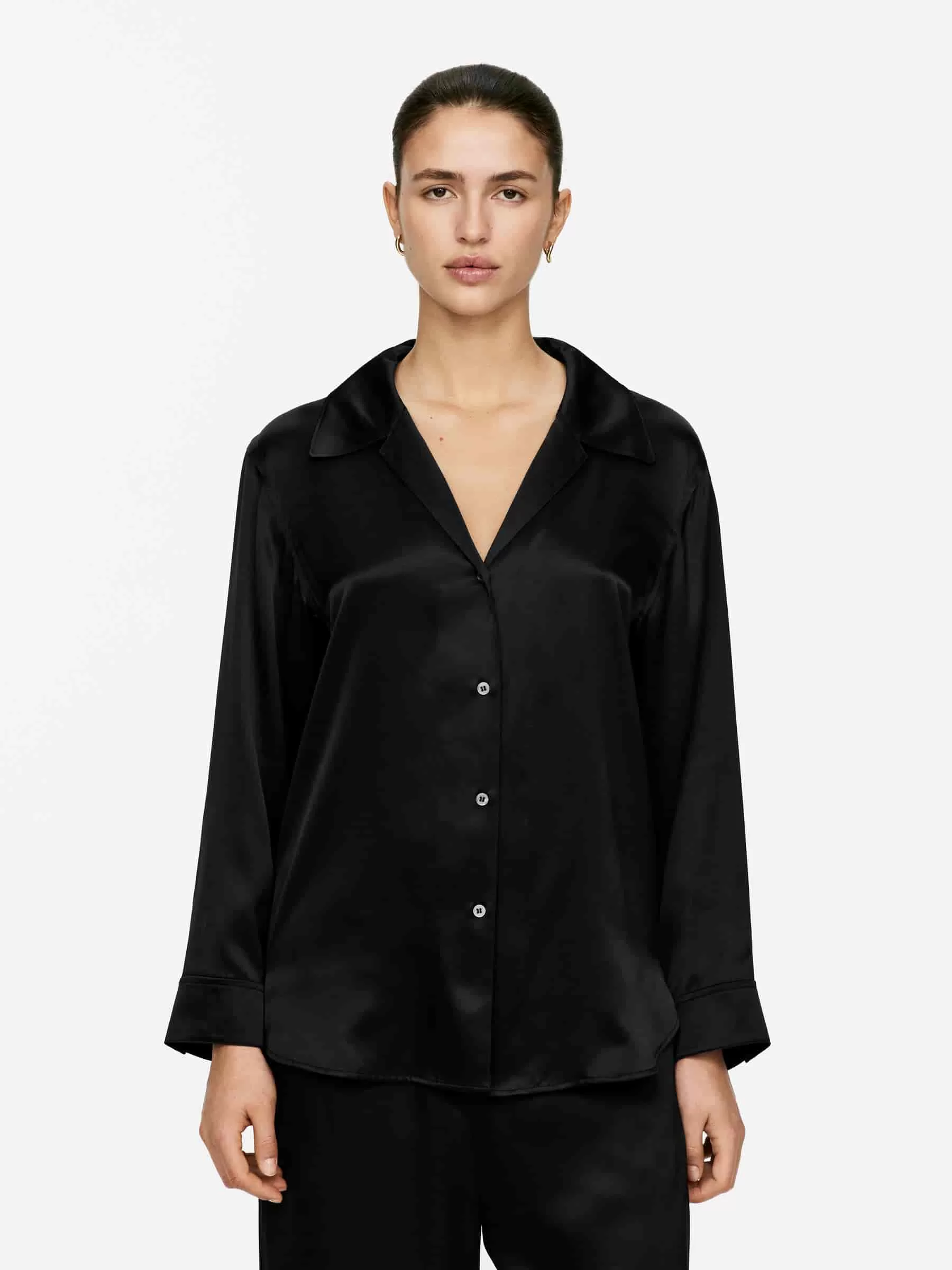 ARKE Damen Lässiges Seidenhemd Schwarz