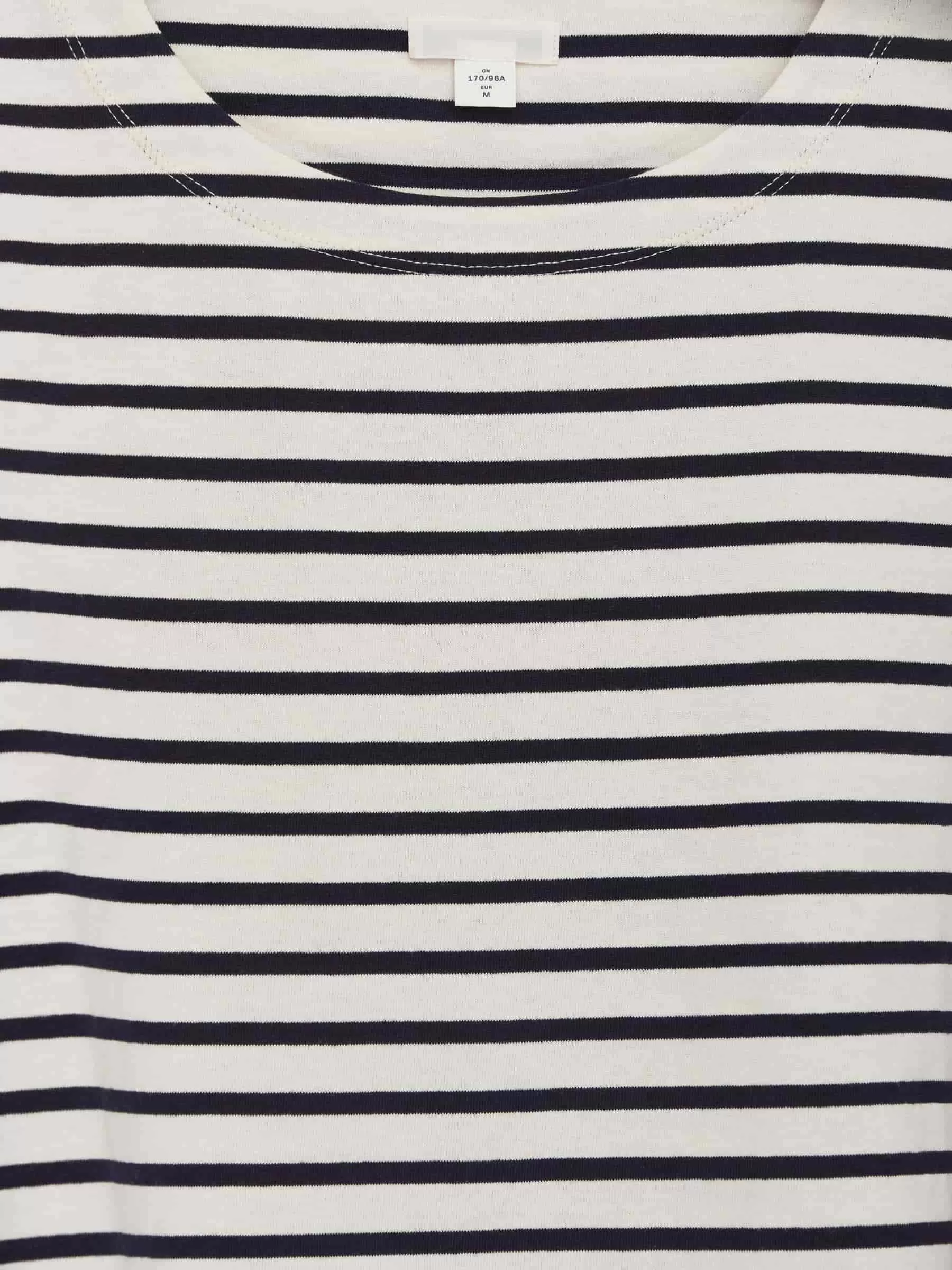 Langärmliges T-Shirt aus weichem, garngefärbtem Baumwolljersey. Entworfen mit überschnittenen Schultern und einem belüfteten unteren Saum.