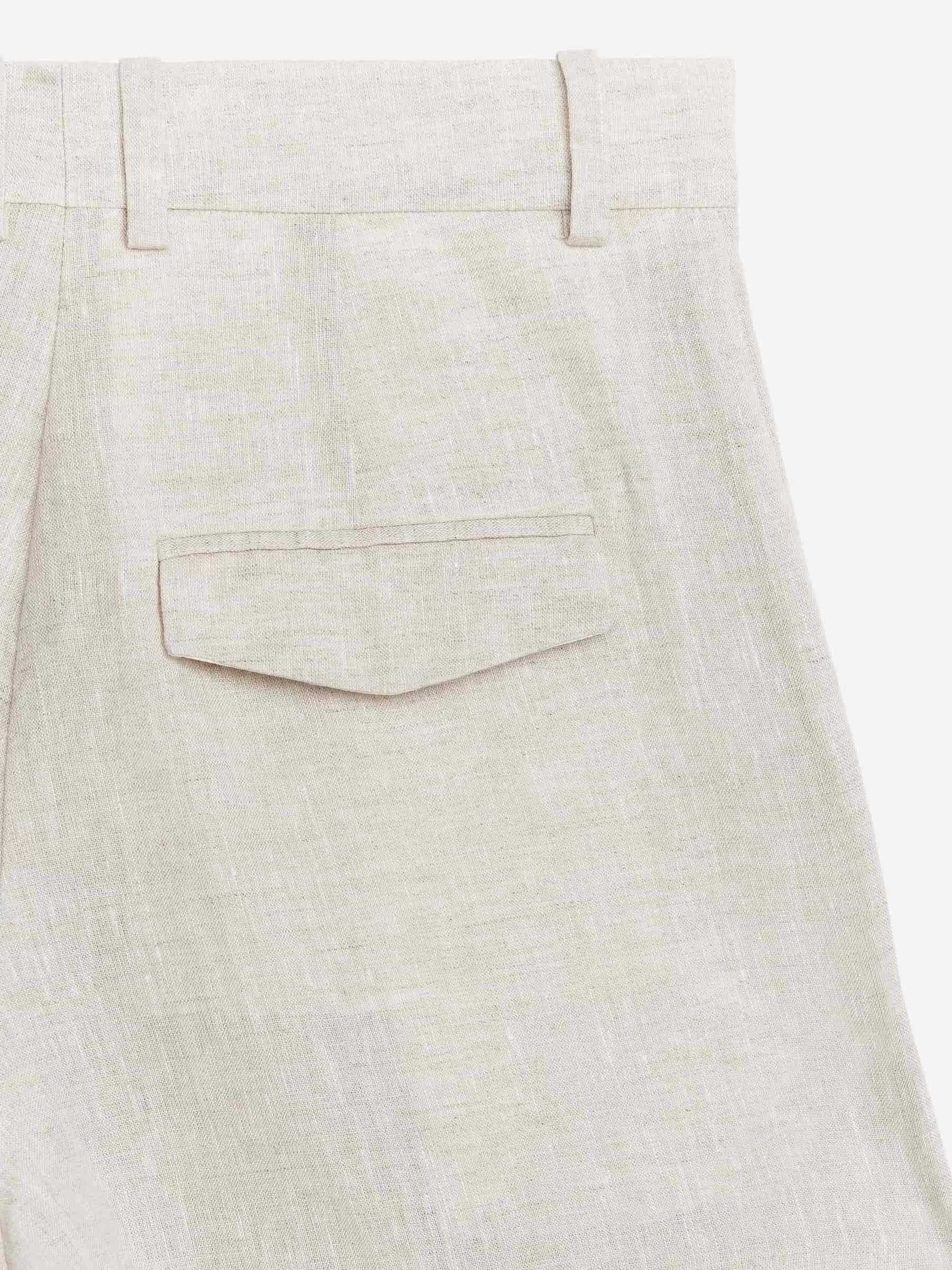 Diese lange Hose mit mittlerer Taille ist aus reinem Leinen gewebt. Eine gerade Passform mit Bügelfalten und Falten vorne, die dem Stil einen anmutigen Fall verleihen.