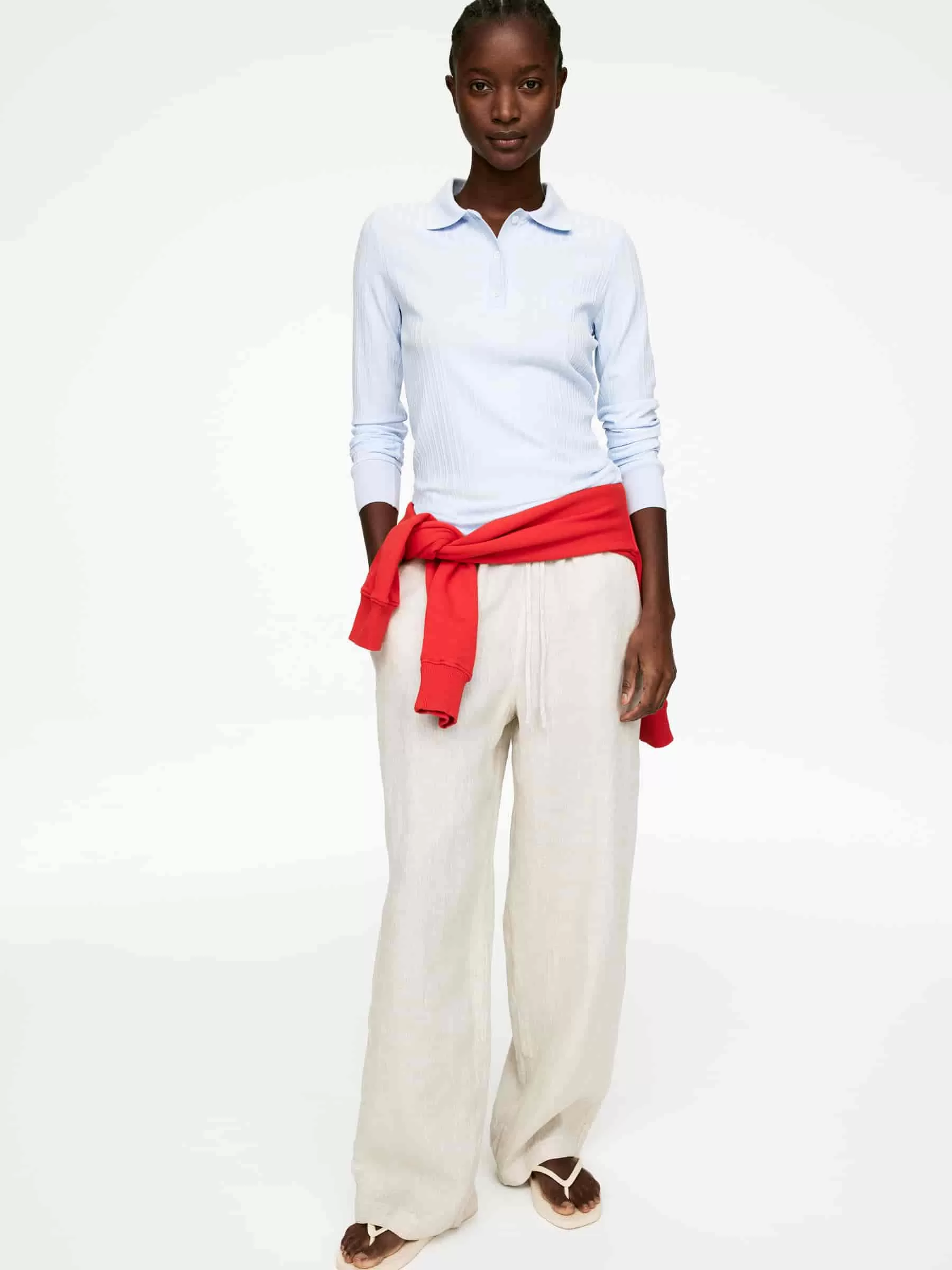 Diese Hose zum Hineinschlüpfen mit geradem, durchgehendem Bein ist aus Leinen gewebt und sorgt für luftigen Tragekomfort.
