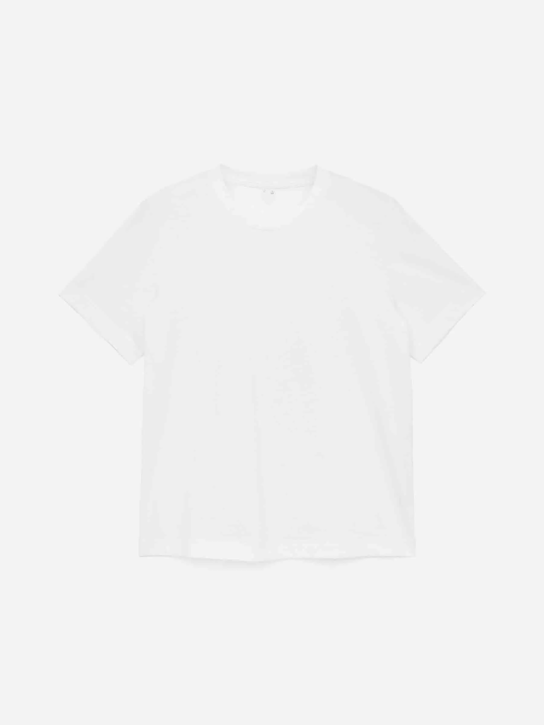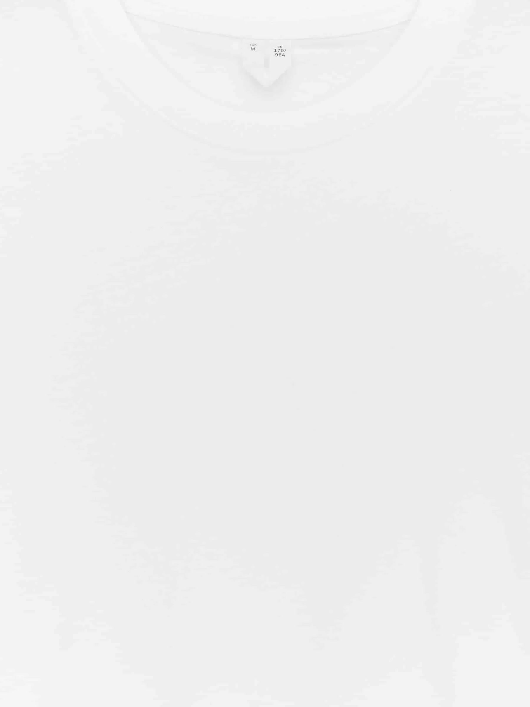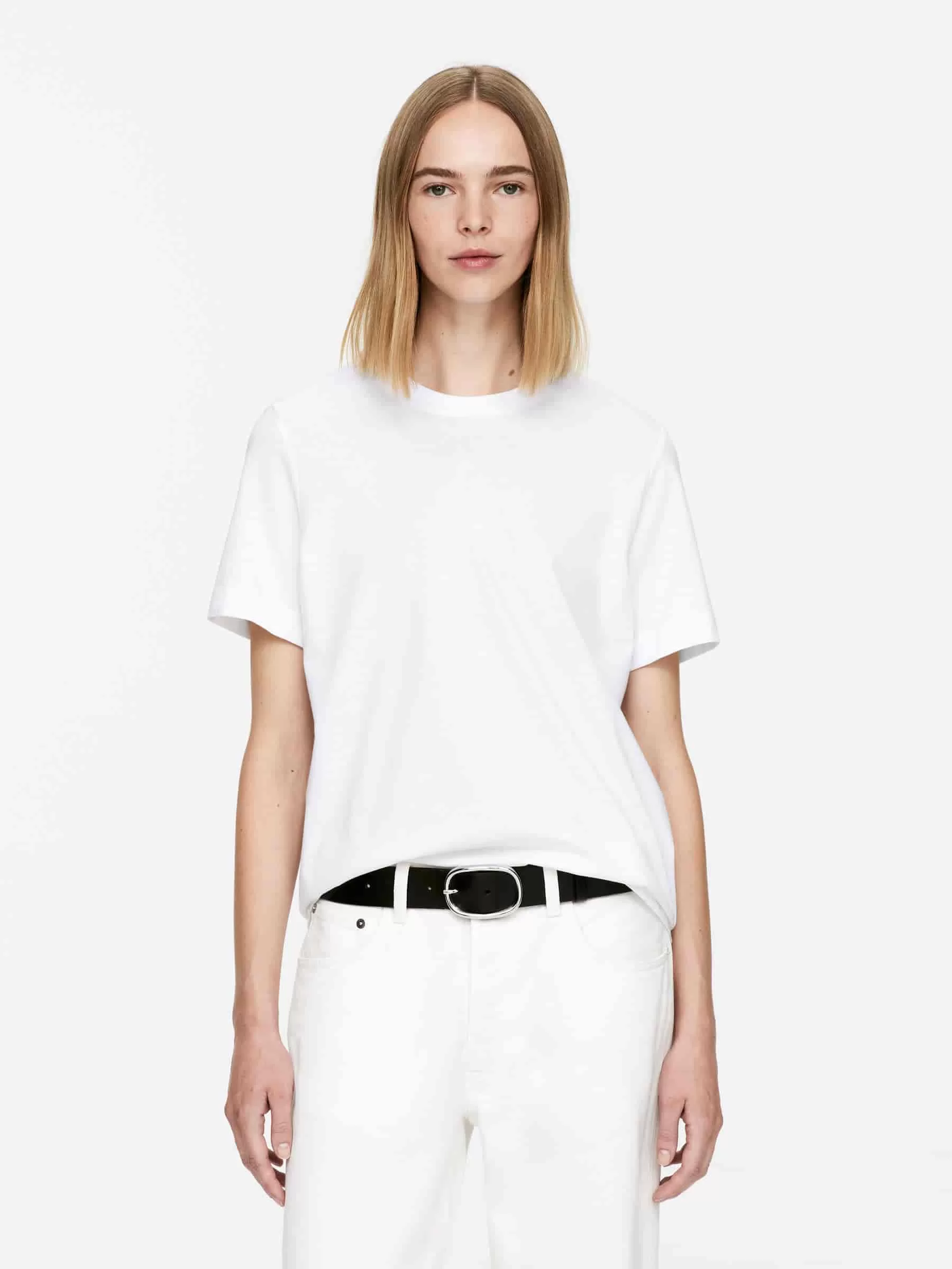T-Shirt aus glatter, kompakter langstapeliger Baumwolle gestrickt. Entworfen mit einer regulären Passform aus Single-Jersey mit einer gerippten Paspelierung um den Rundhalsausschnitt.