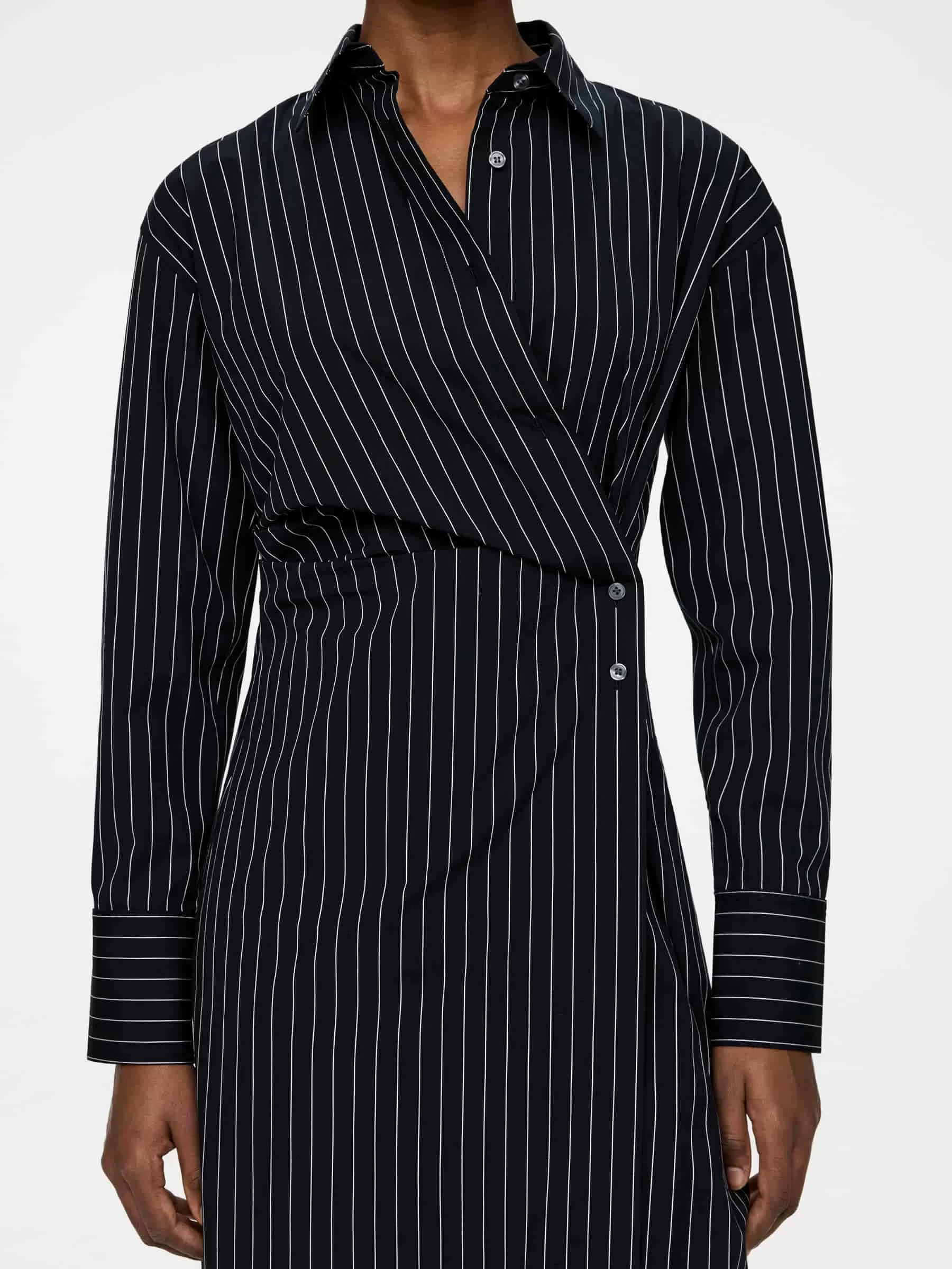 Wickelkleid aus Baumwolle mit einem Hauch Elastan für Dehnbarkeit. Ein mittellanges Modell mit Schlitz an den Seiten und Knopfverschluss. Normale Passform.