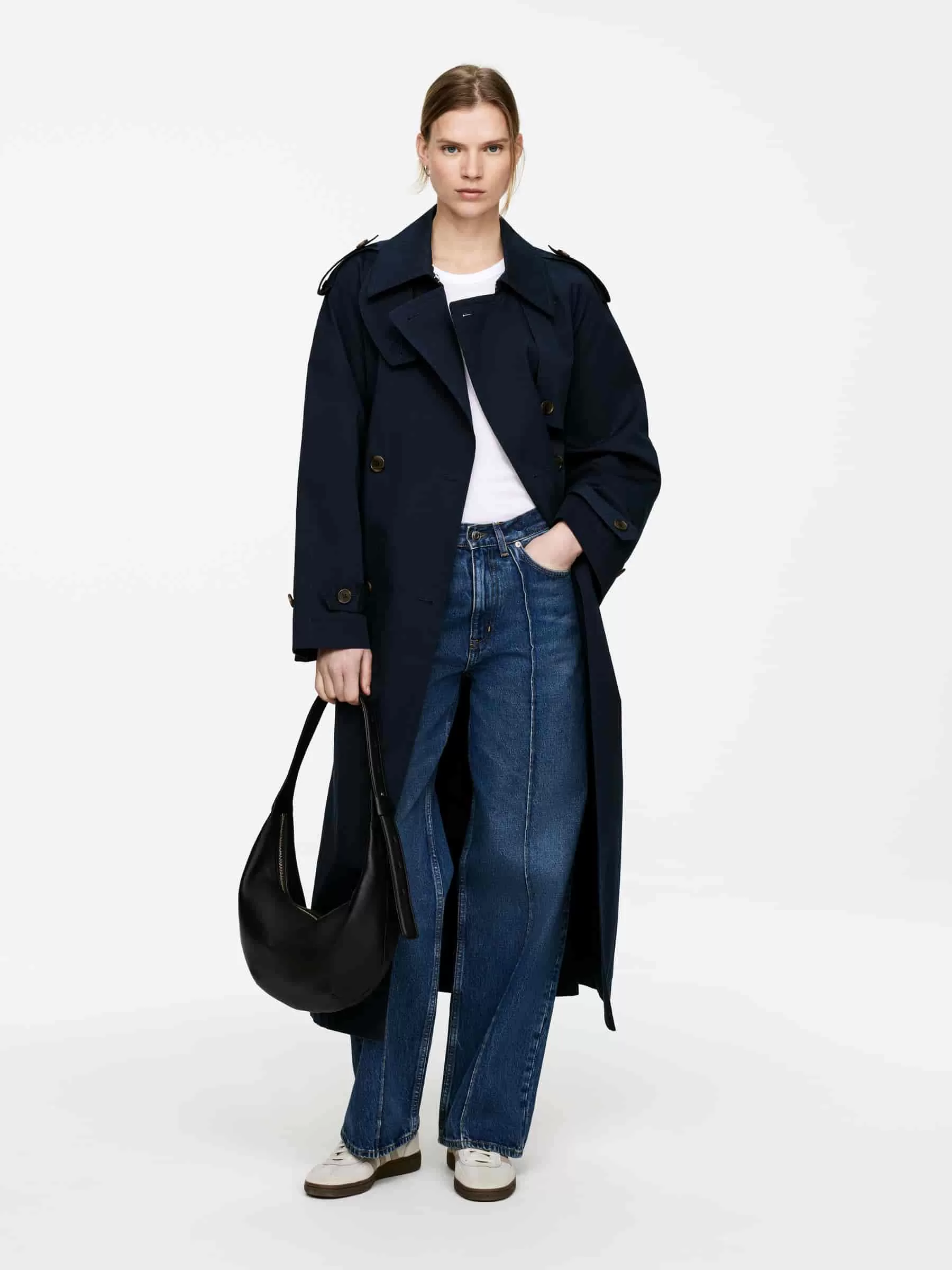 Mittelgroße Tasche mit geschwungenem Design. Eine vielseitige Tasche, die über der Schulter oder als Umhängetasche getragen werden kann. Verstellbarer Schultergurt. Abmessungen 34 cm x 22 cm.