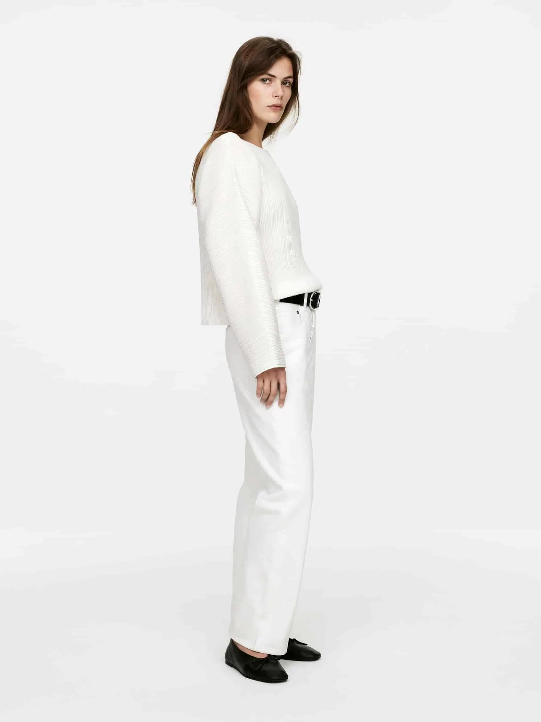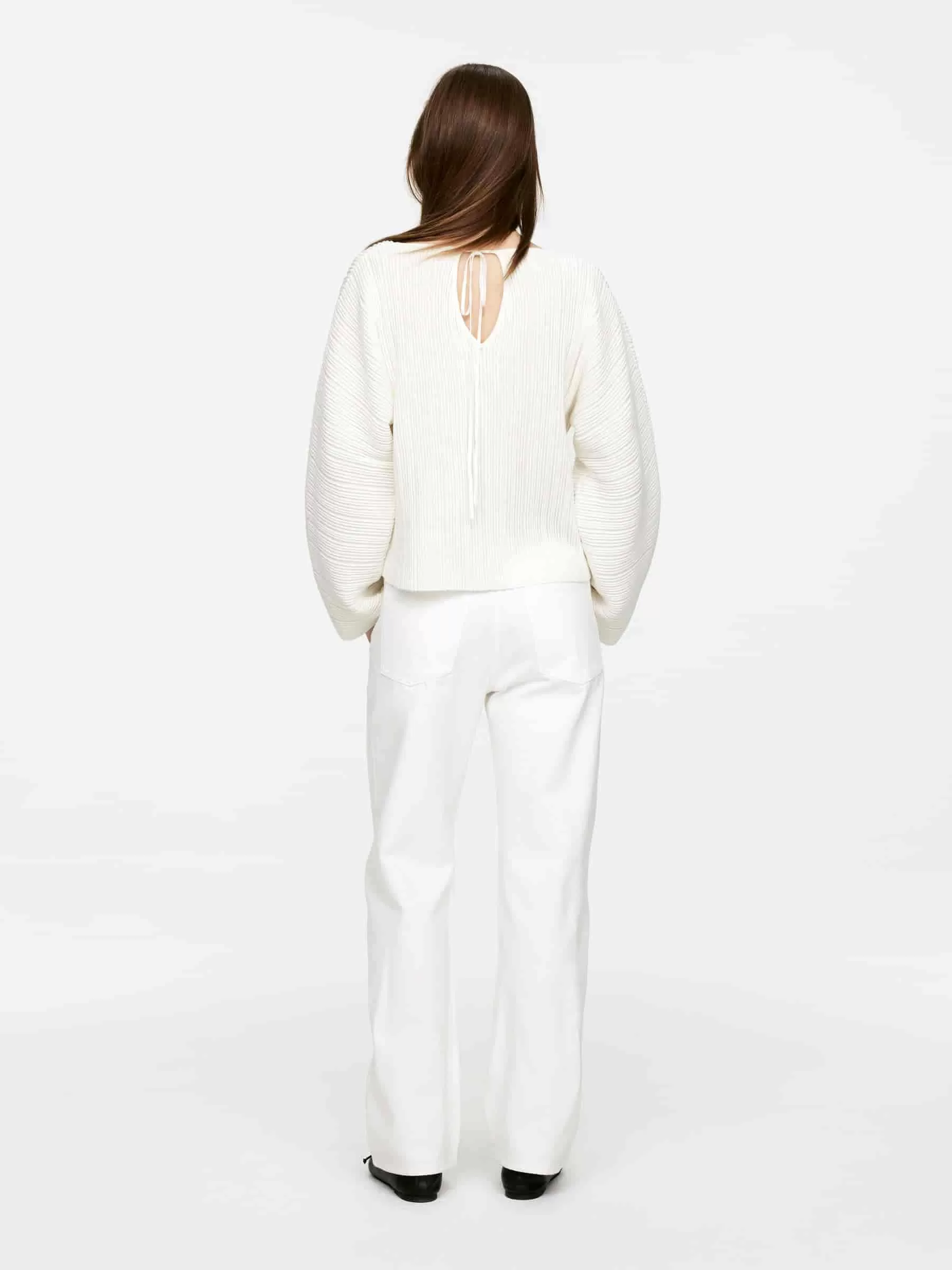 Stricktop aus Baumwolle mit Rippstruktur. Ein locker sitzender Stil mit Bindeband am Hals.