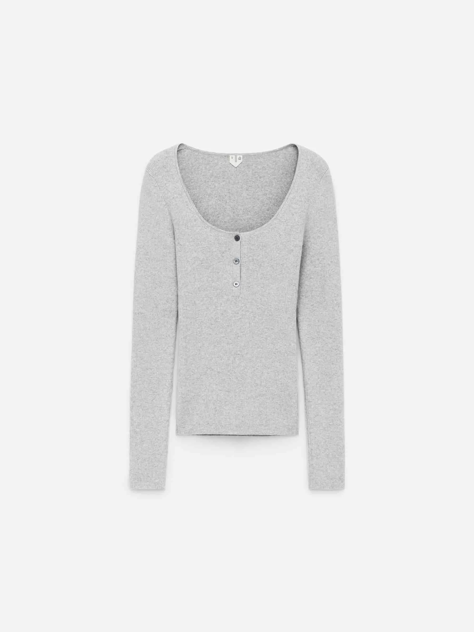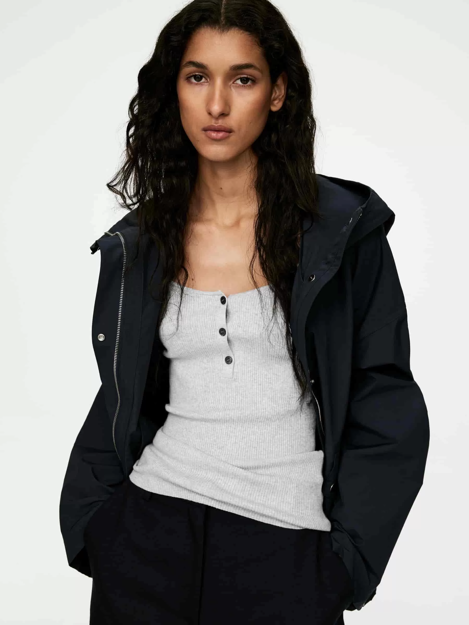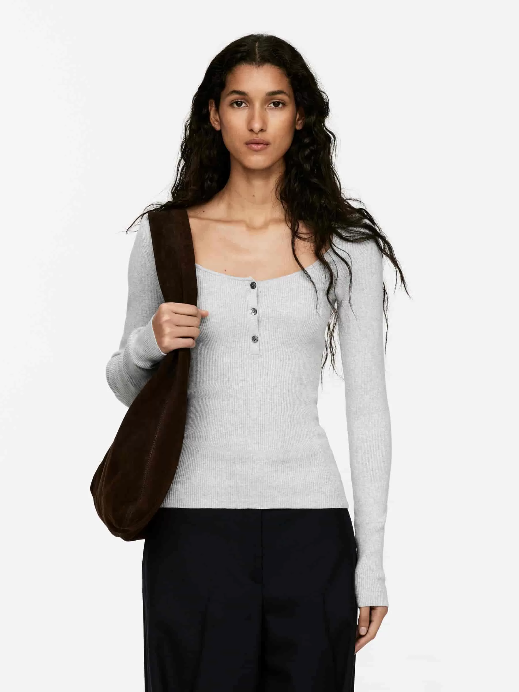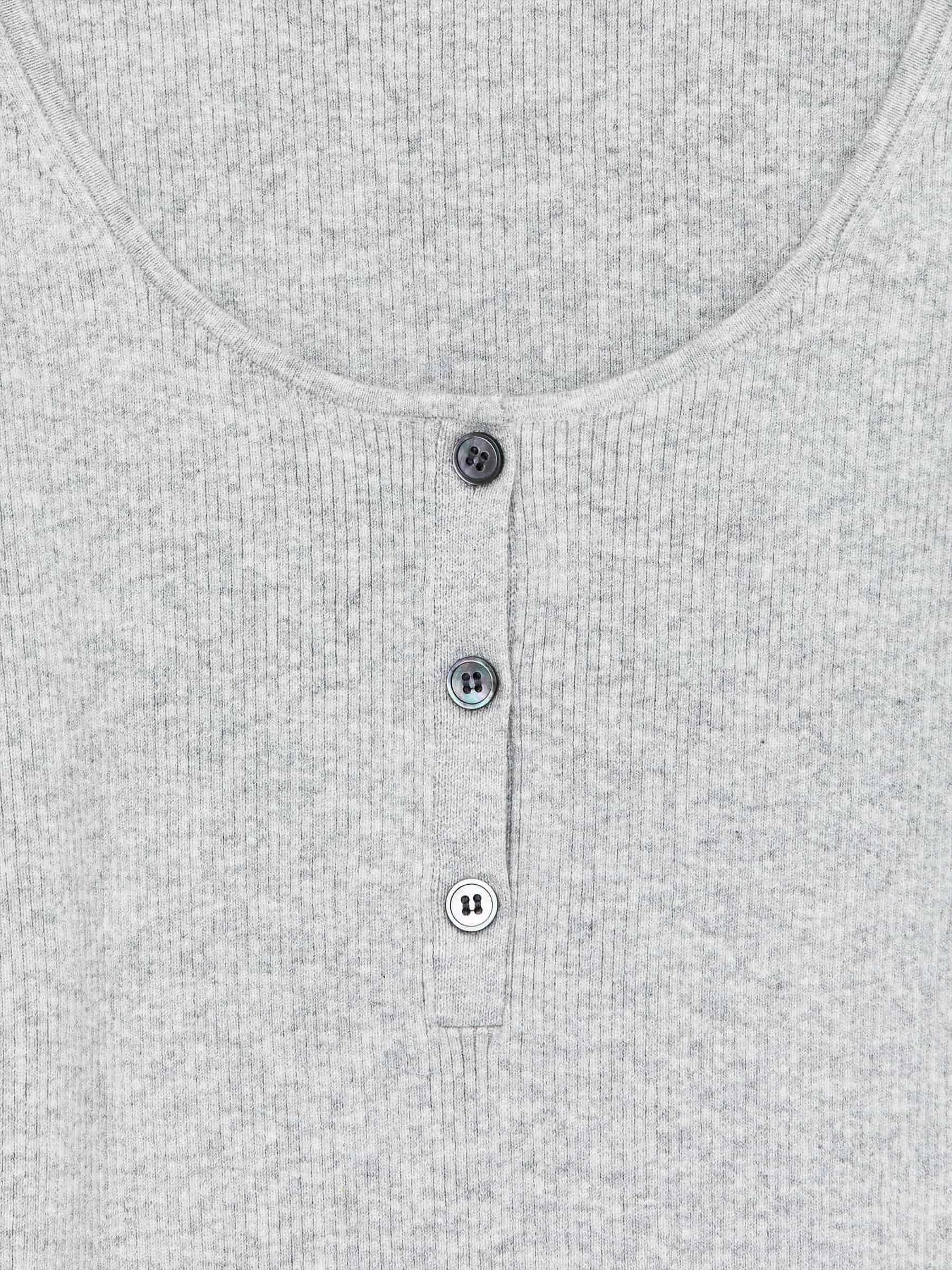 Top aus Rippstrick mit Ballerina-Ausschnitt und Knopfverschluss. Schlanke Passform.