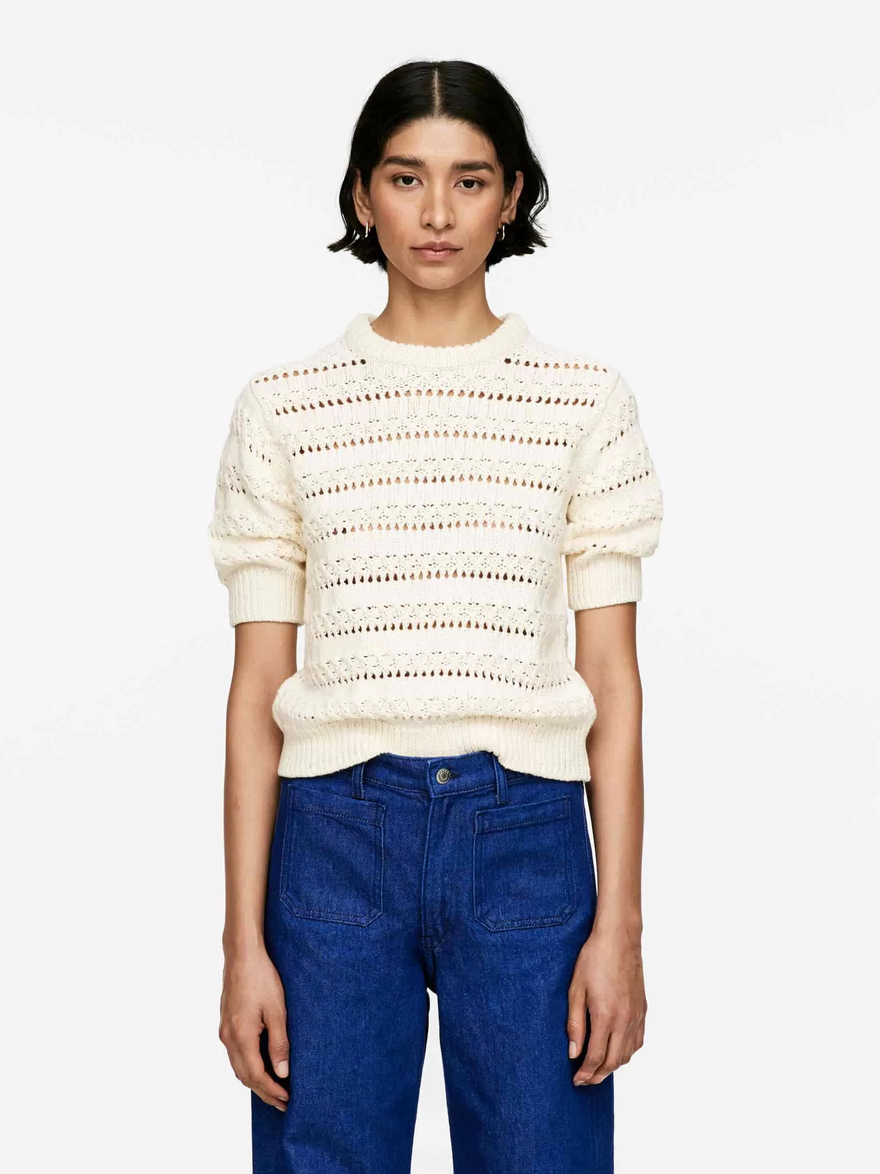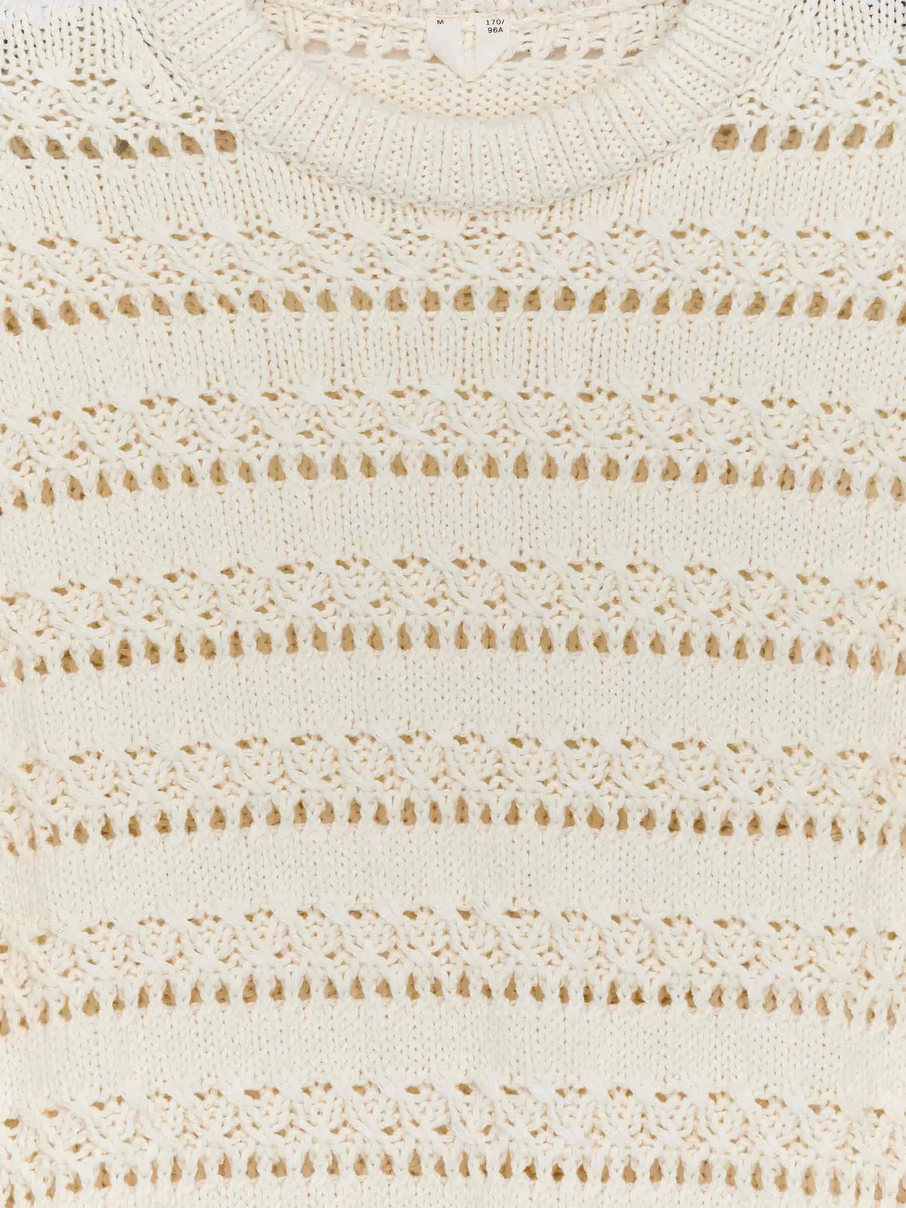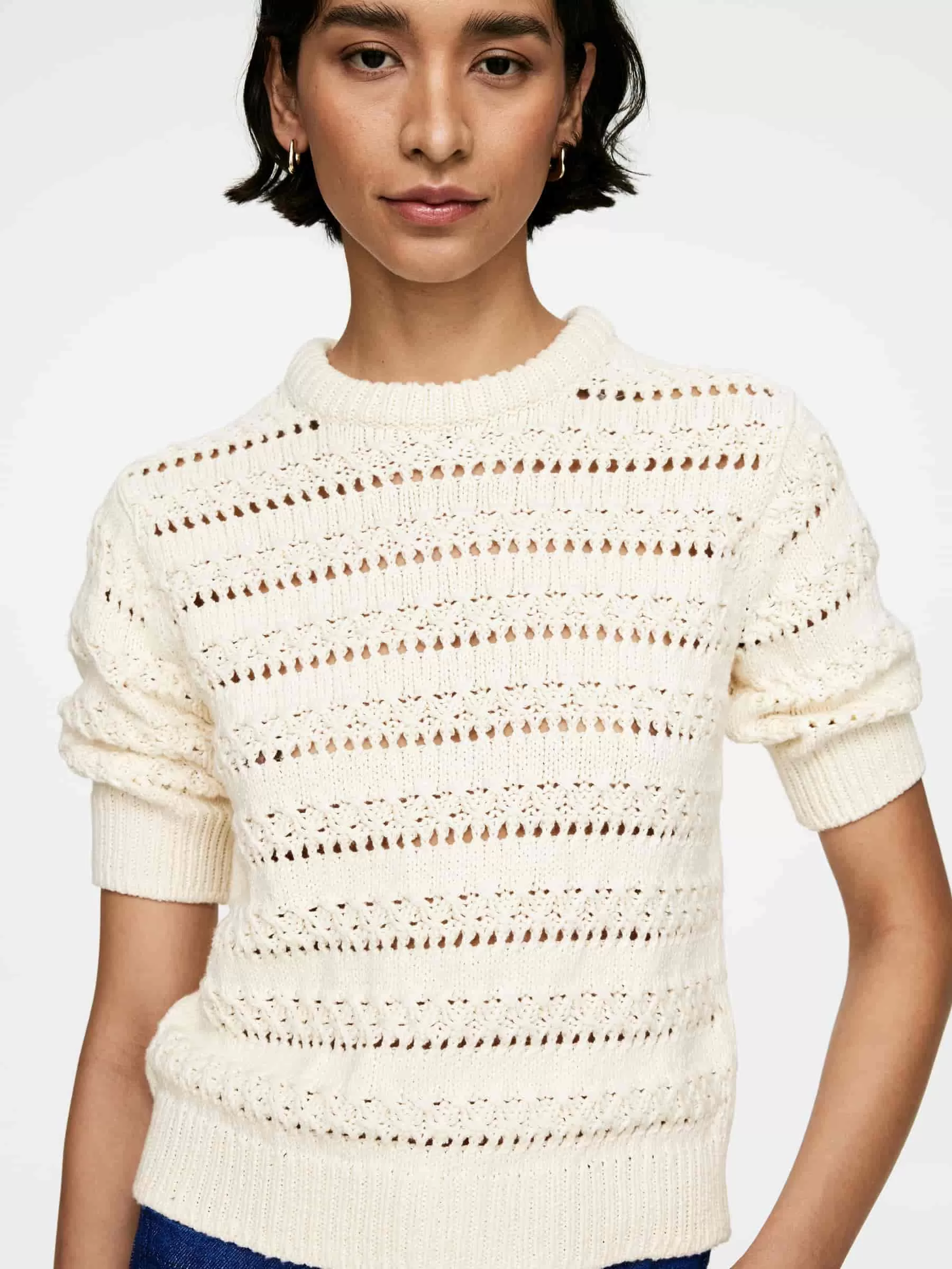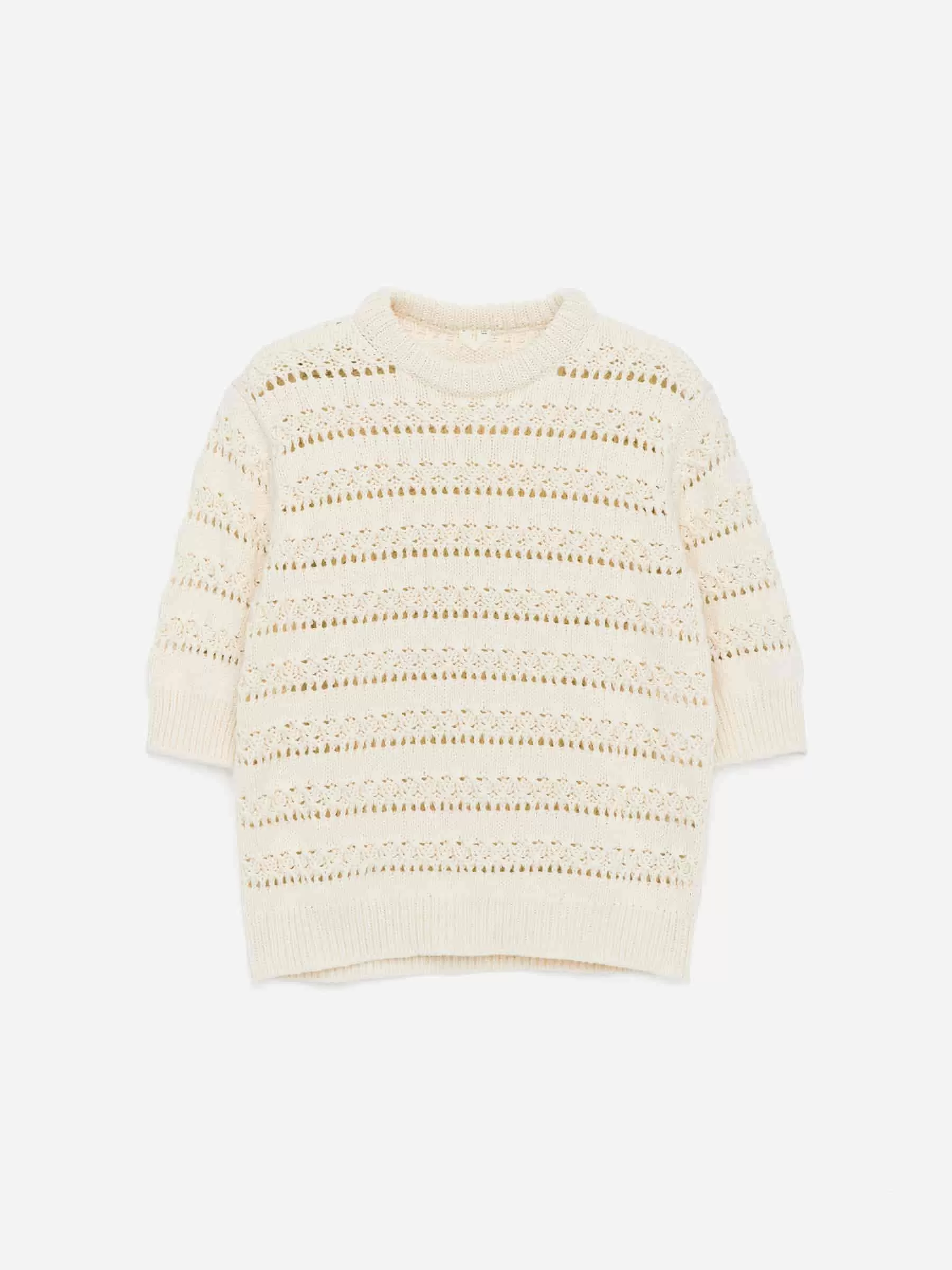 Kurzärmliges Oberteil aus Baumwolle mit Lochstrickdetails. Normale Passform.