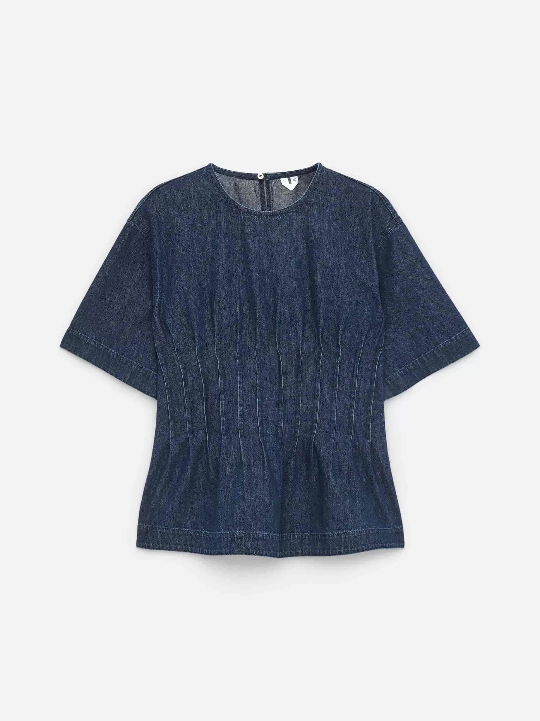 ARKE Damen Plissiertes Denim-Top Dunkelblau