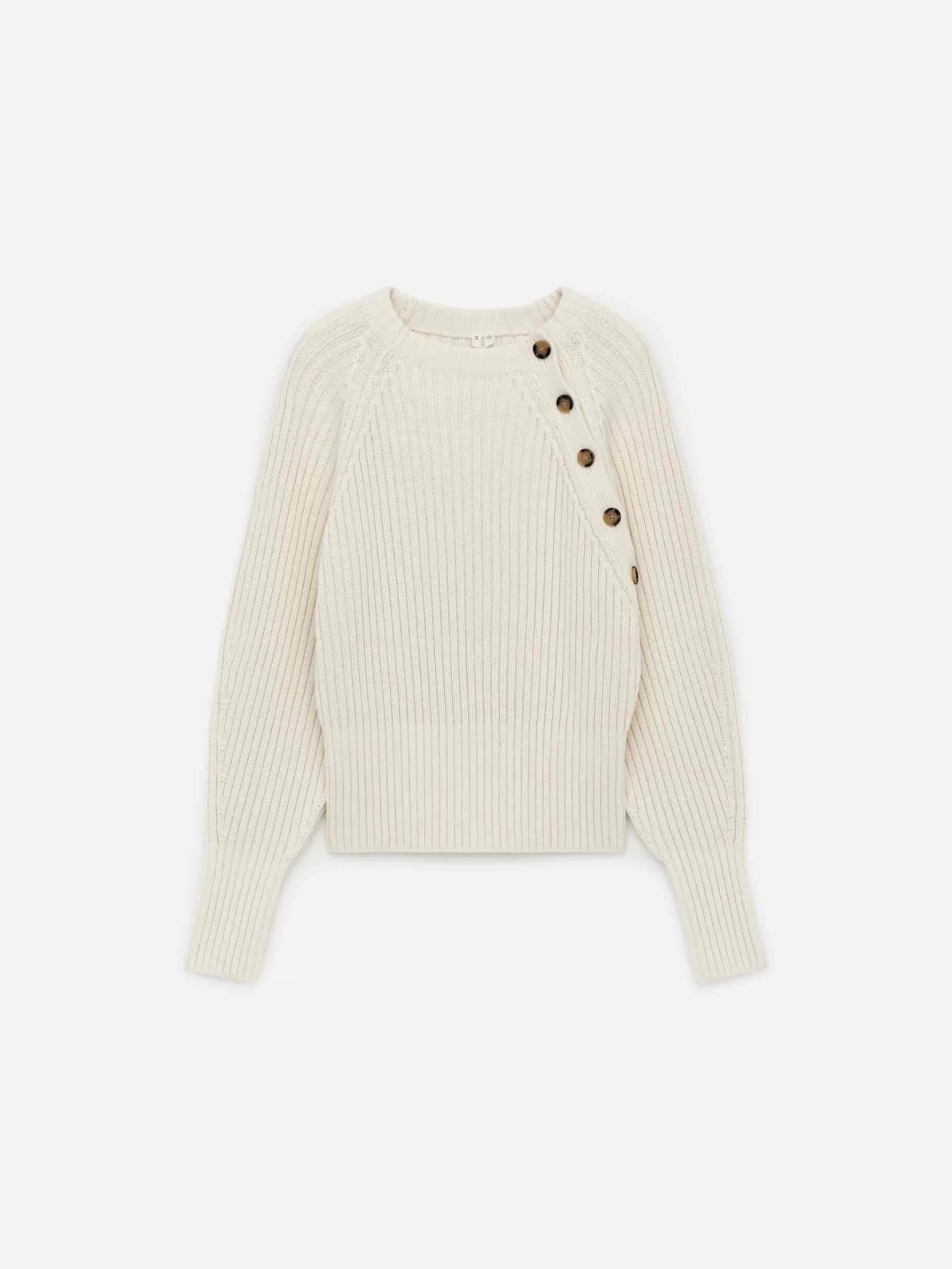 Strickpullover aus einer Mischung aus Baumwolle und Wolle. Mit Raglanärmeln und Knöpfen auf der linken Seite. Der Pullover enthält 25 % RWS-Wolle (TE-00047206). Produkte, die nach dem Responsible Wool Standard (RWS) zertifiziert sind, enthalten Wollfasern von Farmen, die unabhängig nach Tierschutz- und Landbewirtschaftungsanforderungen zertifiziert sind.