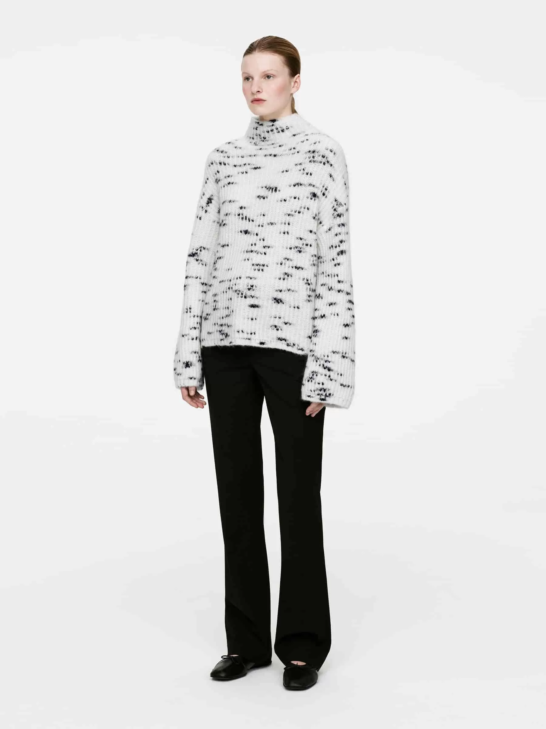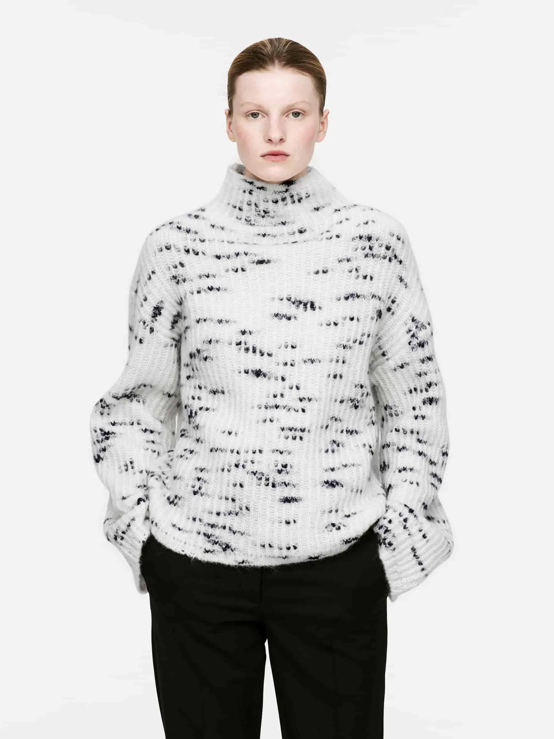 Pullover mit Stehkragen aus einer Mischung aus Mohair und Wolle. Ein langärmliges Modell mit entspannter Passform. Dieser Pullover enthält 40 % RMS-Mohair und 40 % RWS-Wolle (TE-00047206). Produkte, die nach dem Responsible Wool Standard (RWS) und dem Responsible Mohair Standard (RMS) zertifiziert sind, enthalten Wolle und Mohairfasern von Farmen, die unabhängig nach Tierschutz- und Landbewirtschaftungsanforderungen zertifiziert sind.