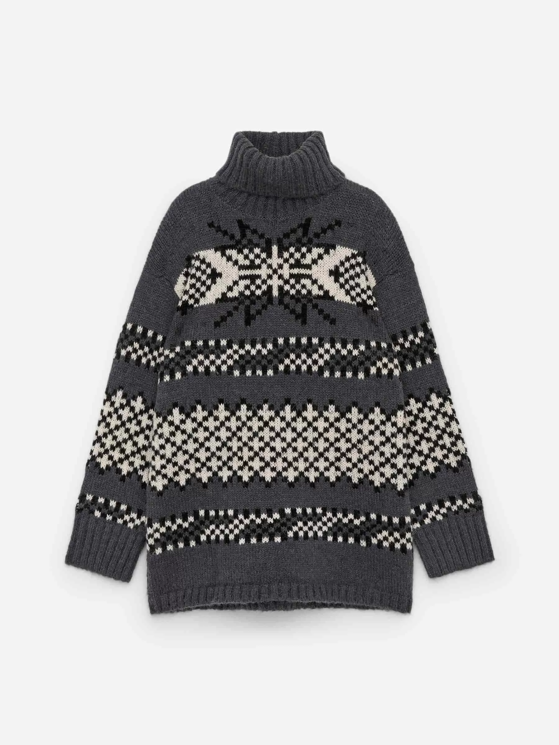 ARKE Damen Pullover aus Woll-Alpaka-Jacquard Grau