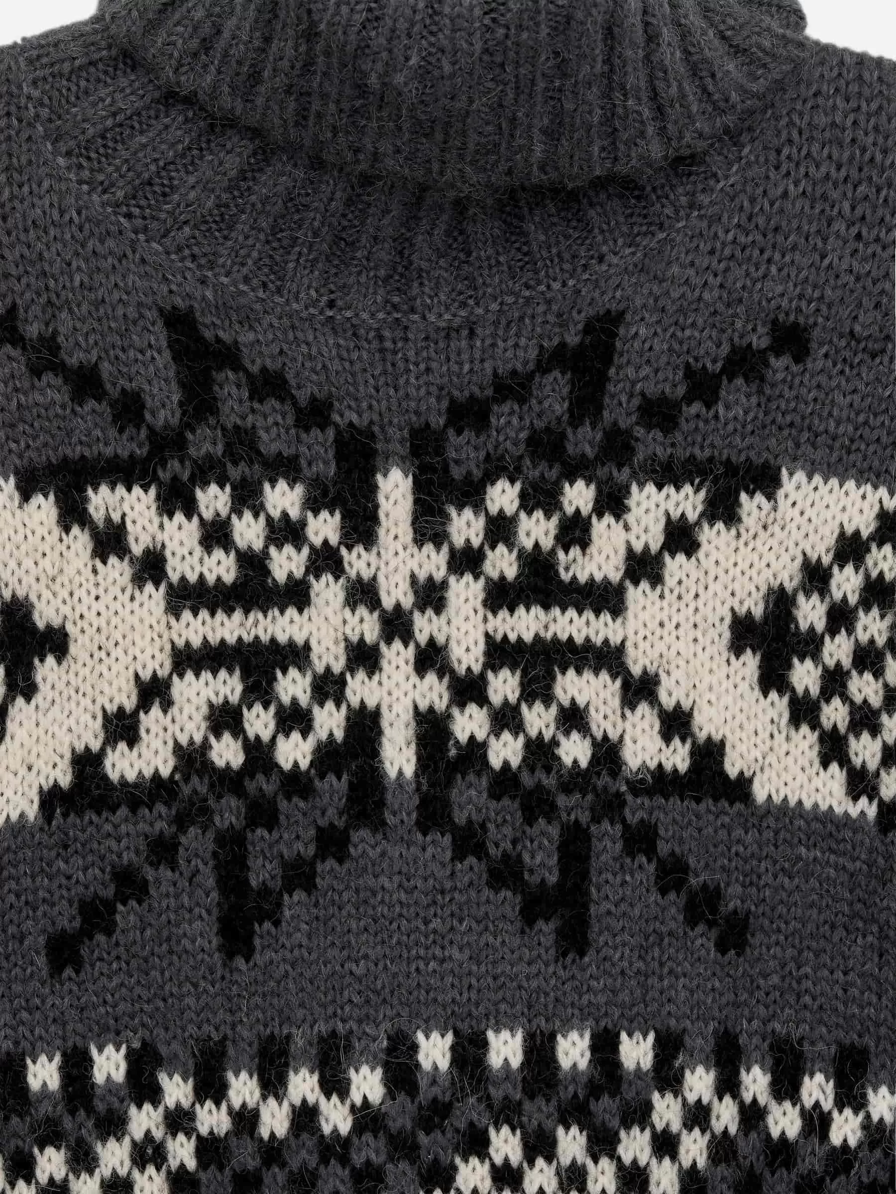 Jacquard-Strickpullover aus einer Mischung aus Wolle und Alpaka. Mit Rollkragen und gerippten Abschlüssen. Entspannte Passform. Dieser Stil besteht aus 44 % RAS-Alpaka und 56 % RWS-Wolle (TE-00047206). Produkte, die nach dem Responsible Wool Standard (RWS) und dem Responsible Alpaca Standard (RAS) zertifiziert sind, enthalten Wolle und Alpakafasern von Farmen, die unabhängig nach Tierschutz- und Landmanagementanforderungen zertifiziert sind.
