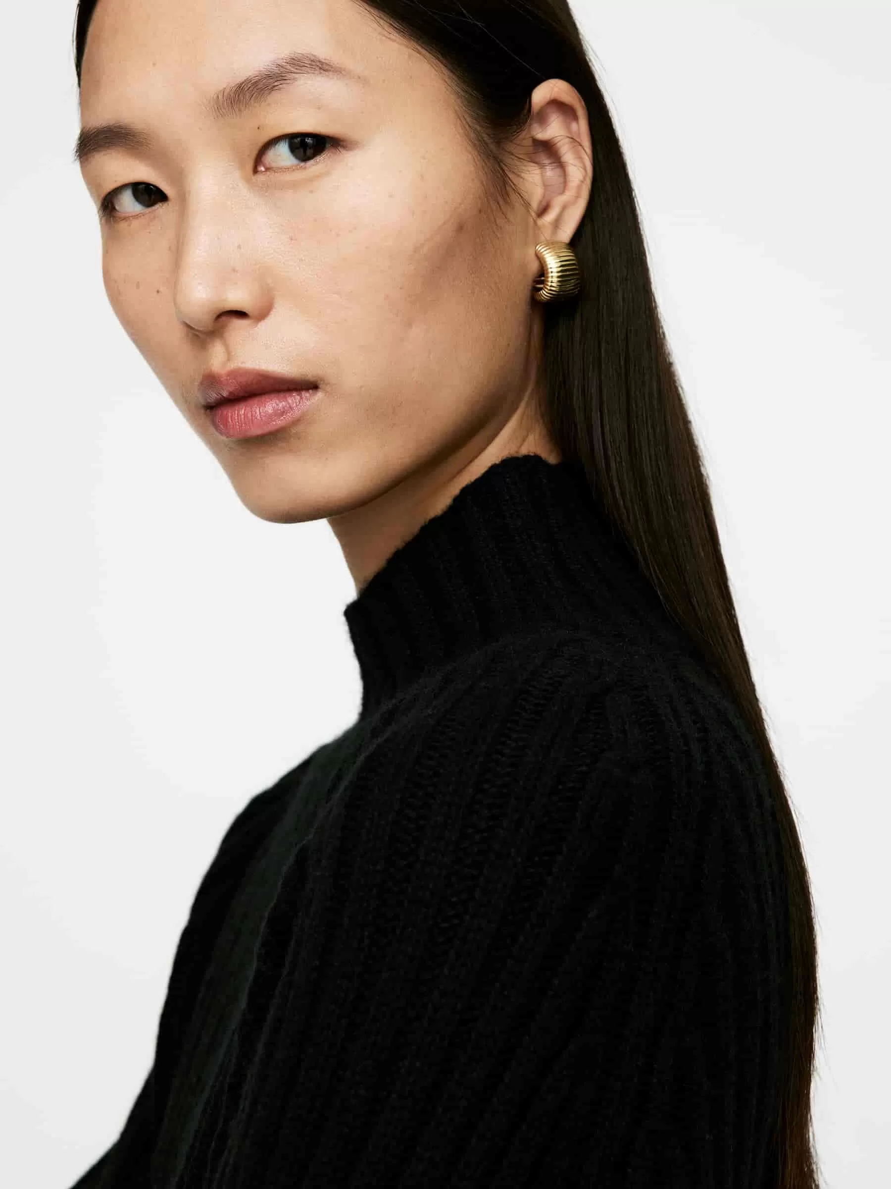 Pullover aus Wolle im Rippenstrick. Ein schmal geschnittener Stil mit hohem Halsausschnitt und langen Ärmeln. Der Pullover besteht aus 100 % RWS-Wolle (TE-00047206). Produkte, die nach dem Responsible Wool Standard (RWS) zertifiziert sind, enthalten Wollfasern von Farmen, die unabhängig nach Tierschutz- und Landbewirtschaftungsanforderungen zertifiziert sind.