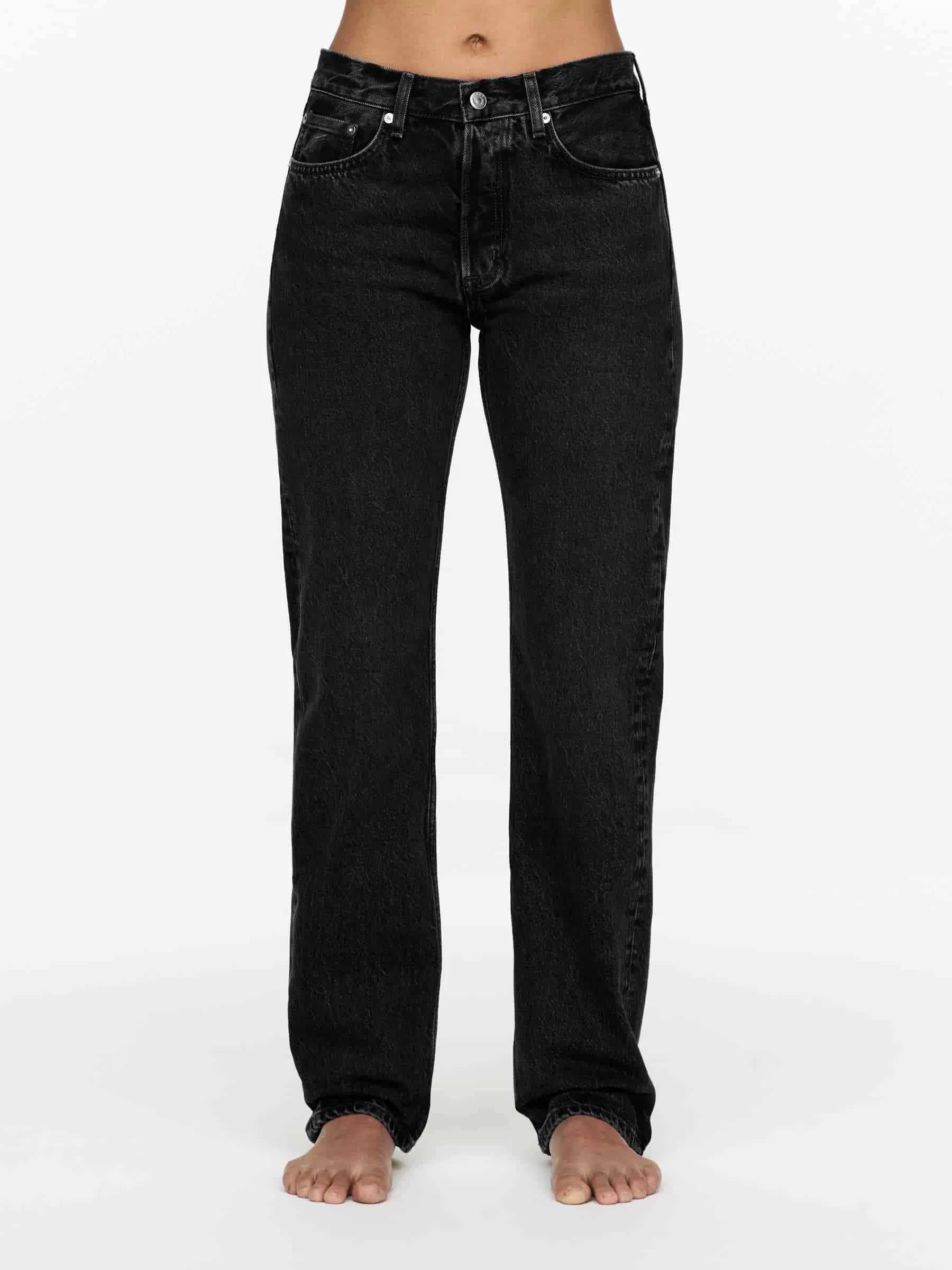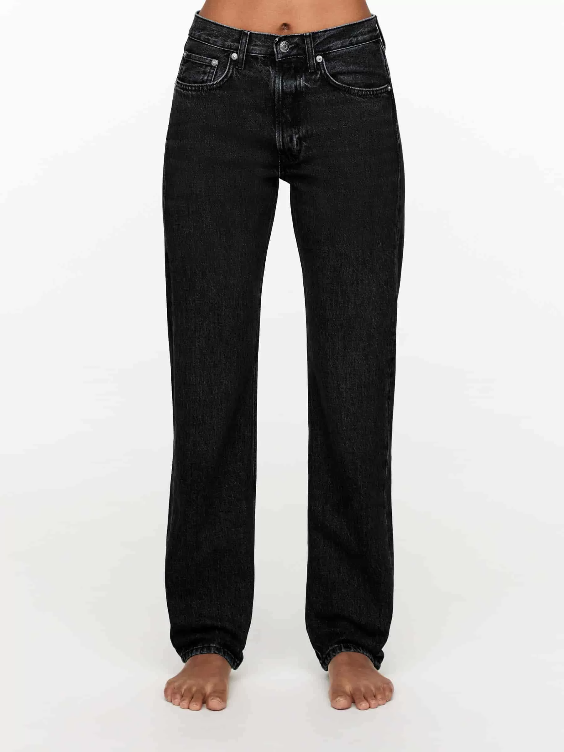SNOW ist aus nicht dehnbarem Denim gefertigt und hat eine mittelhohe Taille, eine schmale Passform und gerade Beine. Knopfleiste.