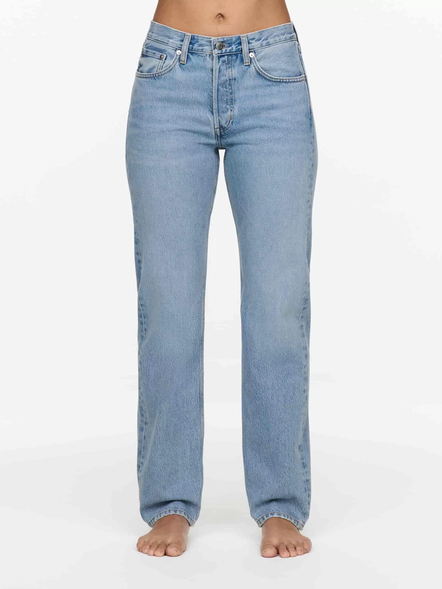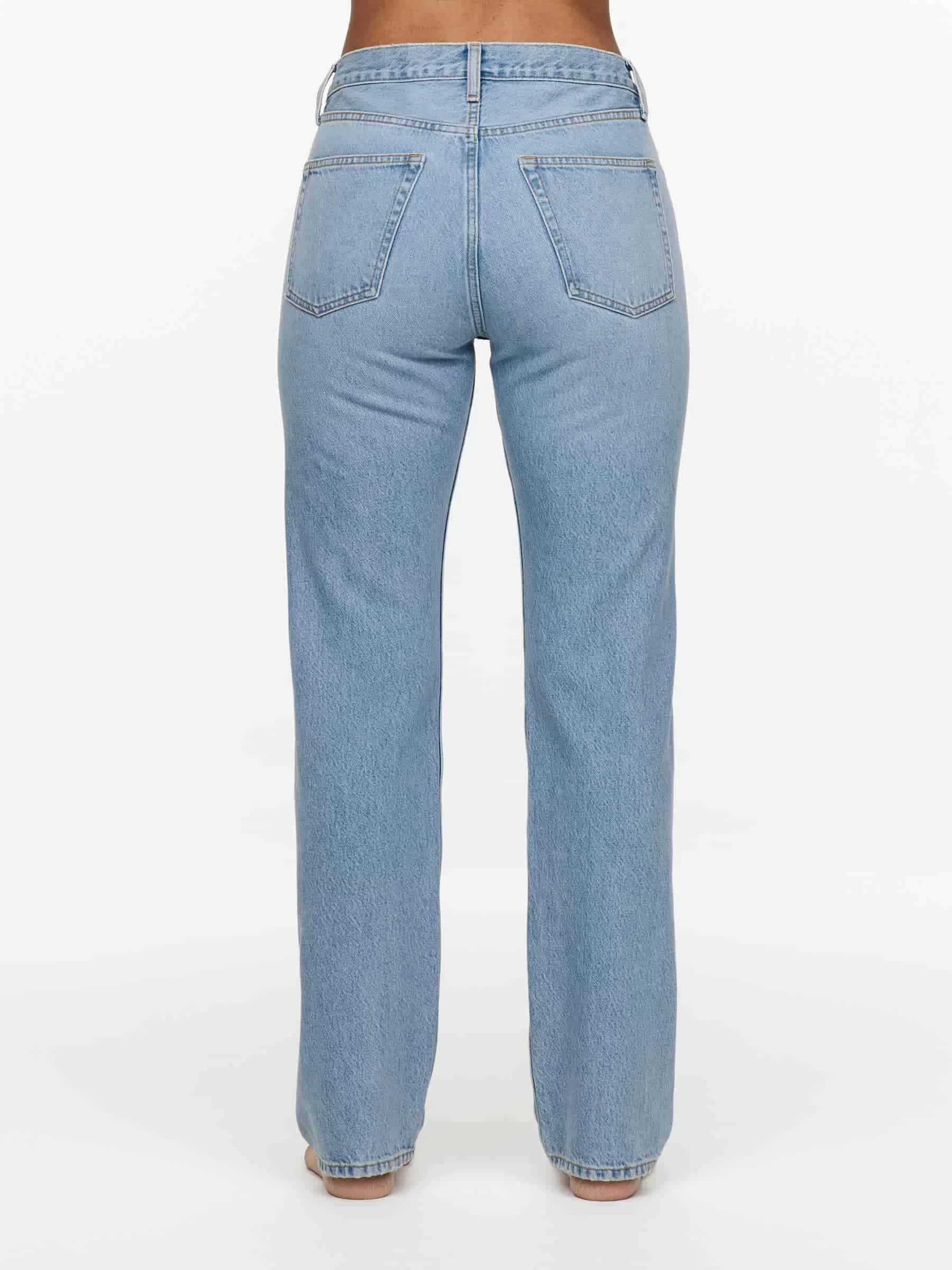 SNOW ist aus nicht dehnbarem Denim gefertigt und hat eine mittelhohe Taille, eine schmale Passform und gerade Beine. Knopfleiste.