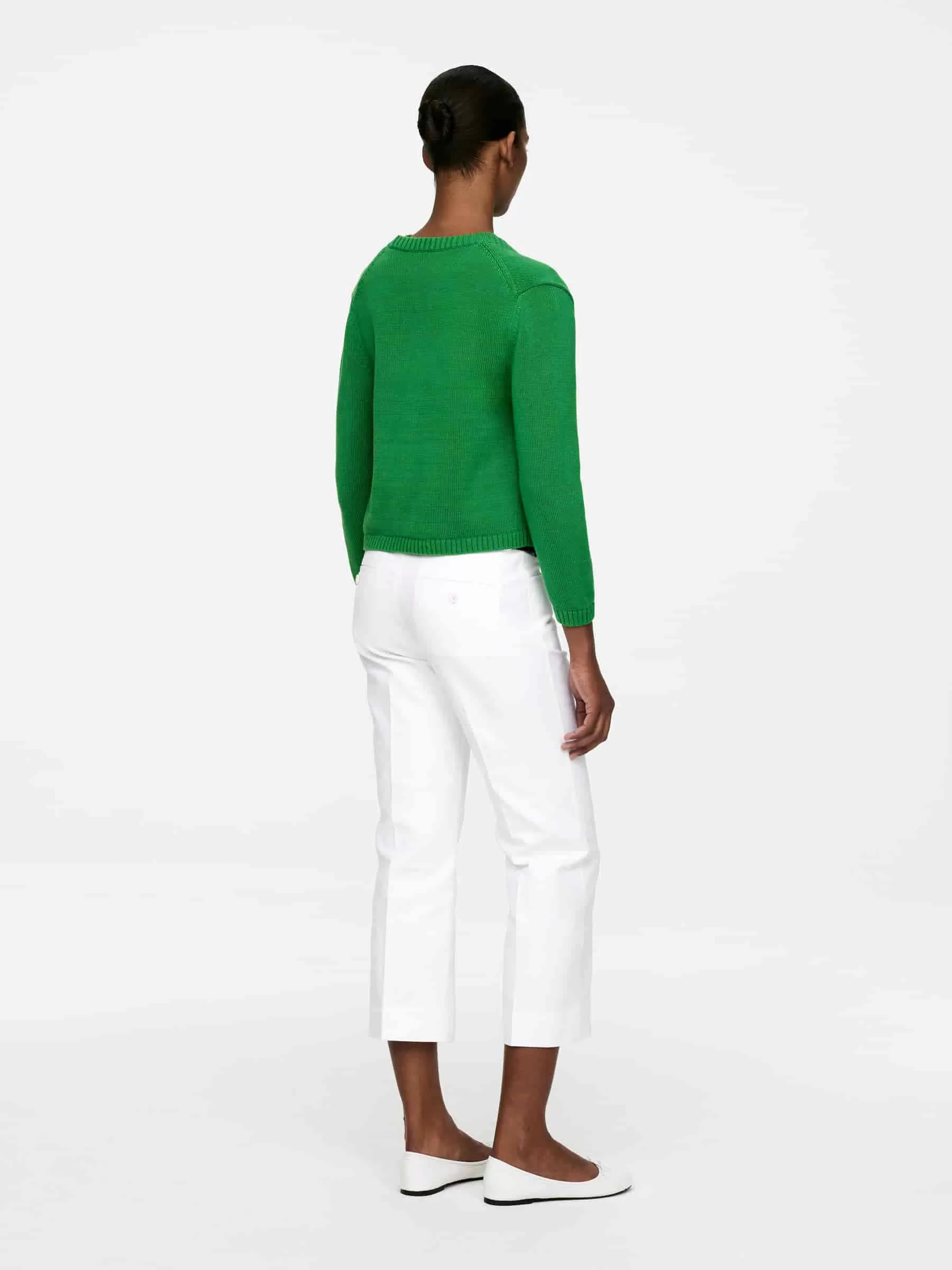 Strickjacke aus Baumwolle mit geschrumpfter Passform, gerippten Abschlüssen und Knopfverschluss.