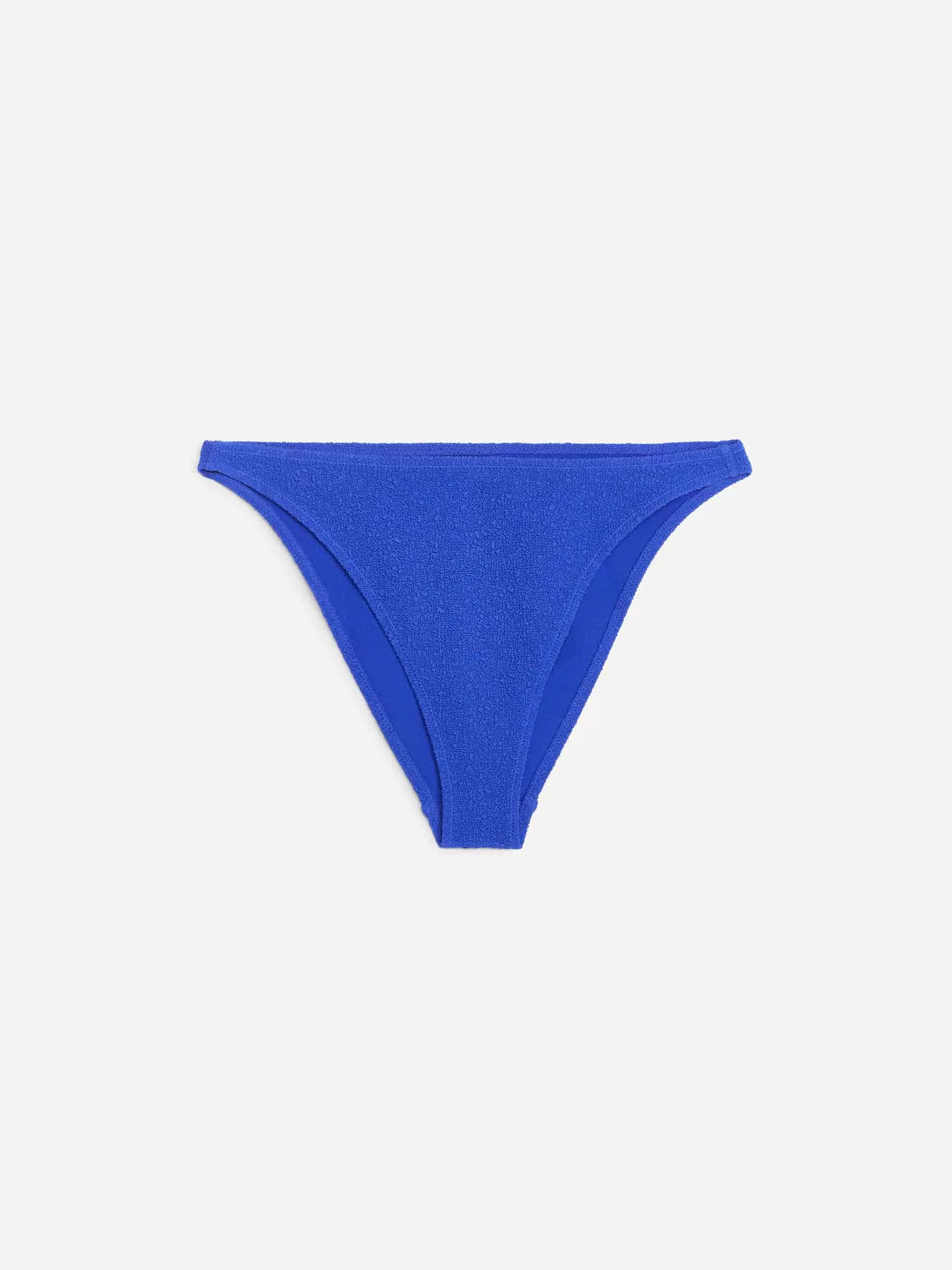 Bikini-Slip mit strukturierter, dehnbarer Textur. Dies ist ein von den 90ern inspirierter High-Waist-Stil mit hoher Beinöffnung. Vorne gefüttert.