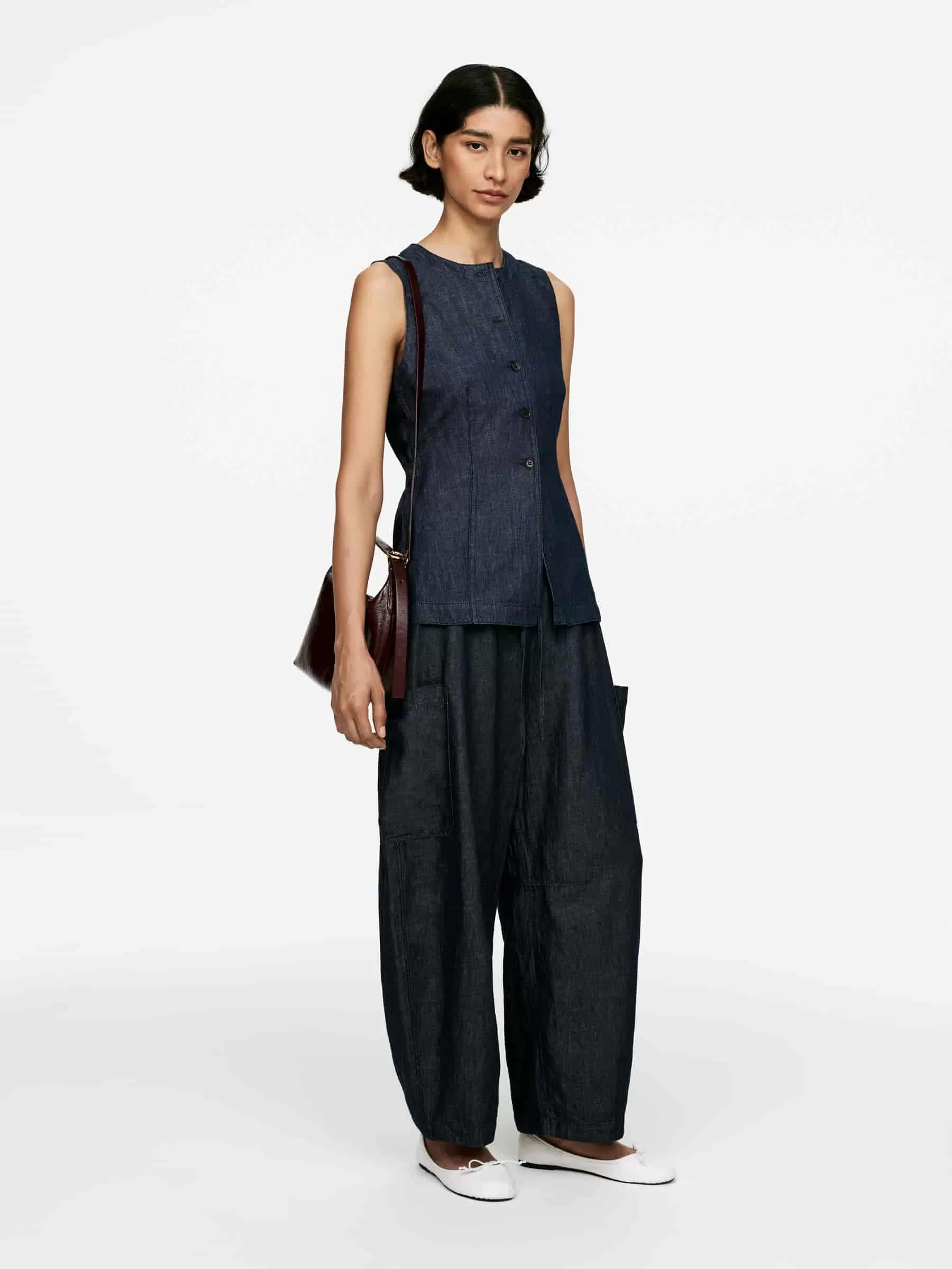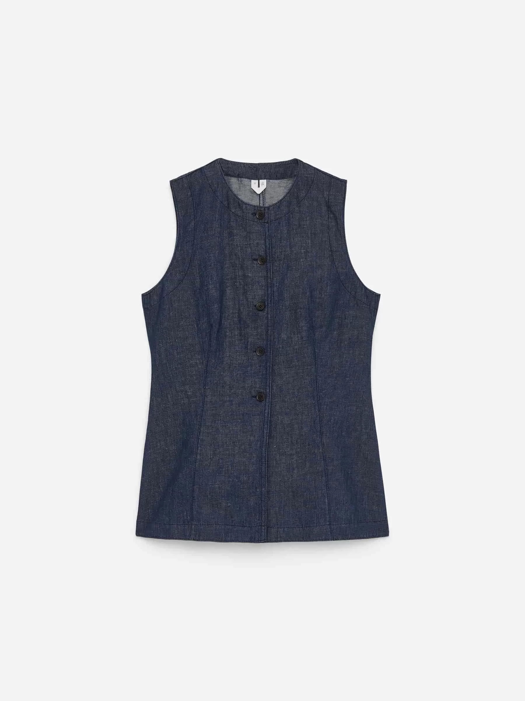 ARKE Damen Taillierte Jeansweste Dunkelblau