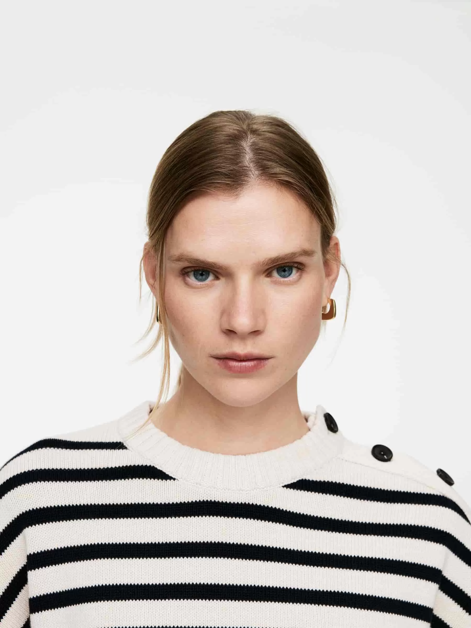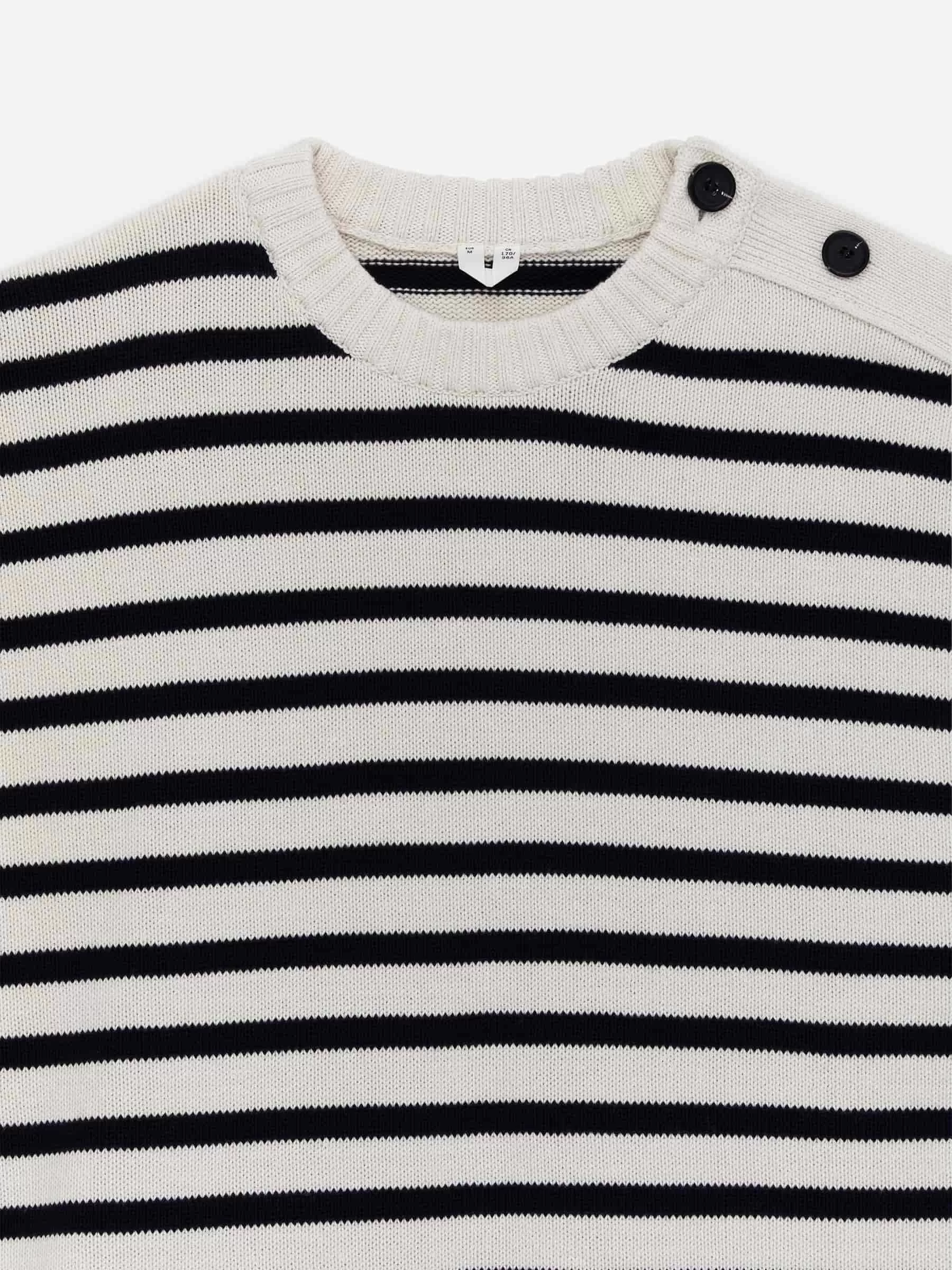 Dieser Pullover aus weicher Baumwolle hat eine entspannte Passform und ist mit Knöpfen seitlich am Hals versehen. Gerippte Abschlüsse.
