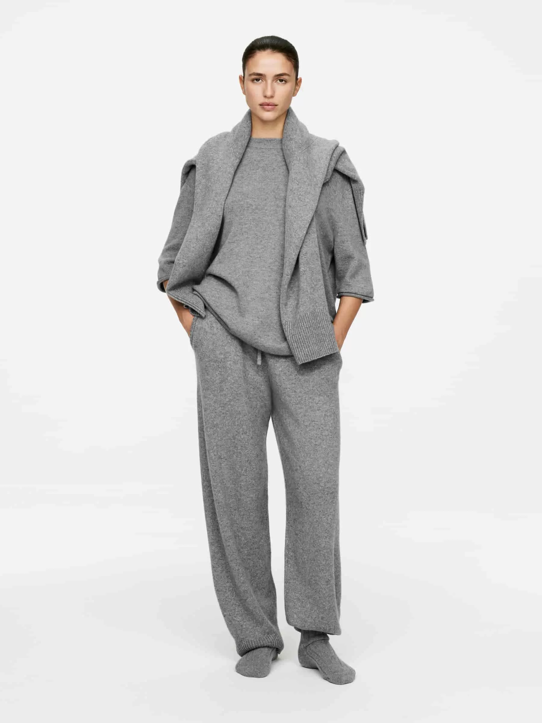 ARKE Damen Übergroßes Kaschmir-T-Shirt Graue Melange